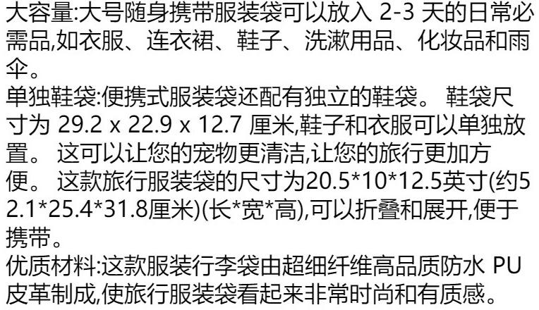 Amazon en stock Bolsa de Traje Plegable de Gran Capacidad Bolsa Duffel de Cuero PU Grande de un Solo Hombro Bolsa de Viaje Portátil
