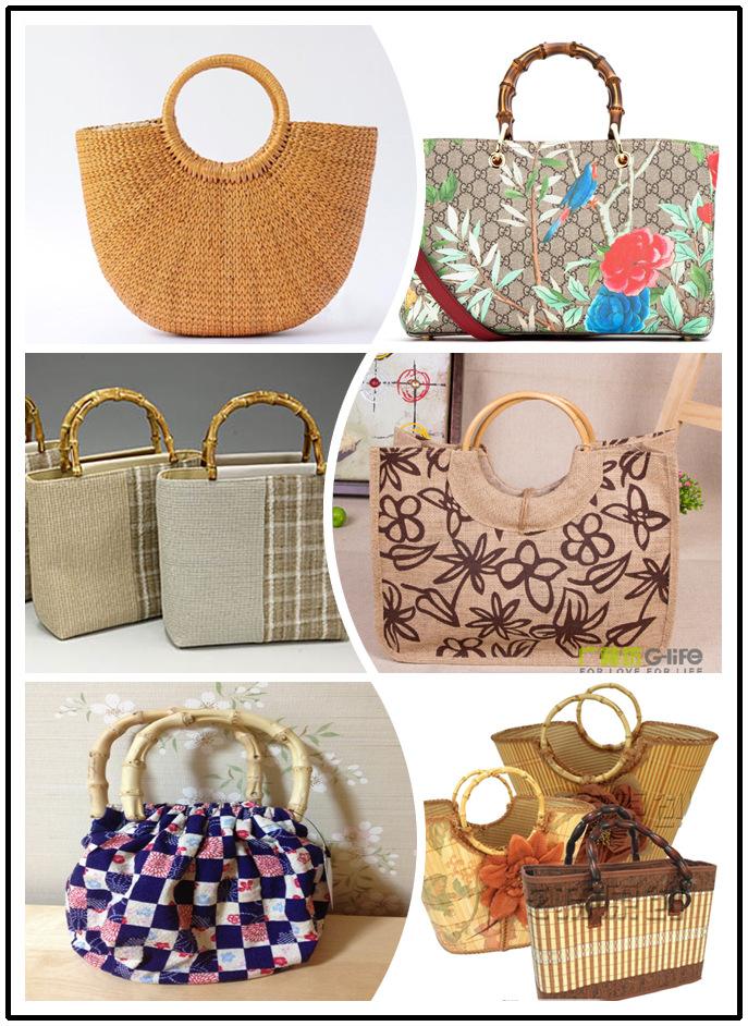 Asa de bolso asa de bambú redonda ovalada en forma de D