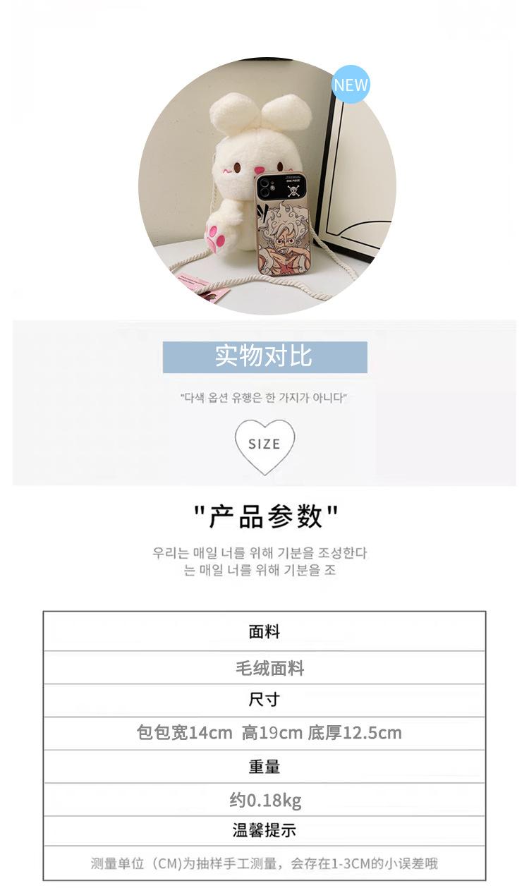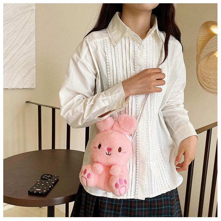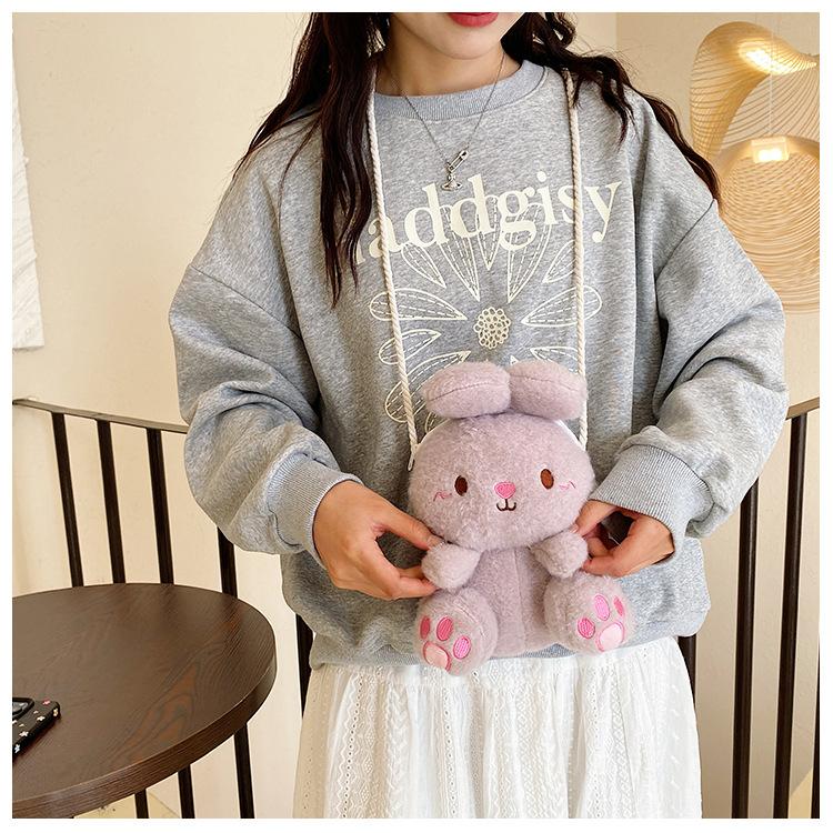 Nuevo Lindo Bolso Cruzado de Peluche de Conejo para Niña Muñeca Fea Linda Bolso de Hombro Infantil Muñeco de Dibujos Animados Bolso 20