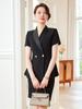 Traje Azul de Moda Profesional para Mujer de Manga Corta Temperamento Ropa de Trabajo para Joyería Ropa de Trabajo para Recepción de Hotel Vestido de Recepción
