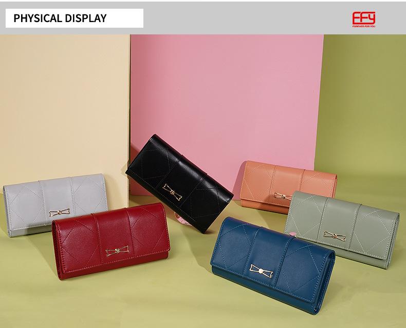 Cartera de mujer transfronteriza de alta gama, larga, triple, tarjetero multifunción, bolso de mano de PU creativo y moderno.
