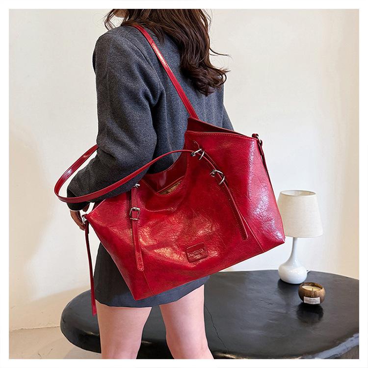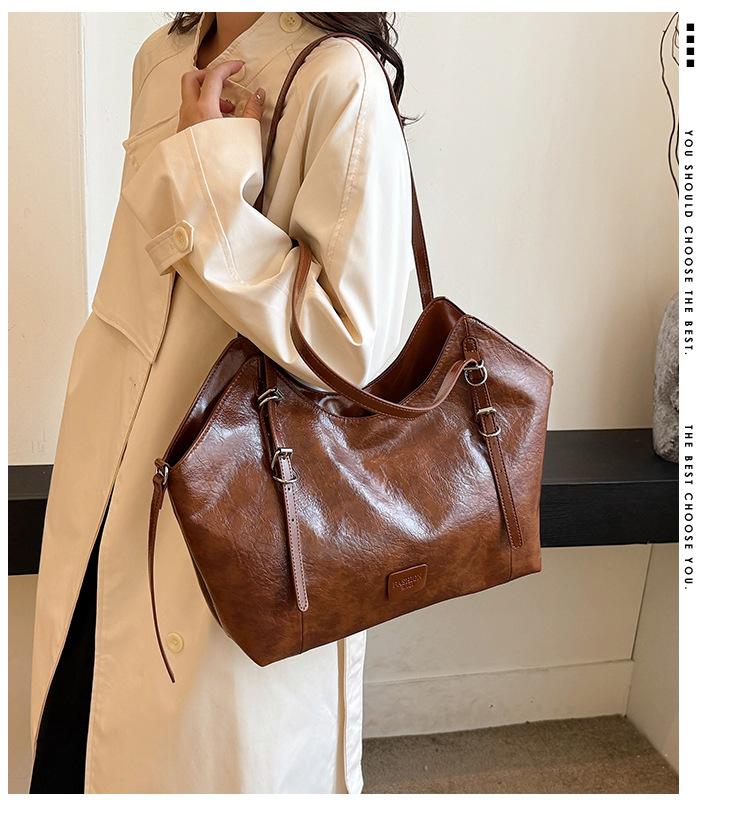 Bolso de Mano/Hombro/Axila de Gran Capacidad Estilo Coreano Simple Casual Color Sólido Retro Otoño e Invierno Nuevo Estilo Occidental Moda en 2024