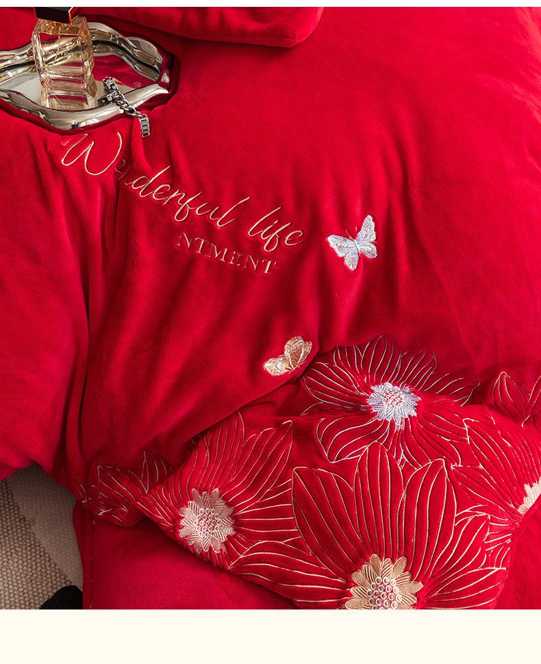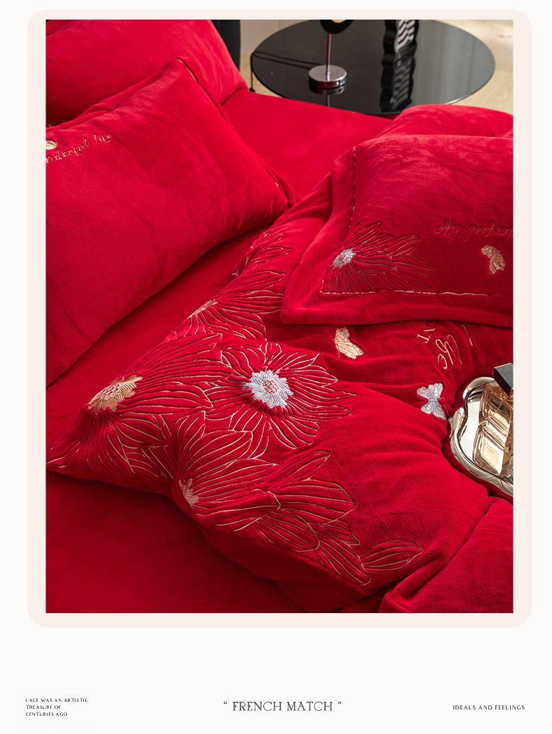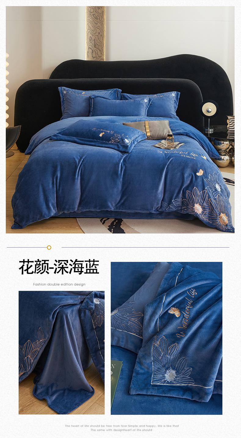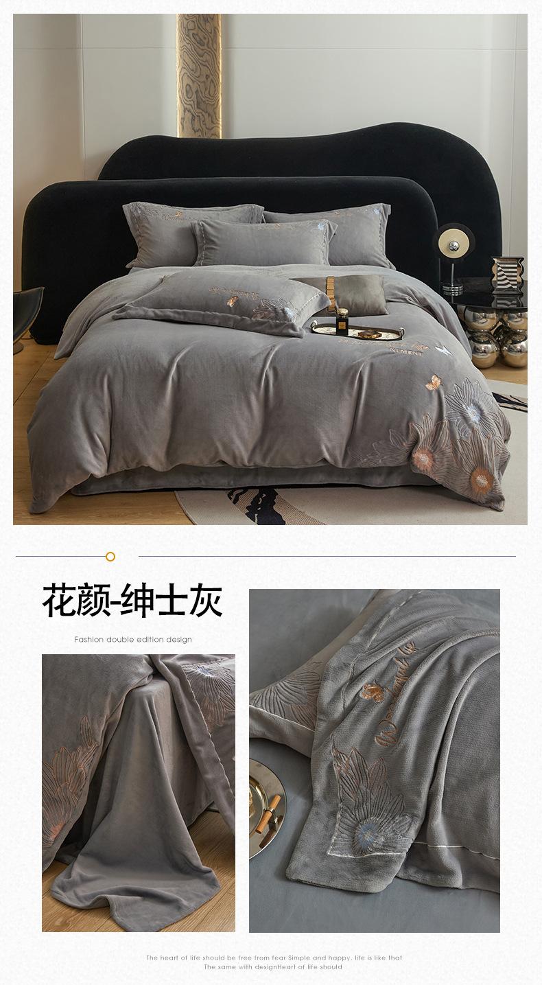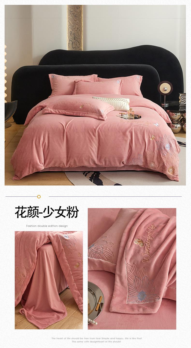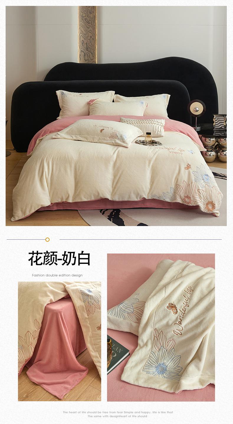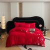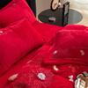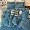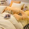 Invierno Cálido Terciopelo de leche cama de cuatro piezas doble cara engrosado funda de edredón de vellón coral funda de edredón de franela sábana sábana bajera