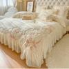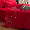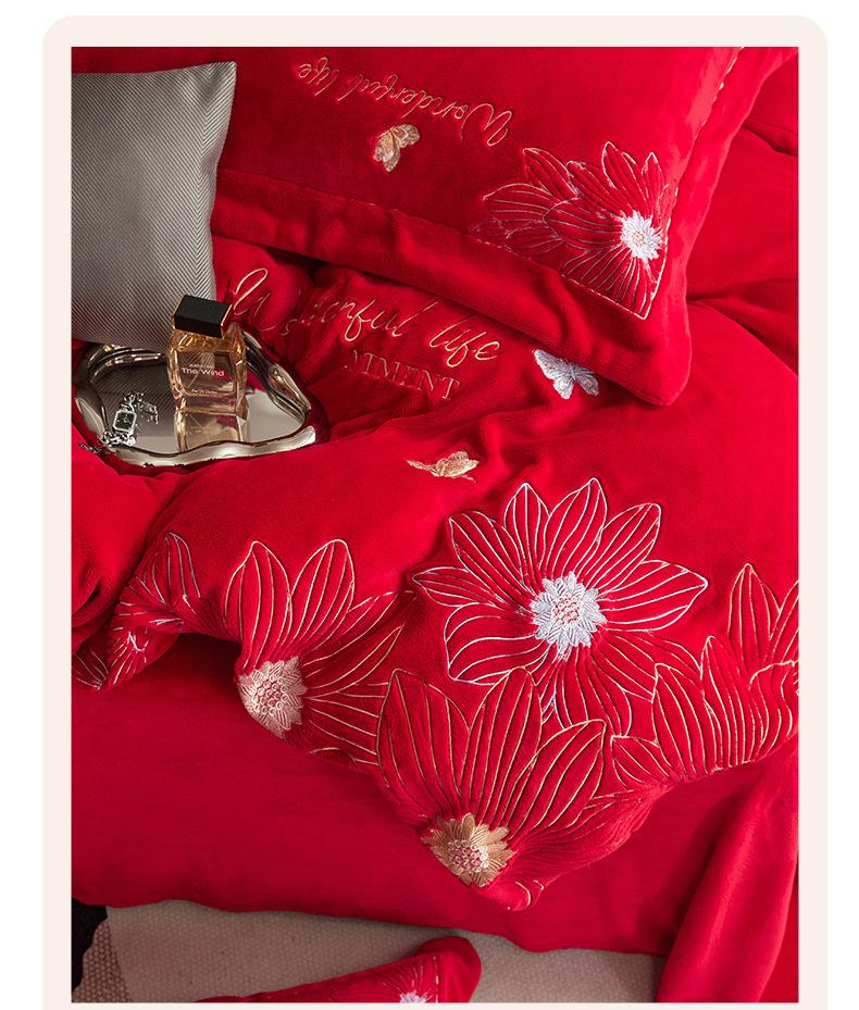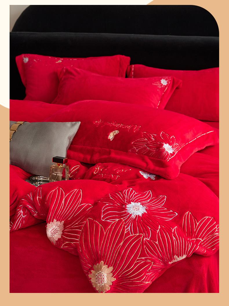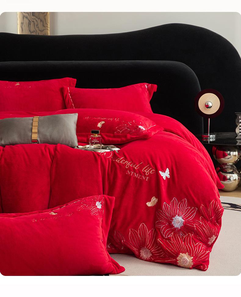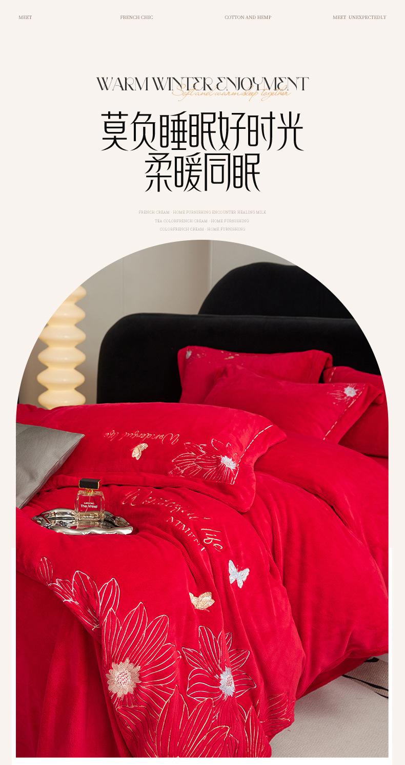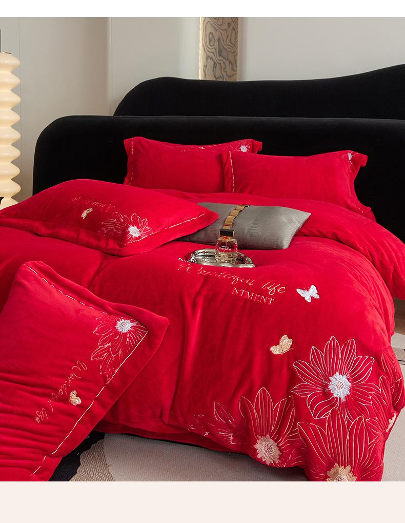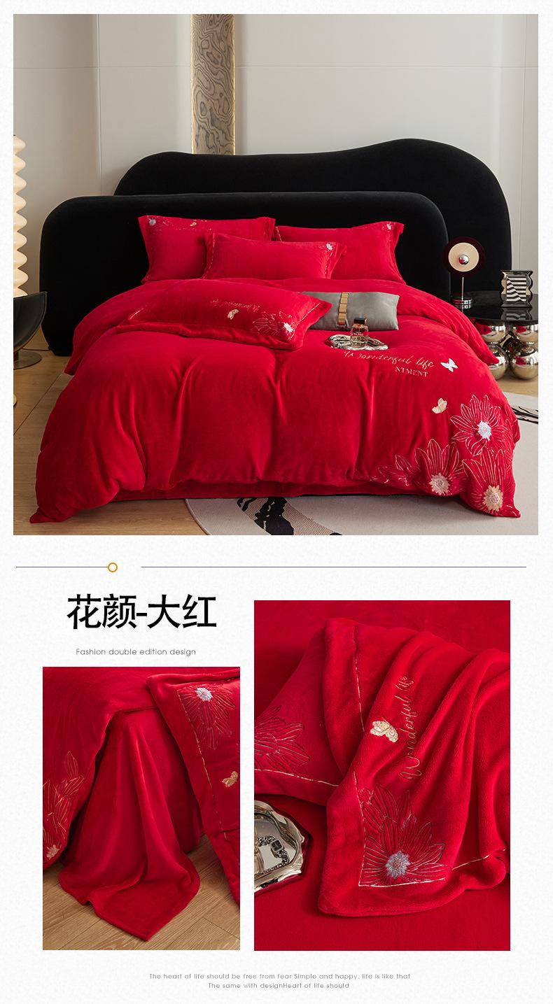 Invierno Cálido Terciopelo de leche cama de cuatro piezas doble cara engrosado funda de edredón de vellón coral funda de edredón de franela sábana sábana bajera