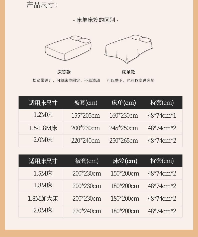 1.5m bed sheet four-piece set, 1.8m bed sheet four-piece set, 2.0m bed sheet four-piece set