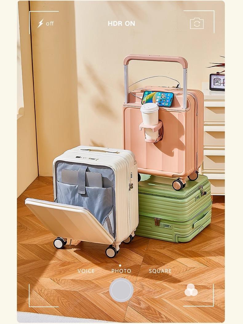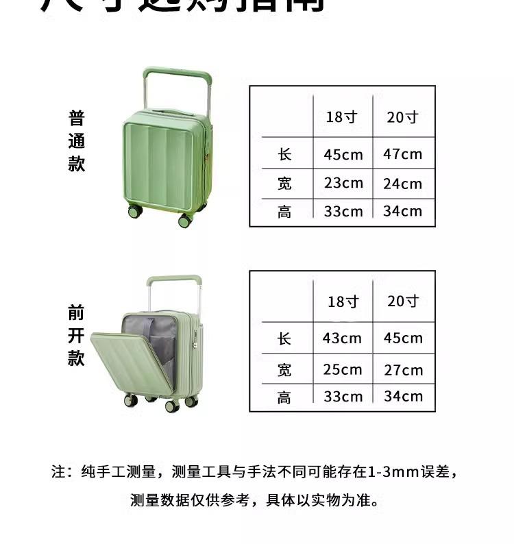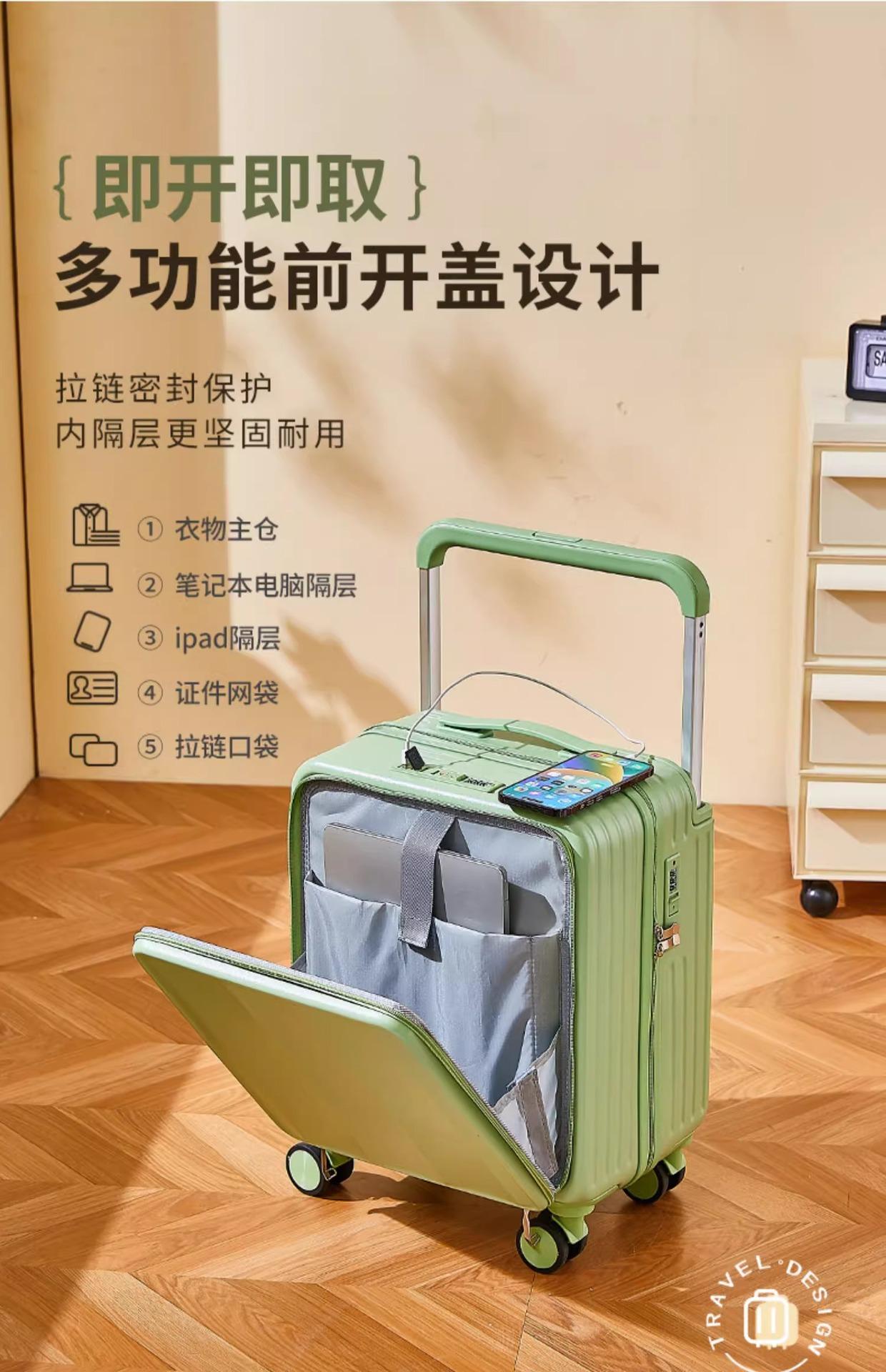 Maleta de embarque de 18 pulgadas con apertura frontal para hombres y mujeres, maleta con ruedas, mini maleta de color con contraseña pequeña y multifuncional