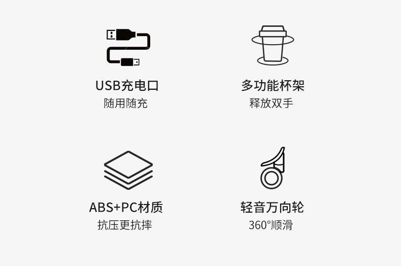 USB interface, ultra-light, Cup holder, Phone holder, Anti-theft