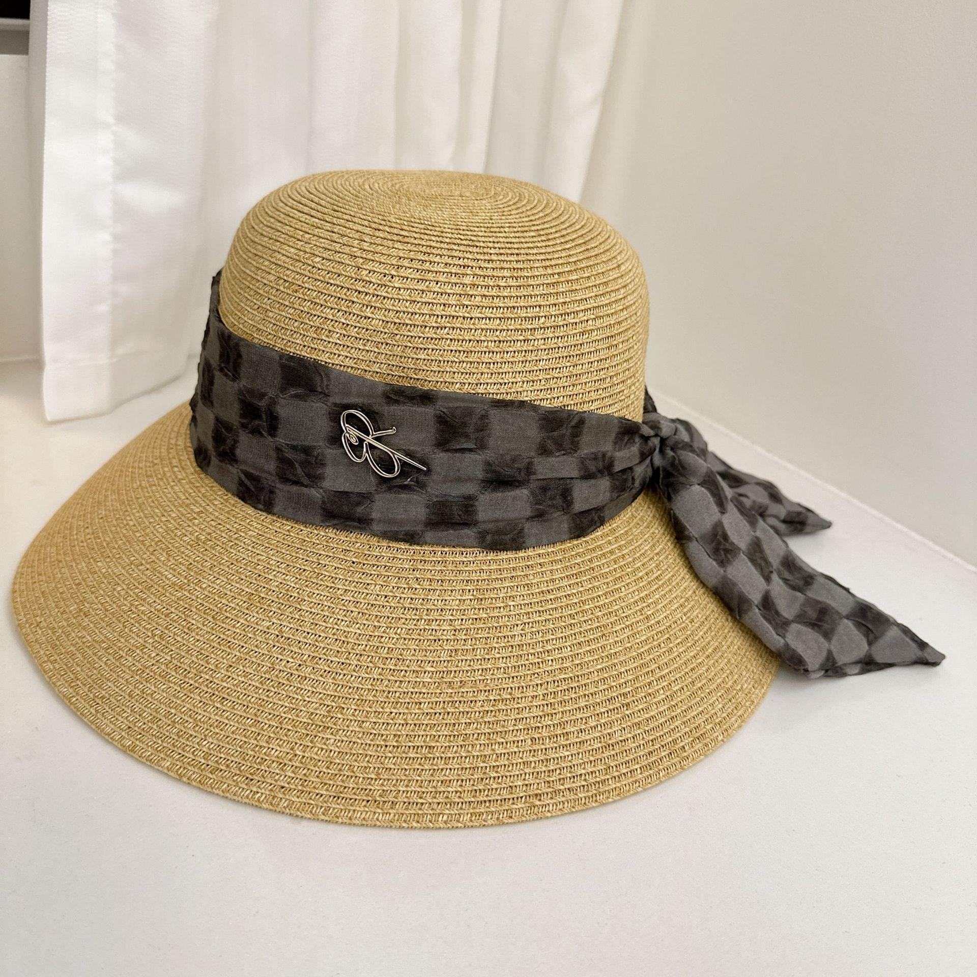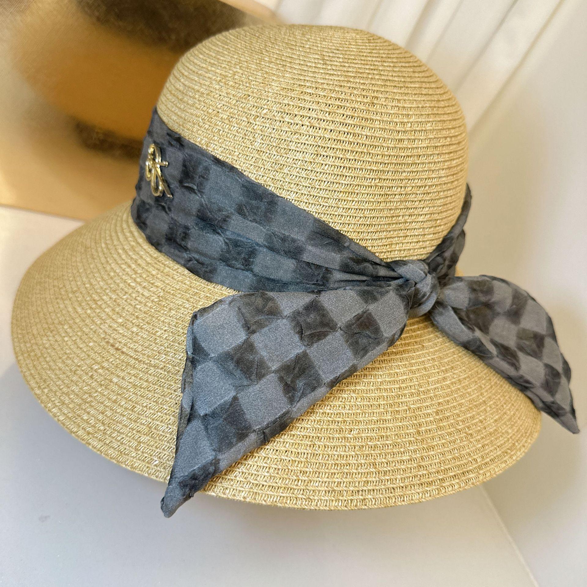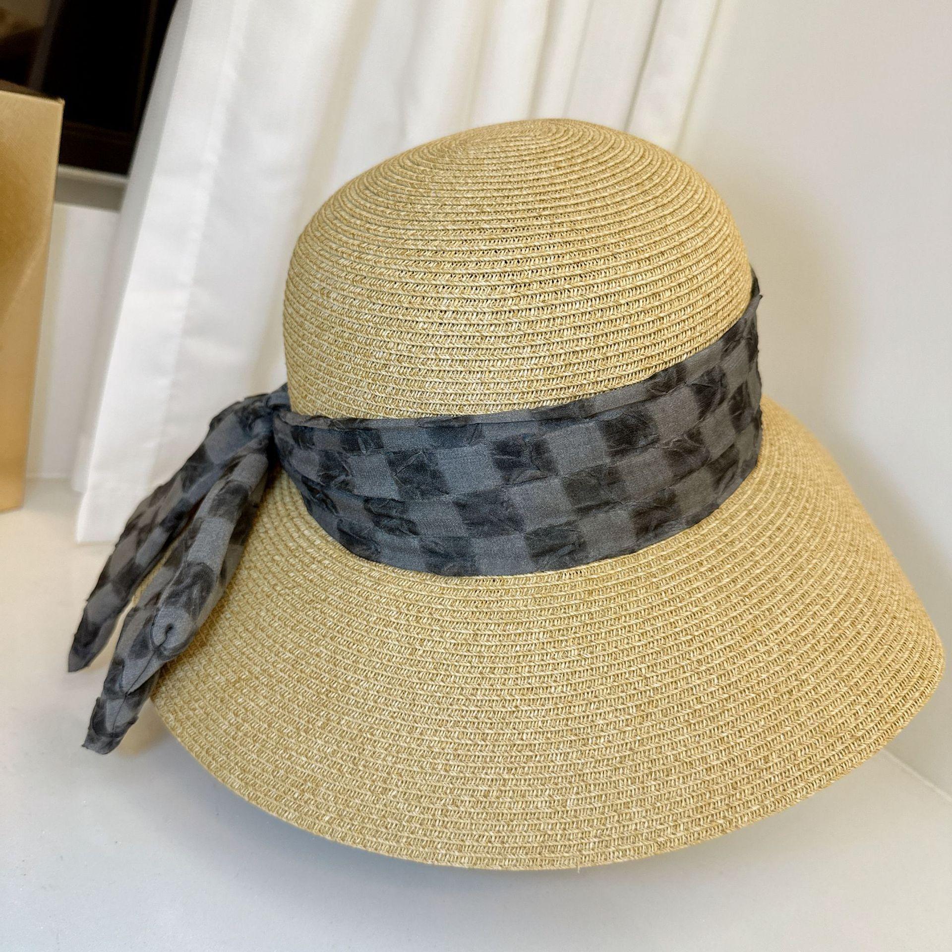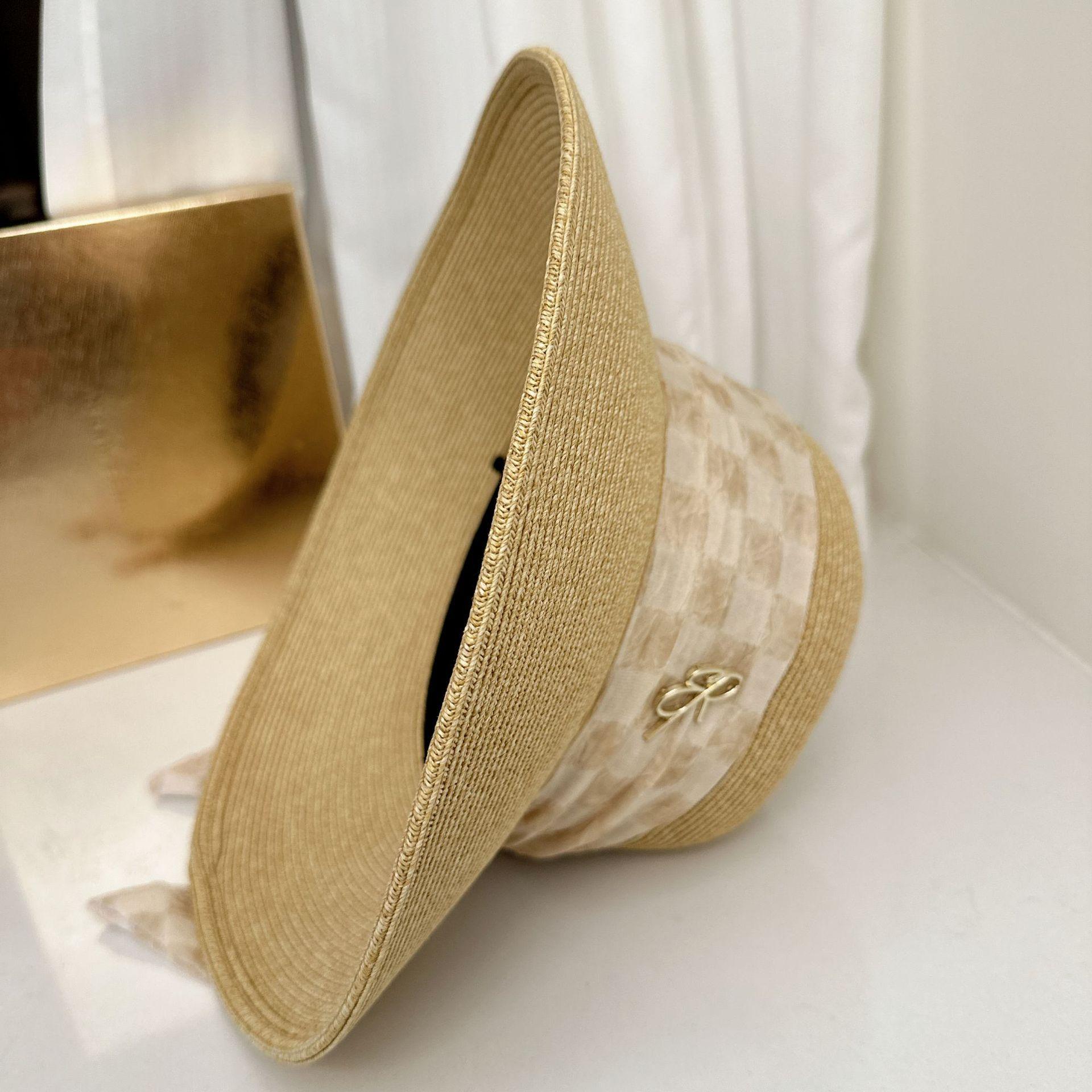 Sombrero de Paja con Cinta de Cuadros de Lazo Sombrero de Mujer Adulto Sombrero de Pescador Sombrero de Cuenca Parasol Protección Solar Sombrero de Playa Verano