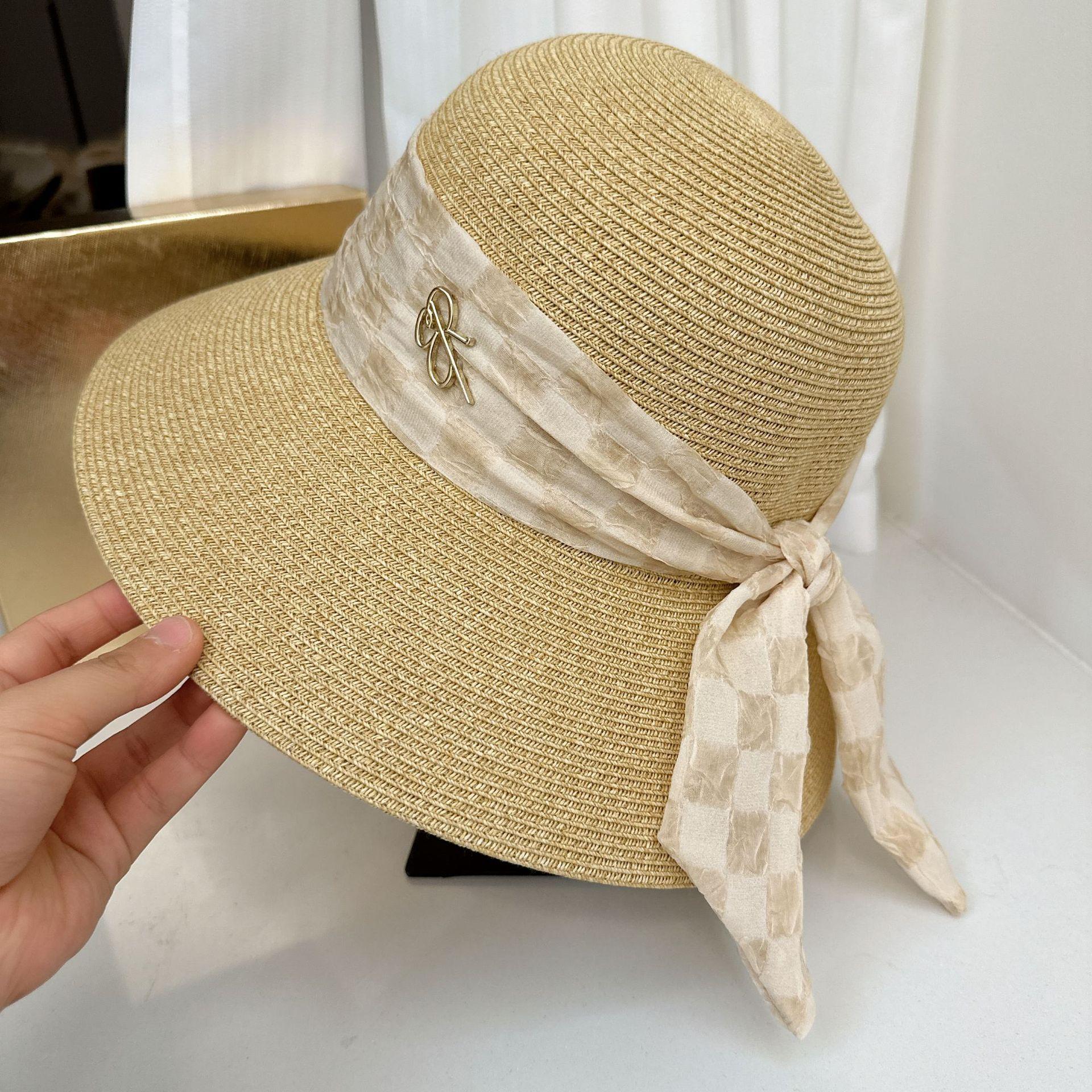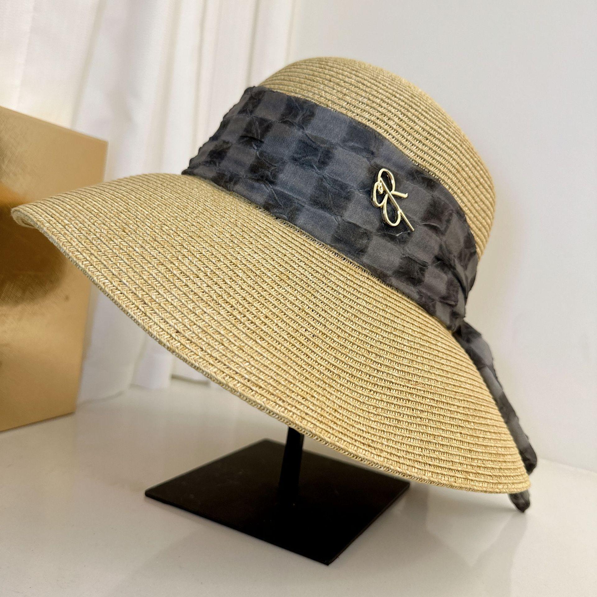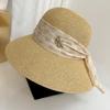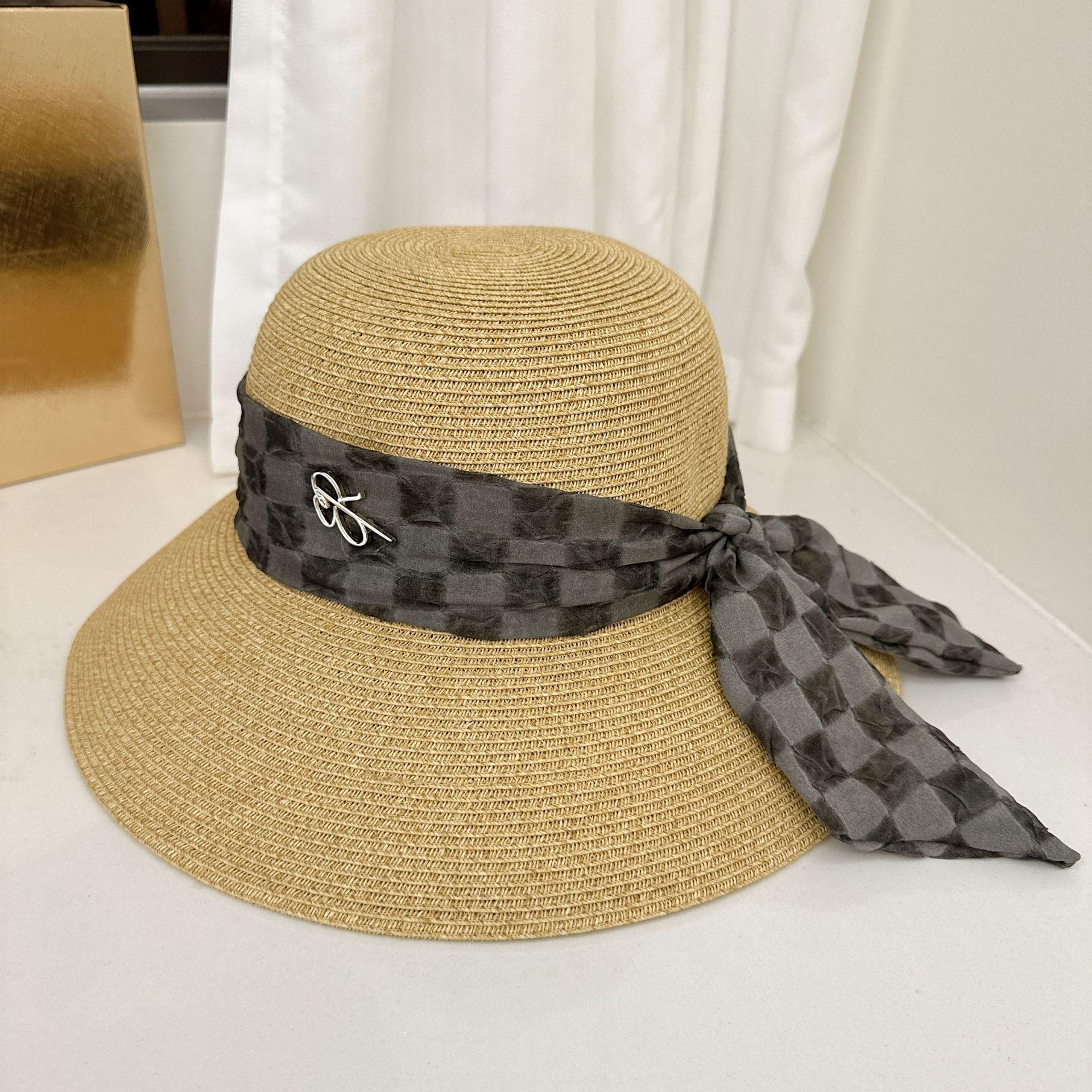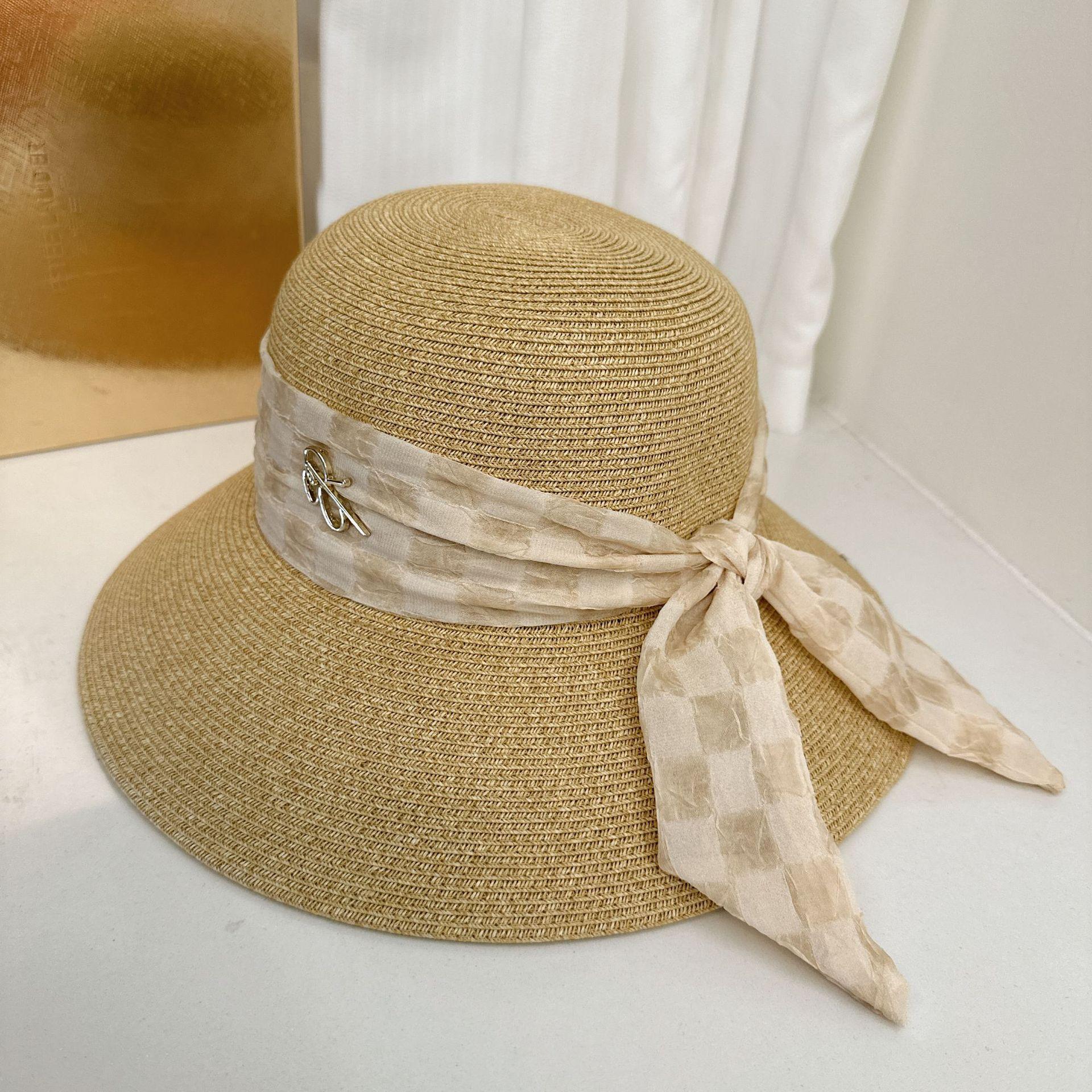 Sombrero de Paja con Cinta de Cuadros de Lazo Sombrero de Mujer Adulto Sombrero de Pescador Sombrero de Cuenca Parasol Protección Solar Sombrero de Playa Verano