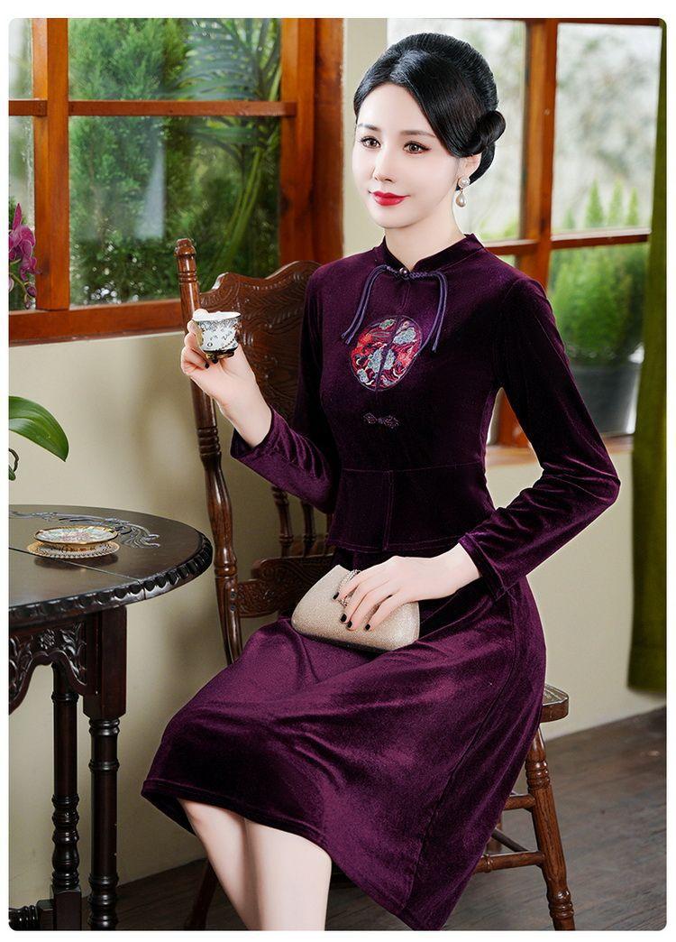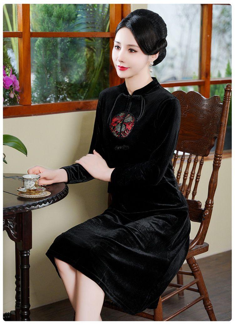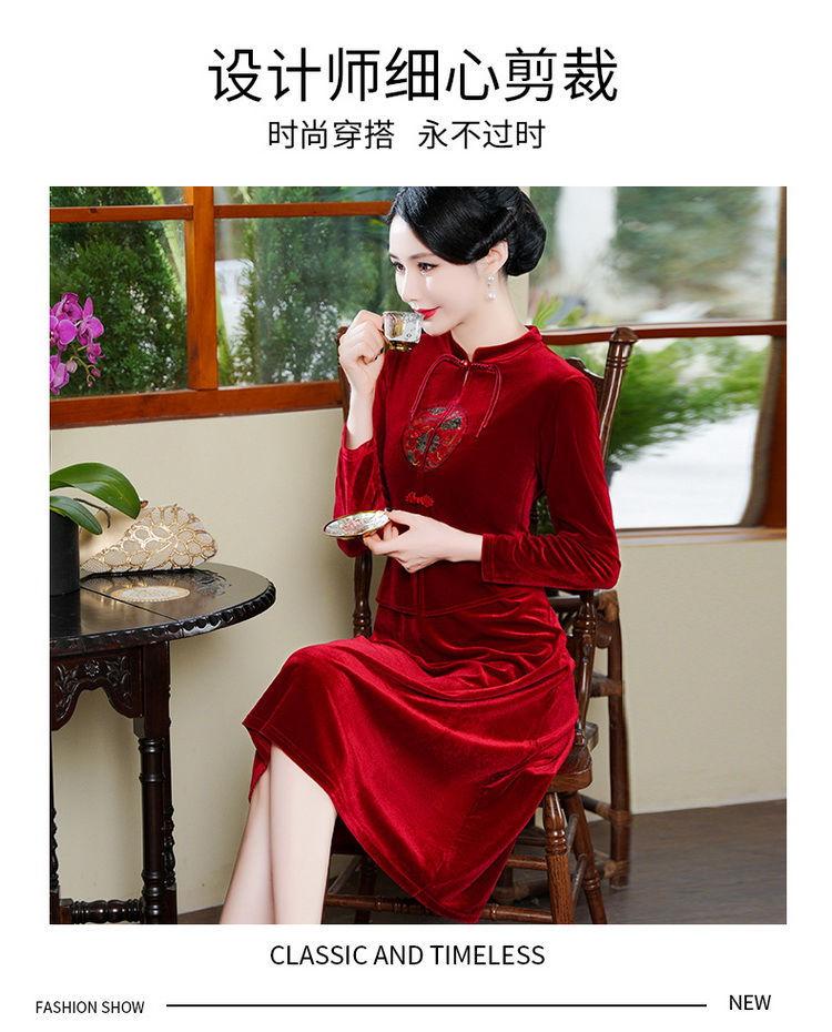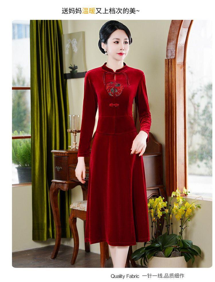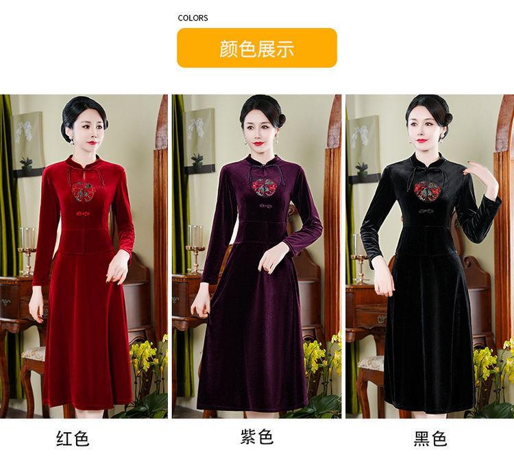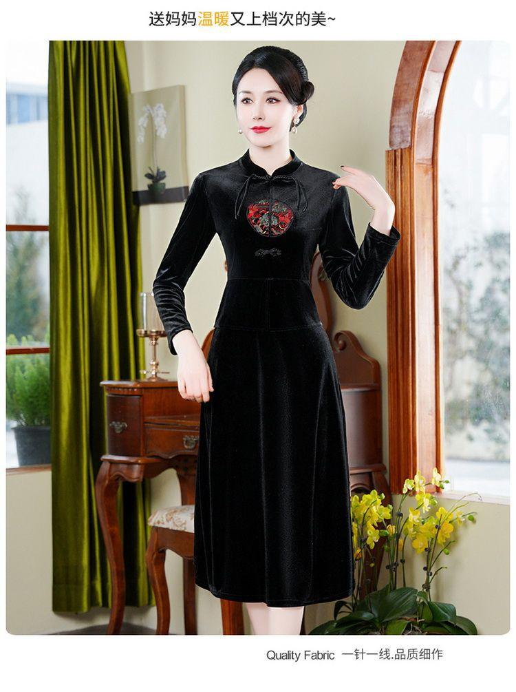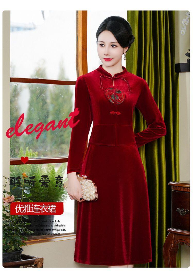 Nuevo cheongsam mejorado de estilo chino Vestido de primavera y otoño Nuevo retro moda nacional mamá Ropa adelgazante vestido femenino Chenilla Terciopelo