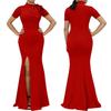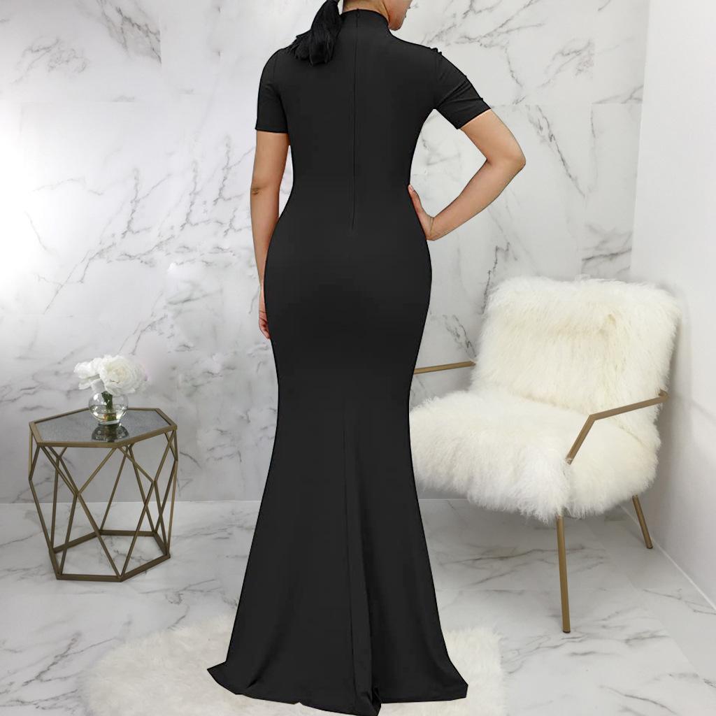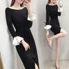 Vestido de verano 2022, estilo profesional, con cuello blanco, falda a la cadera, corte entallado, talla grande, color caramelo