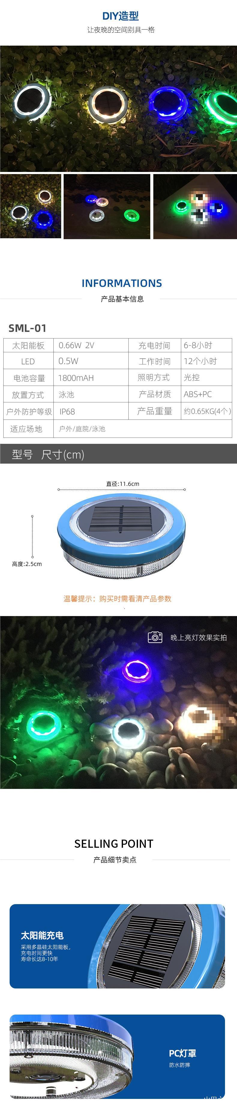 8led warm light swimming pool lamp 1 pack -1W, 8led white swimming pool lamp 1 pack -1W, 8led blue swimming po...