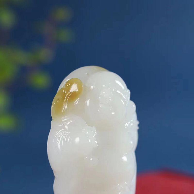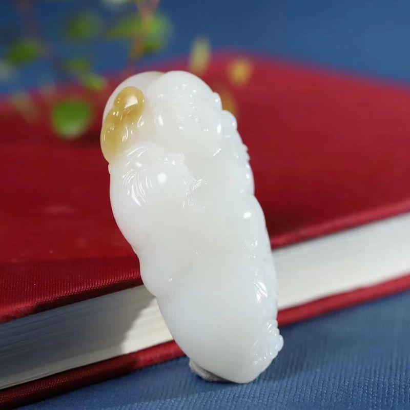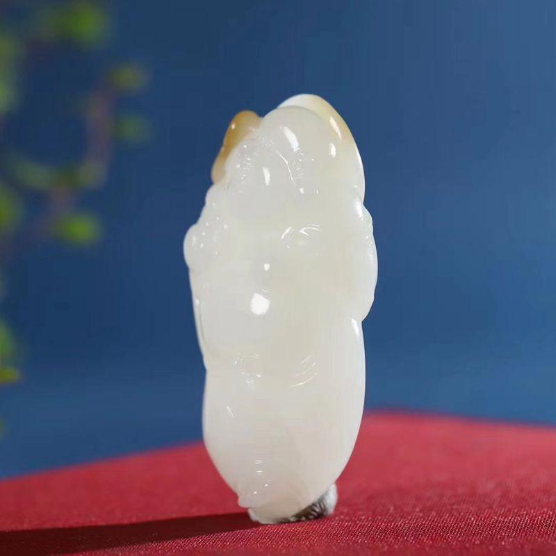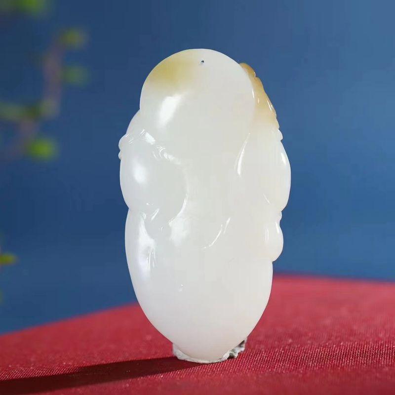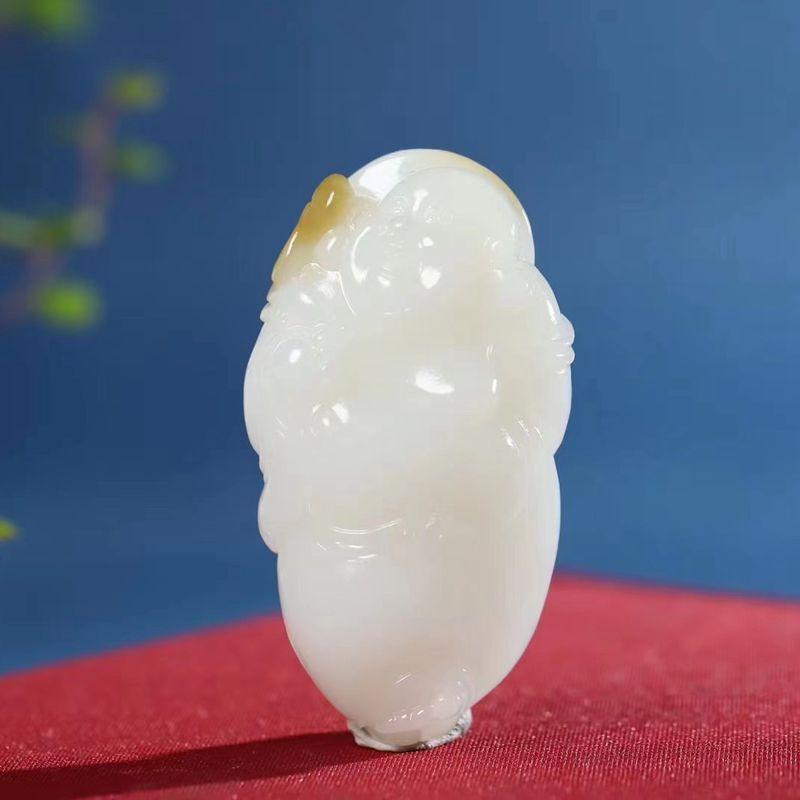 Jade Jade de Hetian de Xinjiang Natural Cadena de Suministro Material Ruso Grado Grasa de Cordero Jade Blanco Colgante de Jade Artesanías de Buda Sonriente Maitreya