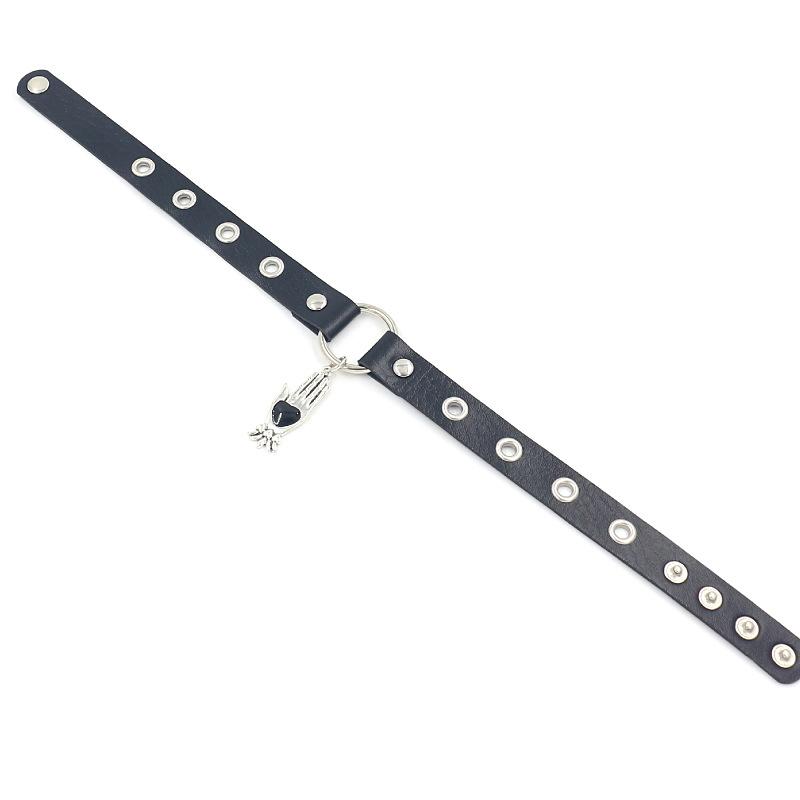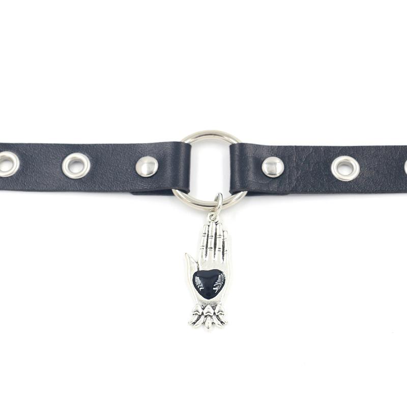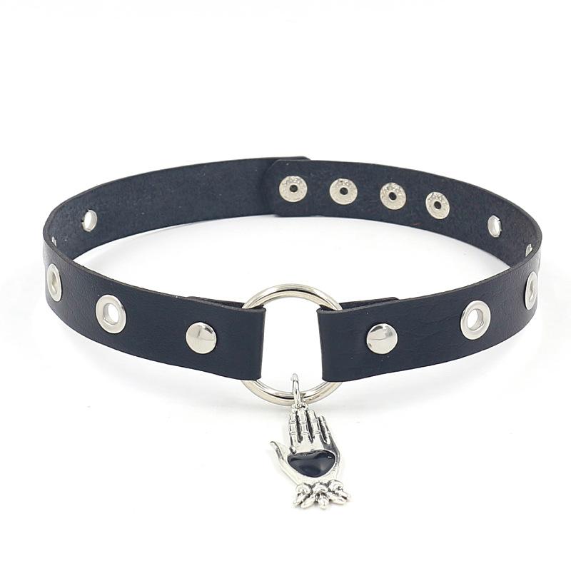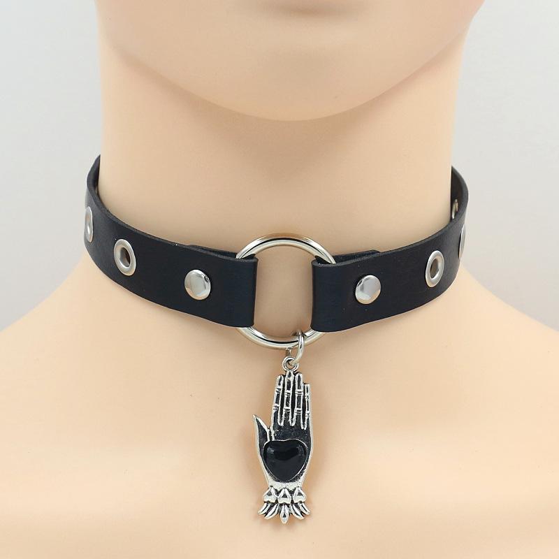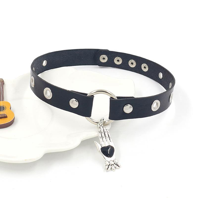 Las imágenes han sido protegidas por derechos de autor. Nadie puede robarlas. Si las encontramos, presentaremos una denuncia. Hecho en fábrica, ¡bienvenido a personalizar con muestras o dibujos!Si necesita personalización, comuníquese directamente con el servicio de atención al cliente.           Nombre: Collar gargantilla con colgante de palma estilo punk de personalidad europea y americana Proceso: Remache Color: Negro Tamaño: Longitud de unos 40 cm, ancho de cuero 1,8 cm (4 tamaños ajustables) Colgante: 1.6*4CM Peso: alrededor de 21.5g/pieza Embalaje: Bolsa OPP individual, 12 piezas en una bolsa grande ------------------------------------------------------------------------------------------------------ Debido a los diferentes métodos de medición, habrá ligeras diferencias en tamaño y peso, lo que no es un problema de calidad del producto.