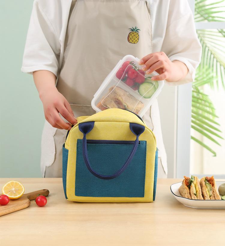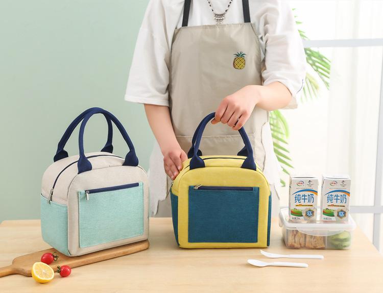 Bolsa de almuerzo japonesa, de lona de poliéster y algodón, con aislamiento térmico, hecha de papel de aluminio grueso, ideal para oficinistas y estudiantes.