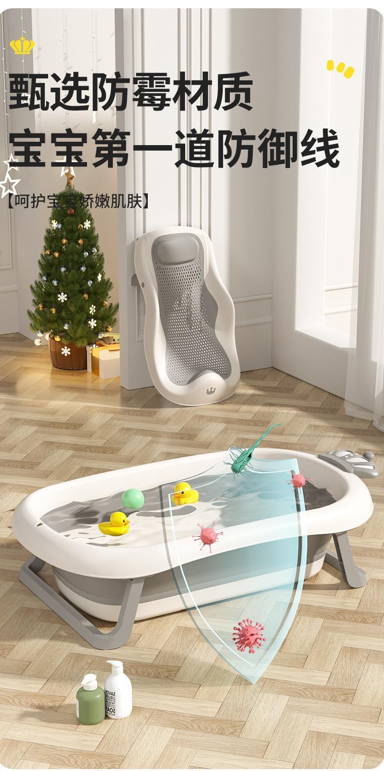Bañera para bebés de tres pliegues con sensor de temperatura inteligente, bañera para recién nacidos, bañera para bebés que pueden sentarse y acostarse en casa