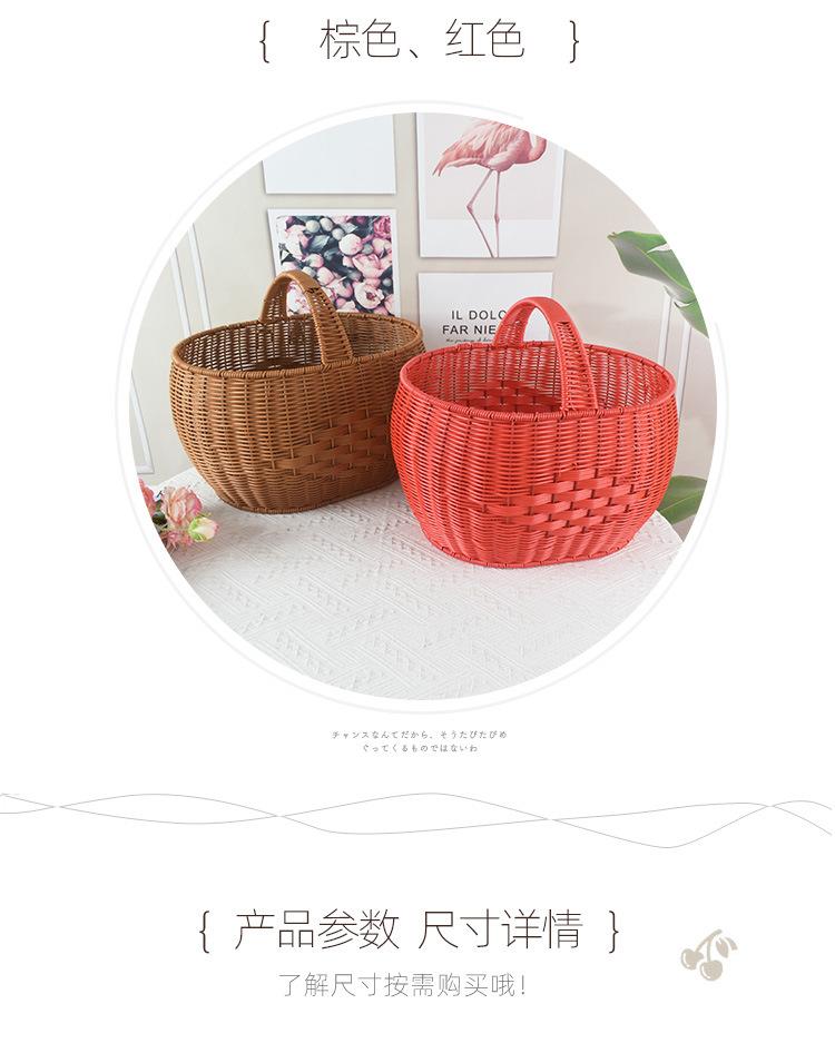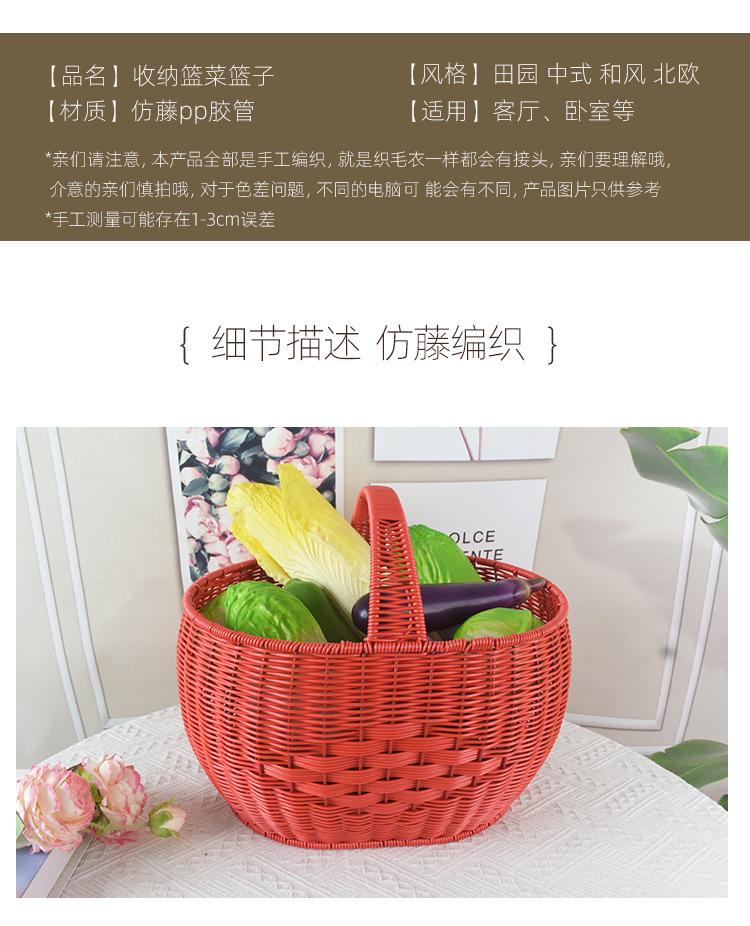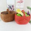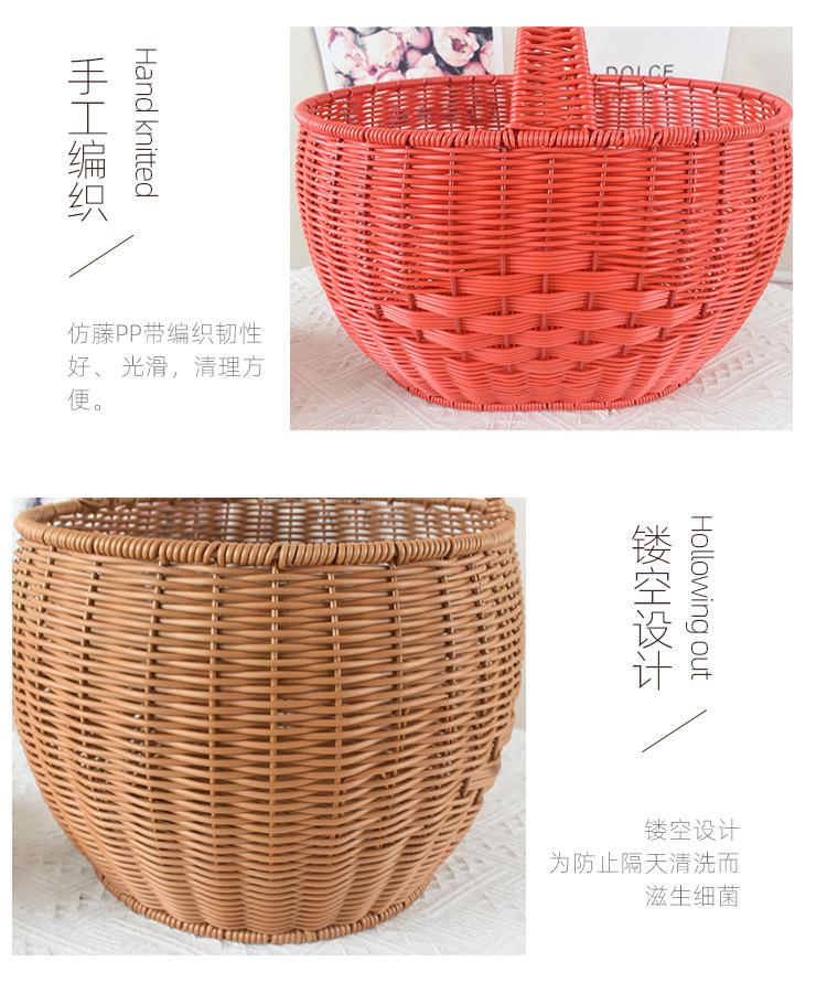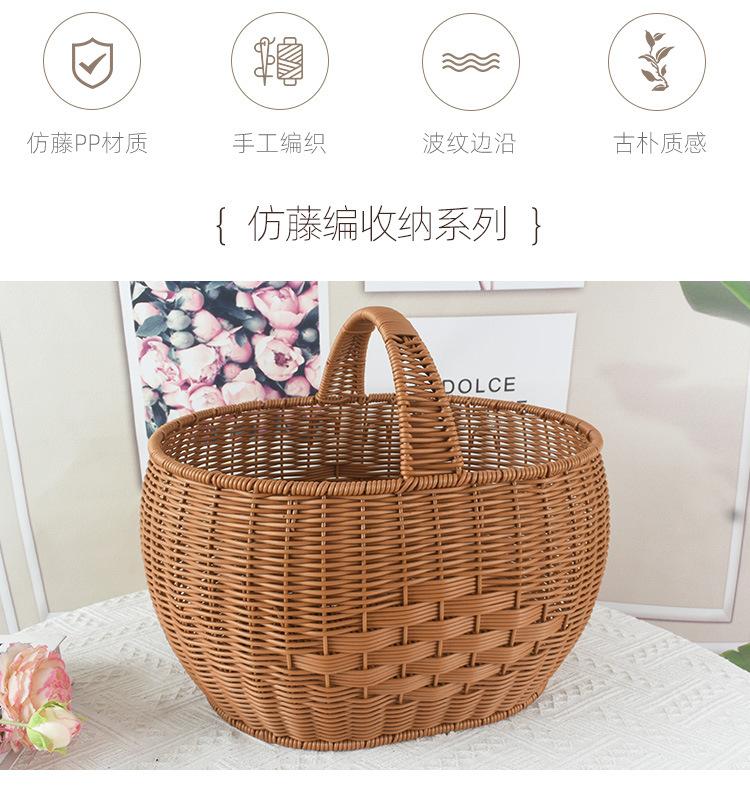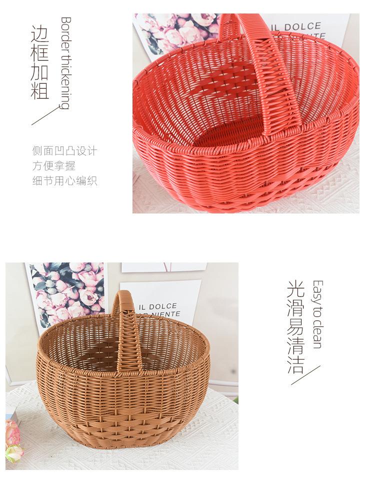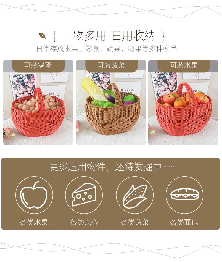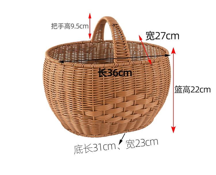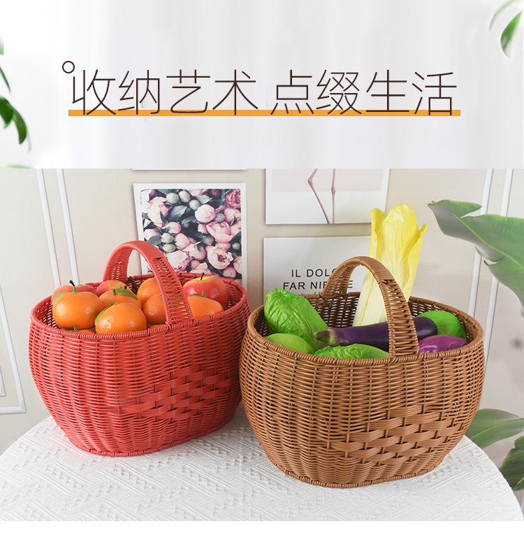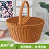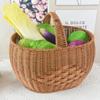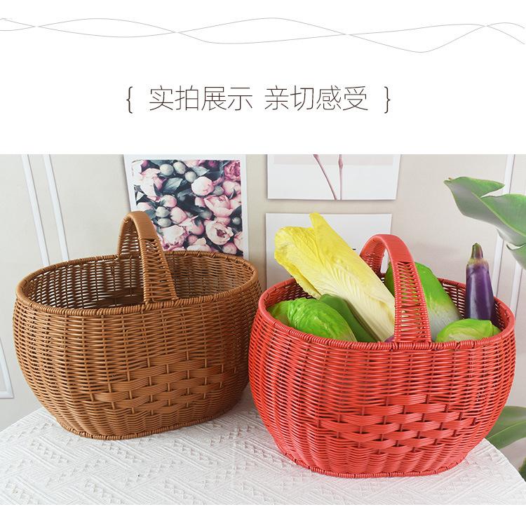 Cesta de frutas tejida a mano de imitación de ratán, cesta de almacenamiento portátil de ratán, cesta de picnic al aire libre, cesta de almacenamiento de huevos