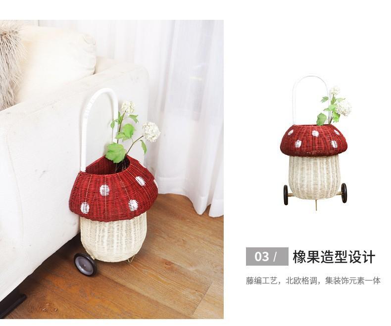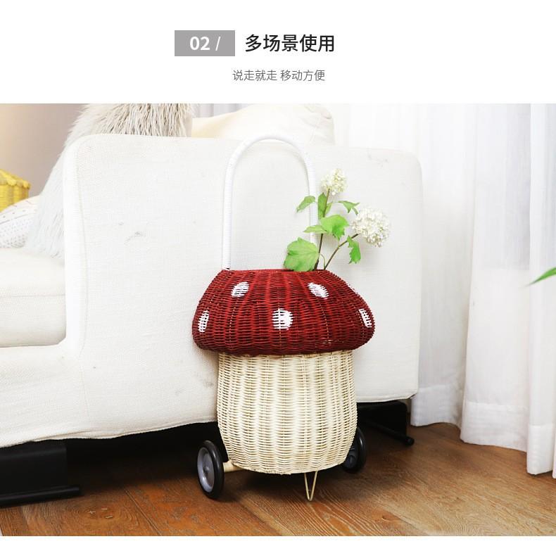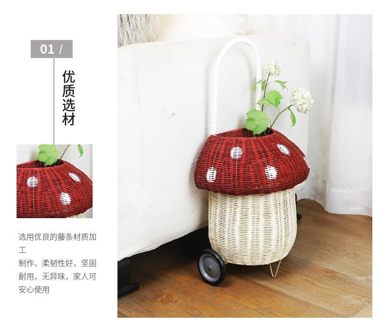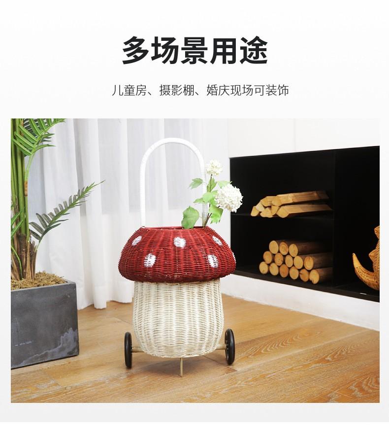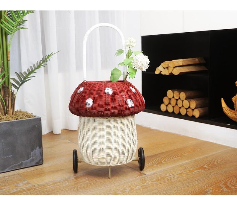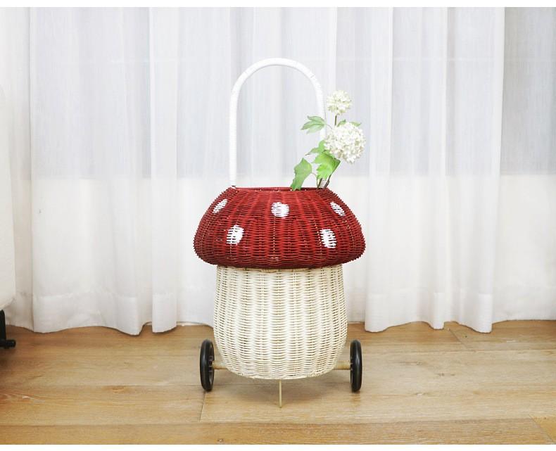 Carro de juguete para niños ratán natural juguete de peluche cesta de almacenamiento de champiñones casa de juegos para niños carrito de exterior