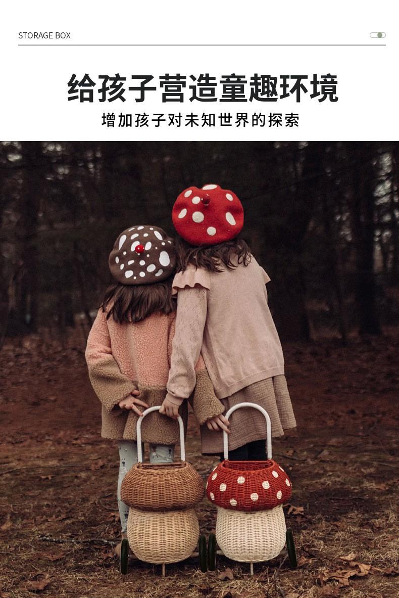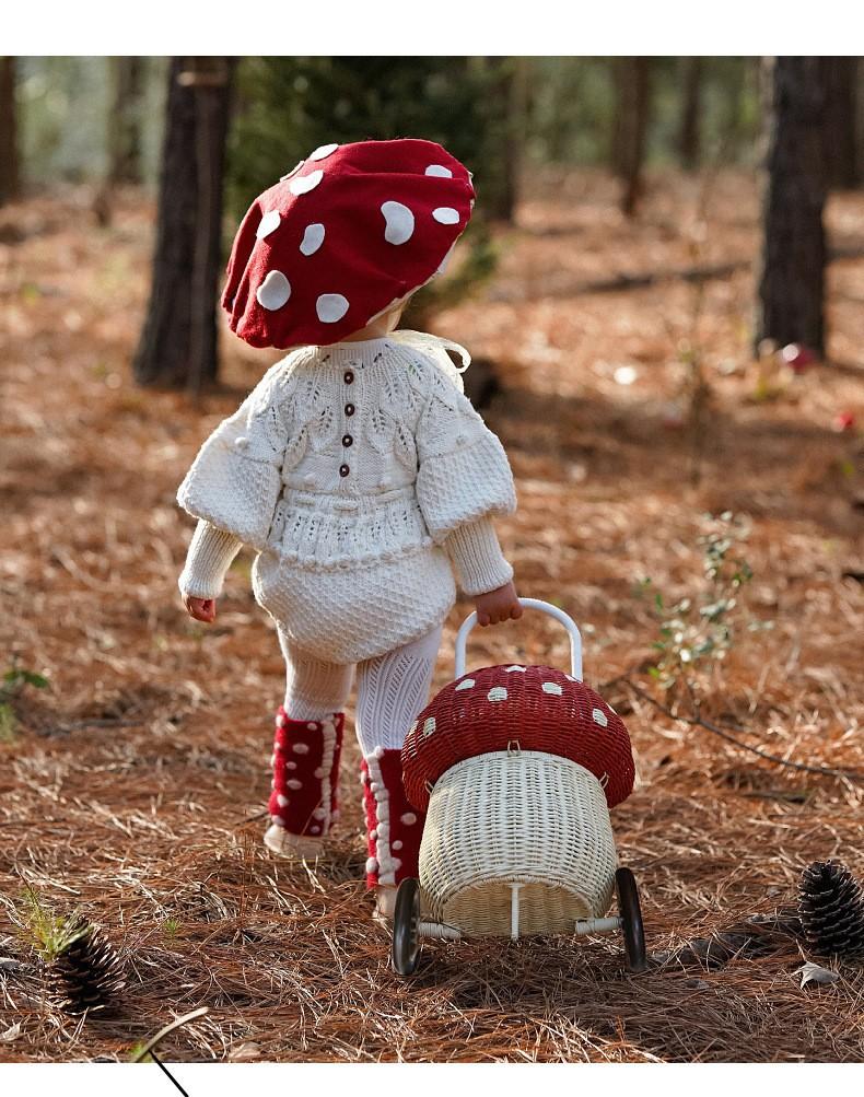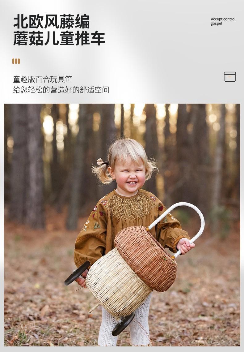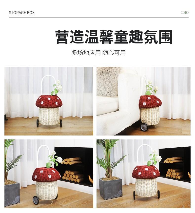 Carro de juguete para niños ratán natural juguete de peluche cesta de almacenamiento de champiñones casa de juegos para niños carrito de exterior