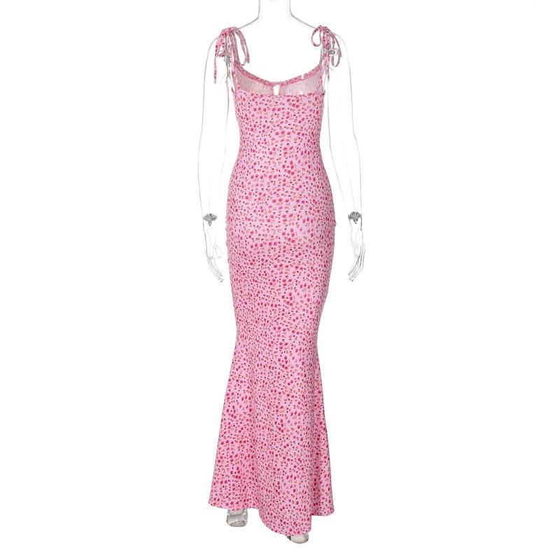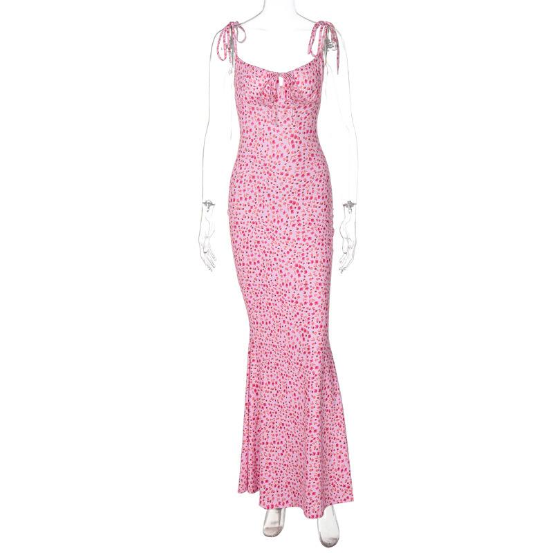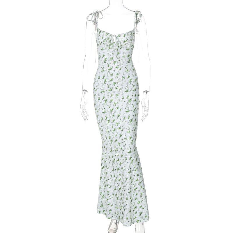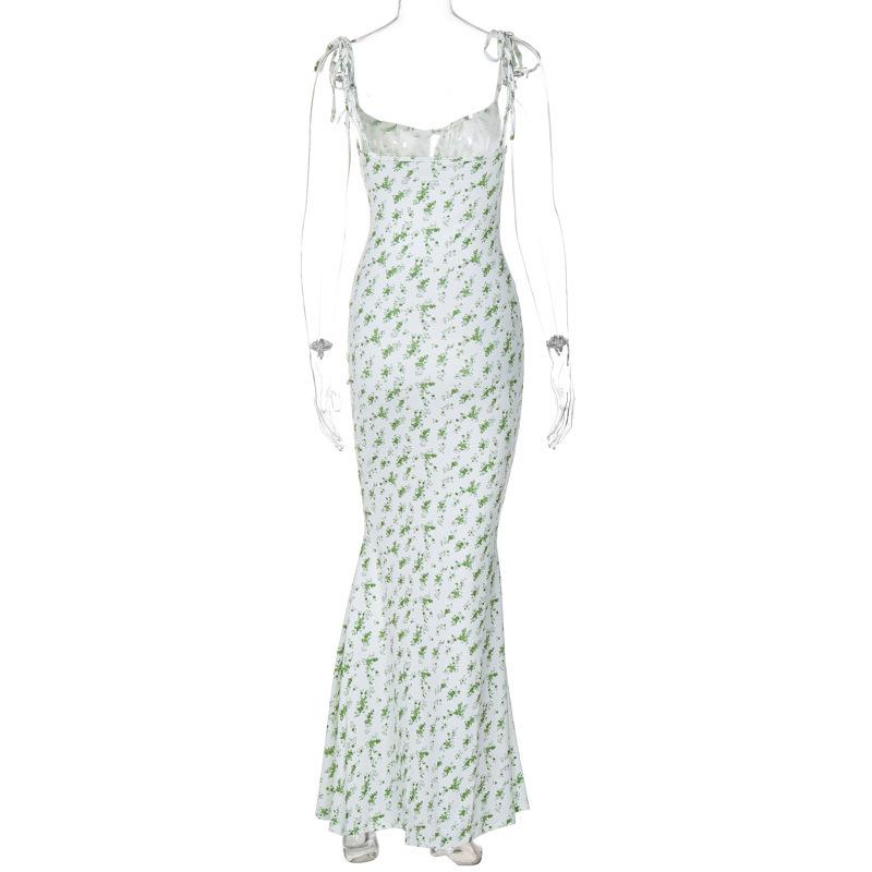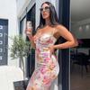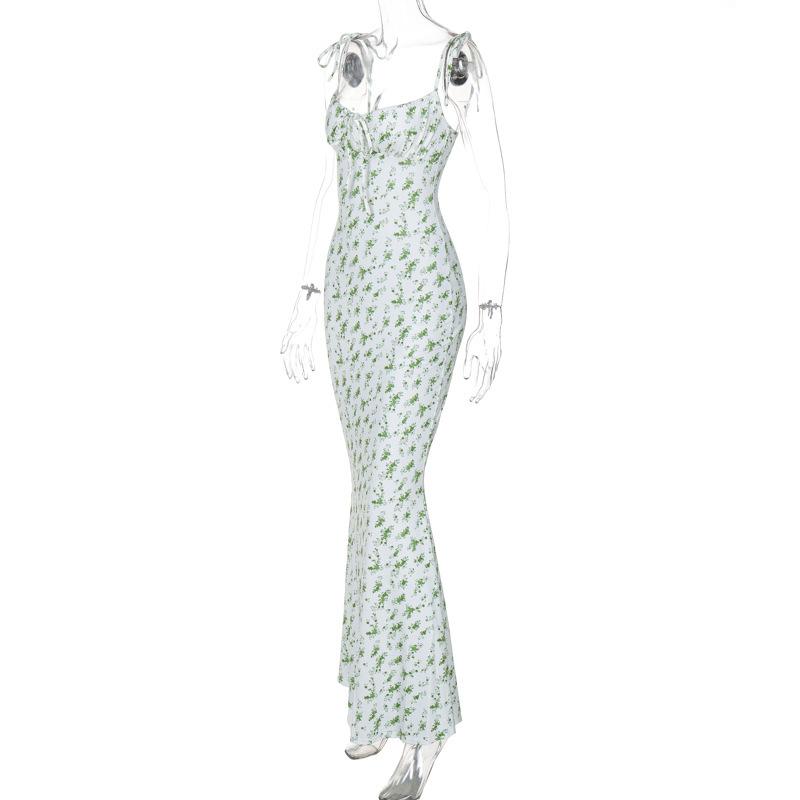 Vestido elegante con cuello en U, sin mangas y espalda descubierta, con estampado floral, estilo europeo y americano, para mujer, 2024