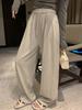 Pantalones casuales suaves de pierna larga para caminar tranquilamente en otoño, pantalones holgados de cintura alta con elásticos y rayas verticales.