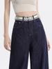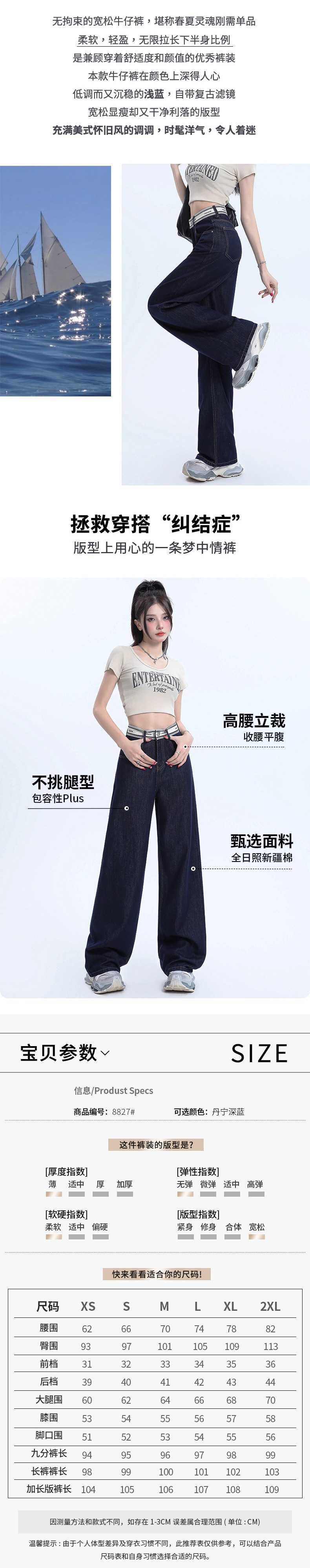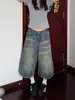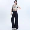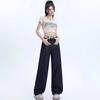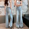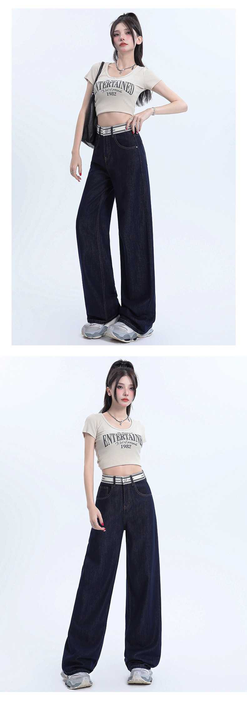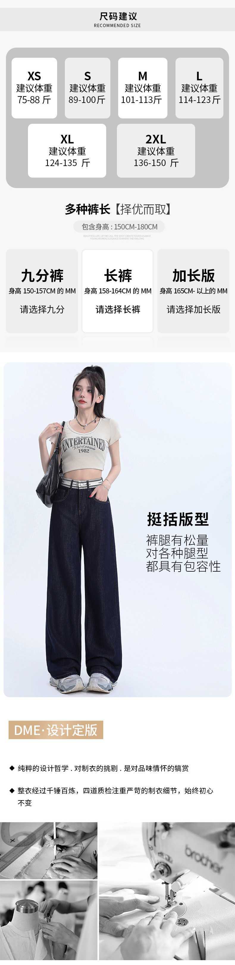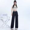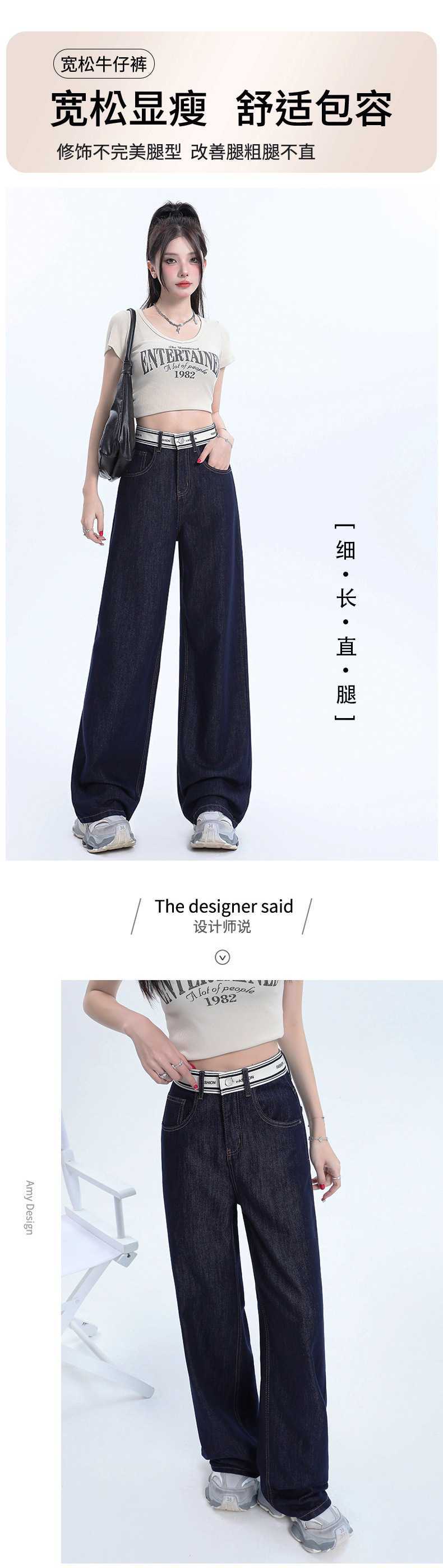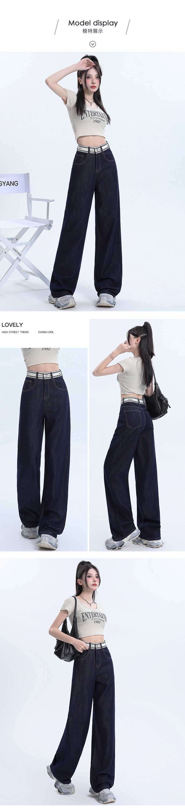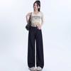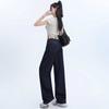 Pantalones vaqueros rectos de seda de hielo azul oscuro para mujer, de verano, con costuras finas, cintura con letras y pernera ancha.