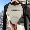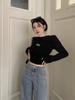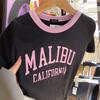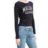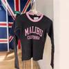 Camiseta de manga larga estilo americano vintage BM para mujer, camisa básica con estampado de letras MALIBU, corte ajustado y corto.