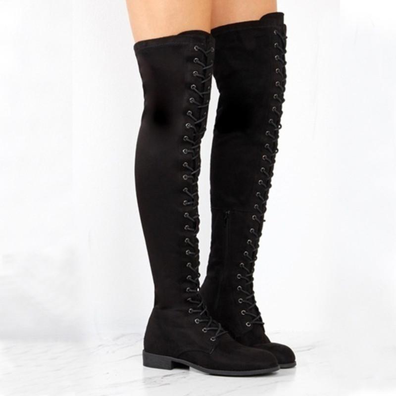 En nombre del comercio exterior de otoño e invierno de 2022, nuevas botas con correa cruzada hasta la rodilla de gran tamaño, deseo botas de cuero para mujer de Amazon