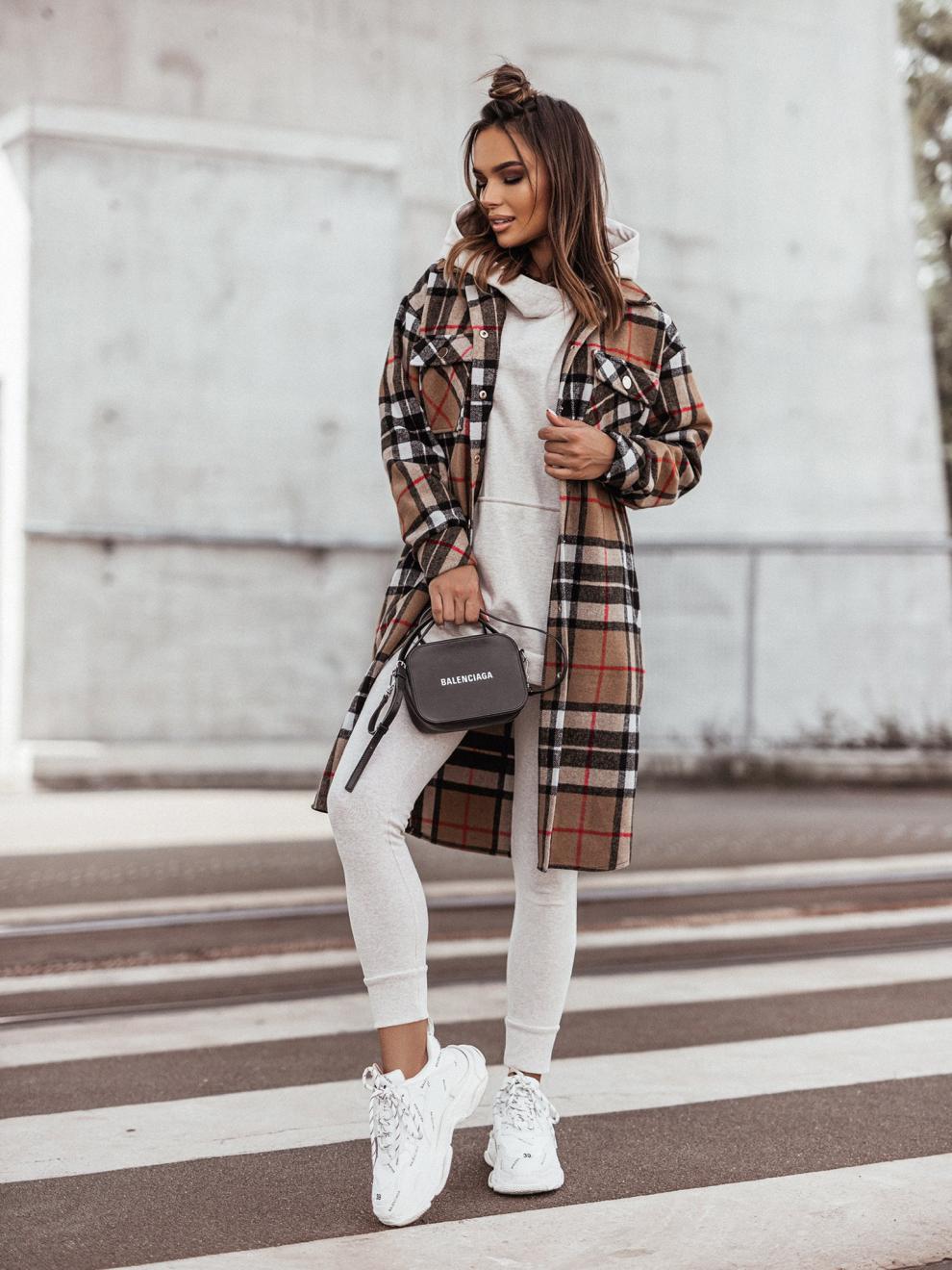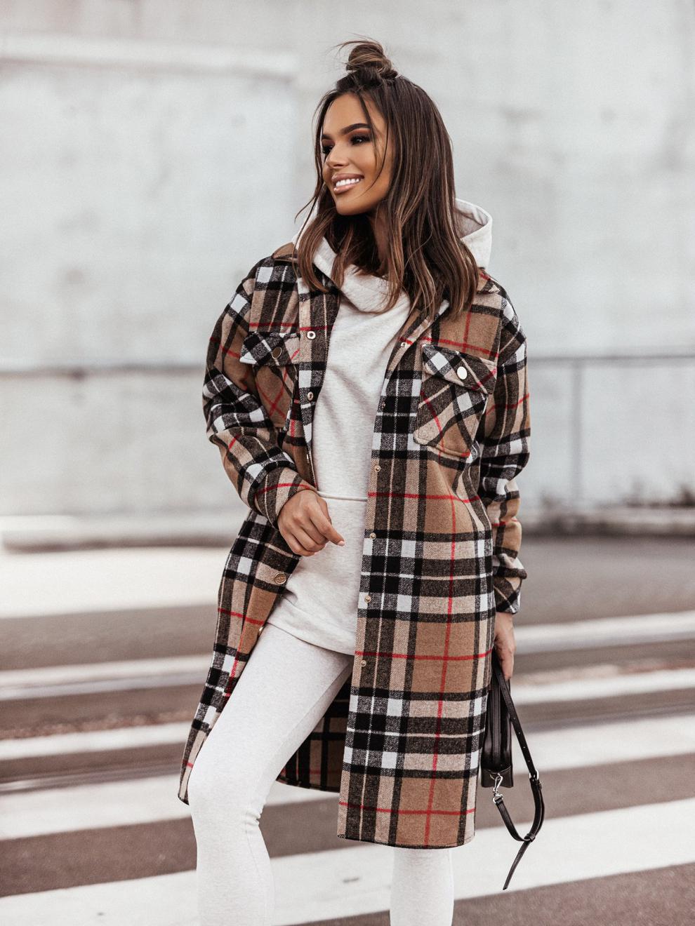 Abrigo de lana con estampado a cuadros de nueva moda europea y americana de Amazon AliExpress