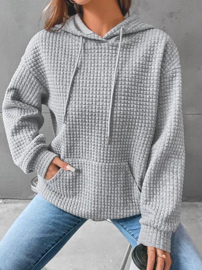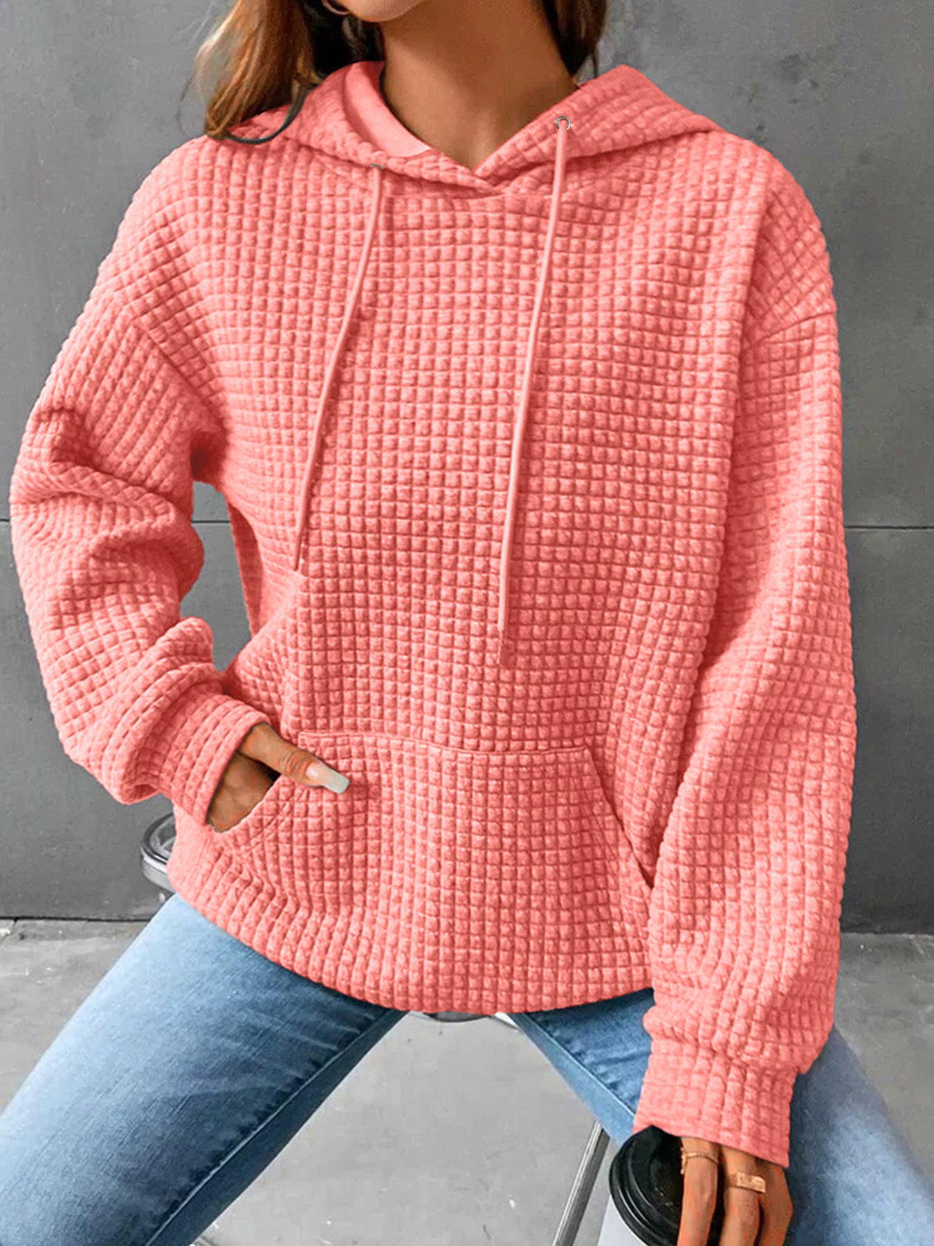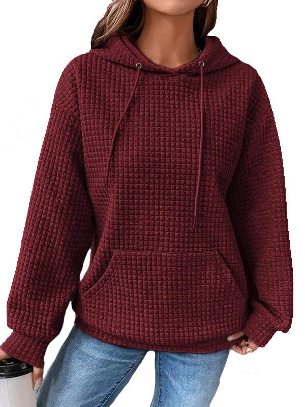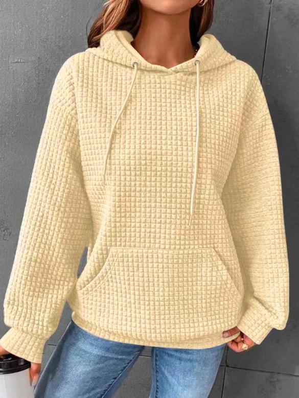 Suéter de manga larga con cuello redondo y gofre para mujer, top de color liso, estilo europeo y americano, otoño e invierno de 2023