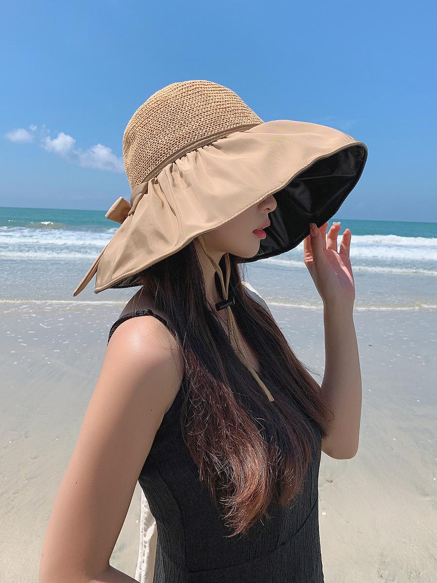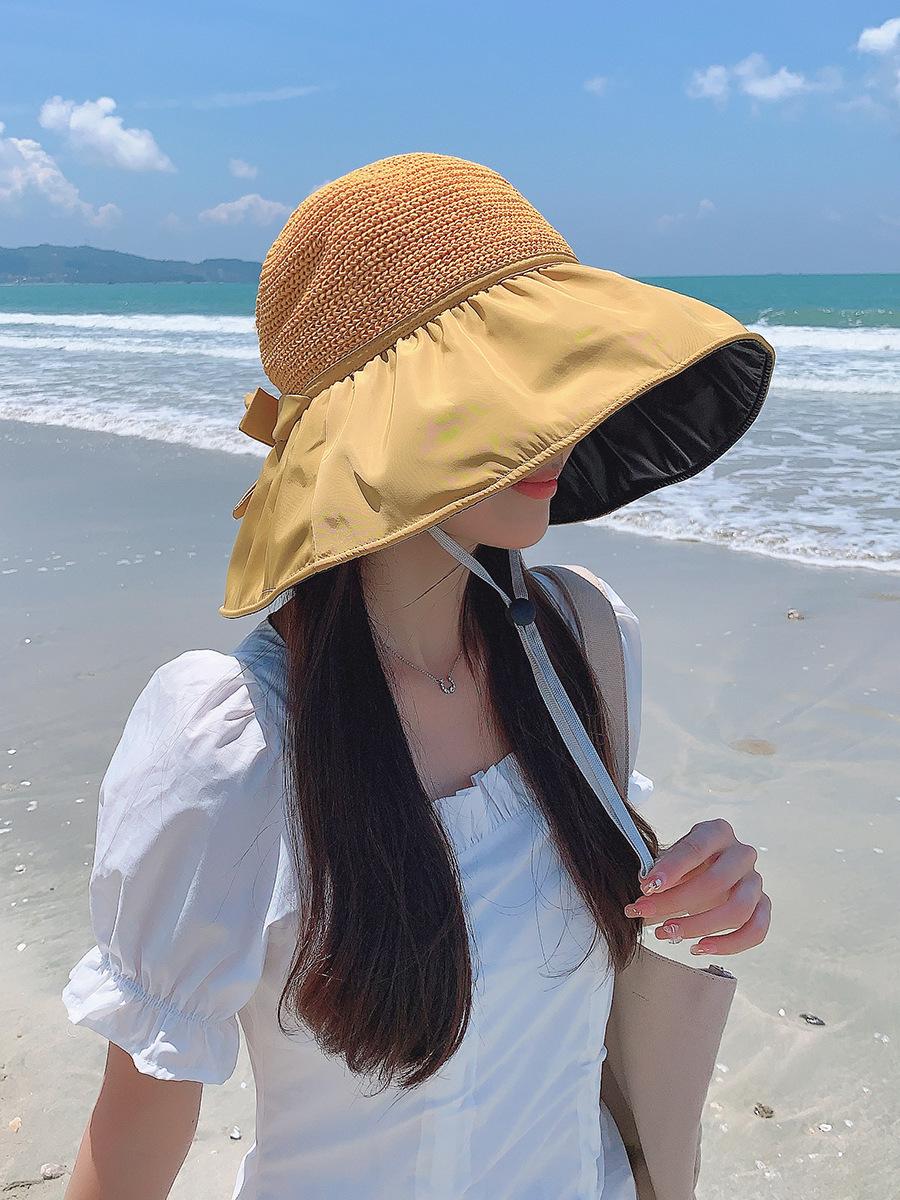 Sombrero de verano para mujer, moda, vacaciones, protección solar, sombrero de ala ancha, antiultravioleta, versátil, para viajes, playa, sombrero de paja
