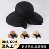 Sombrero de paja de ala ancha con protección solar de verano, de moda al por mayor, con cinta en el borde, monocromático, para mujer, para viajes, vacaciones, sombrilla de playa