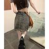 Falda corta de mezclilla para mujer, verano 2024, nueva, cintura alta, adelgazante, pequeña, línea A, falda de cadera, falda de media longitud, hakama