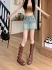Falda vaquera con borlas Spice Girl para mujer, falda corta de verano de corte A, cintura alta, estilo retro, antideslizamiento
