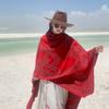 Capa chal estilo étnico con cadena vintage, bufanda, pastizal, desierto, ropa de viaje con sombrero, bufanda, prenda exterior, capa