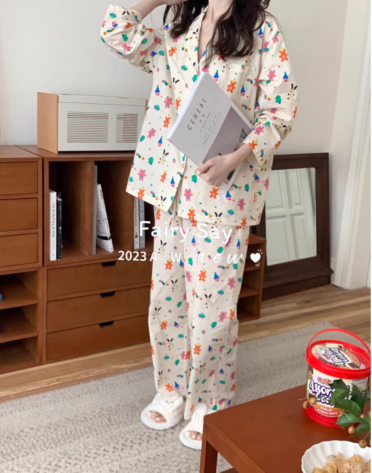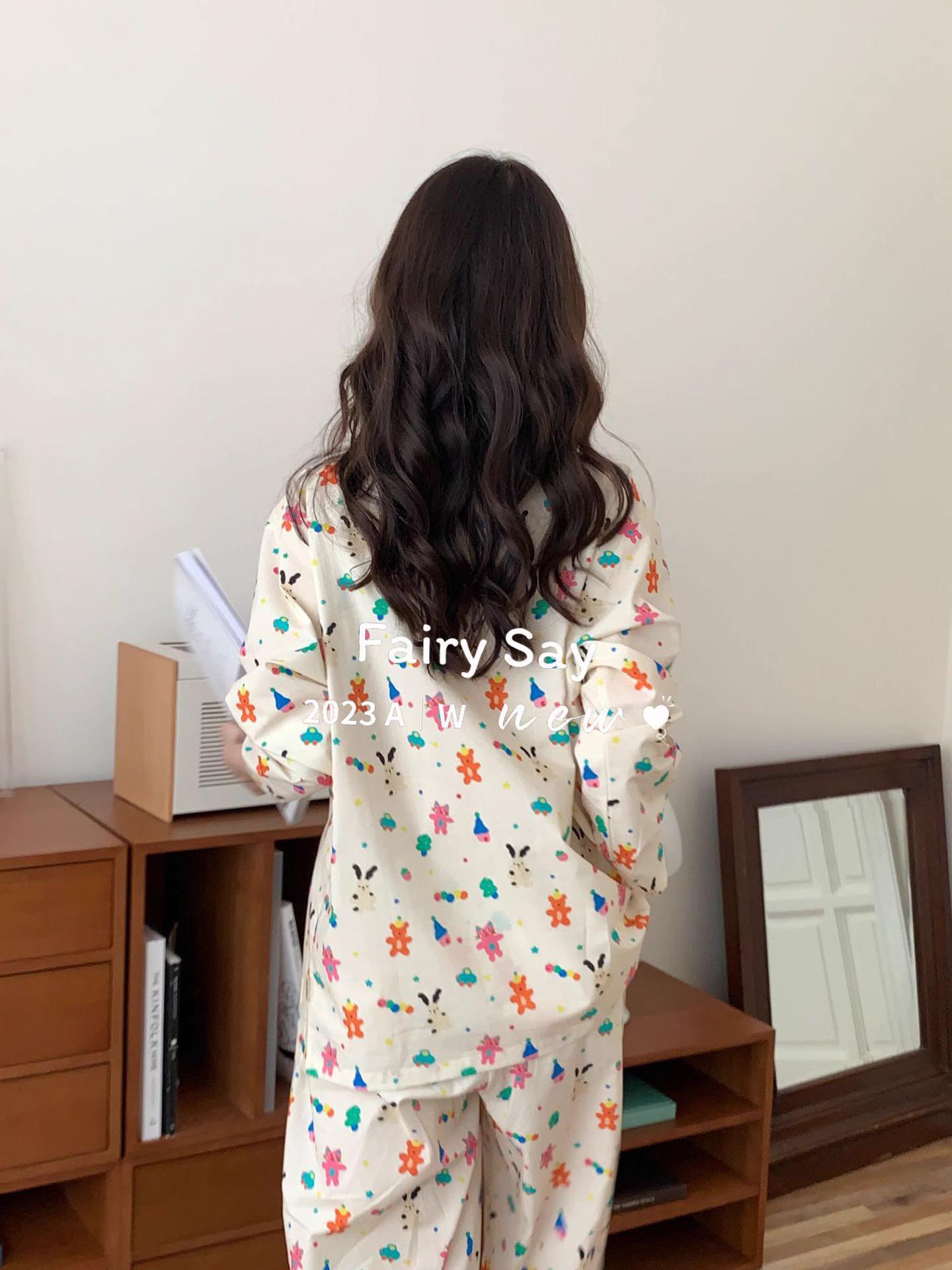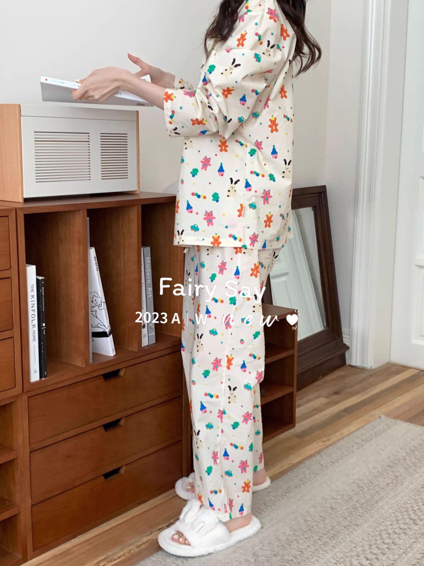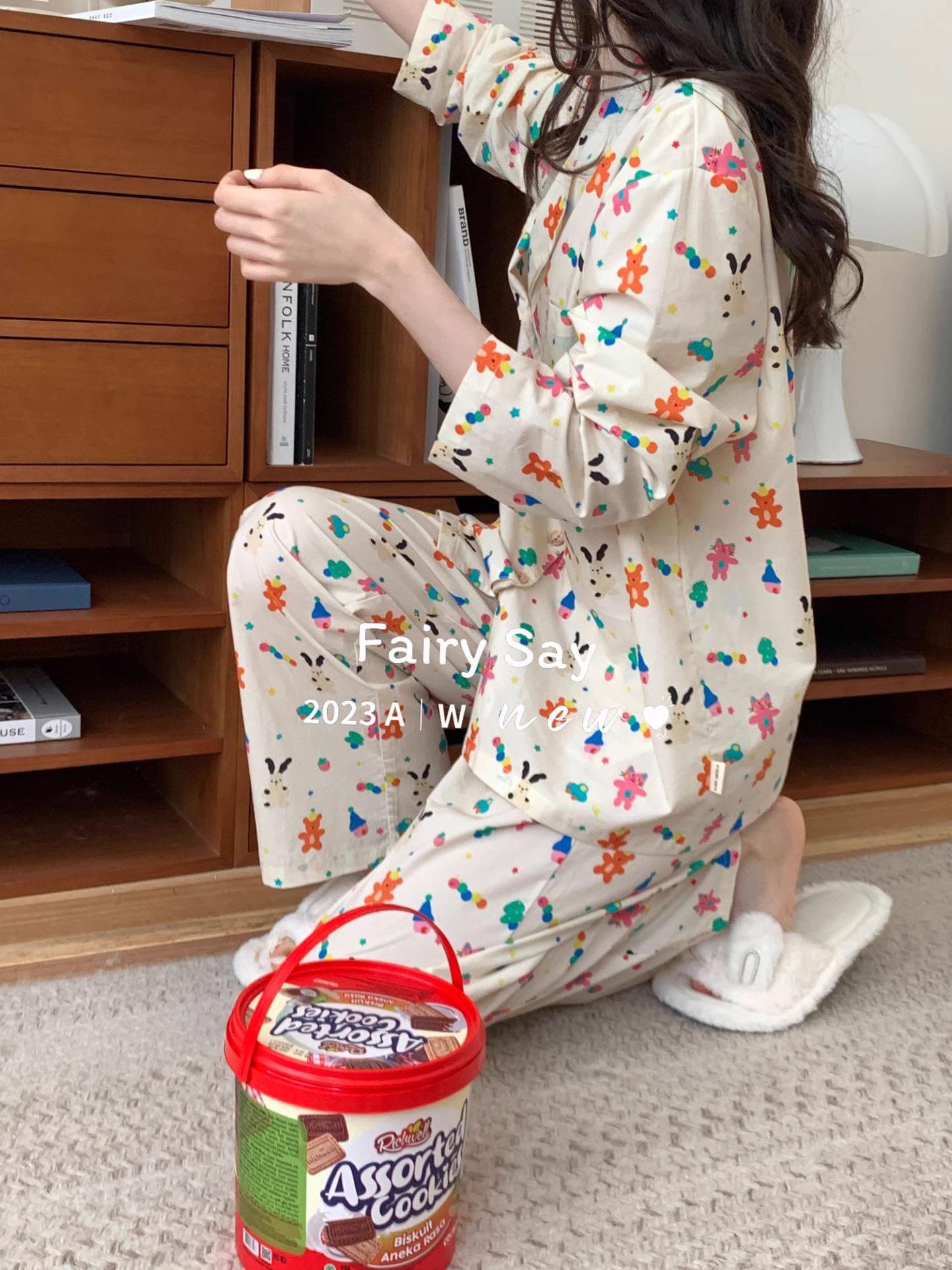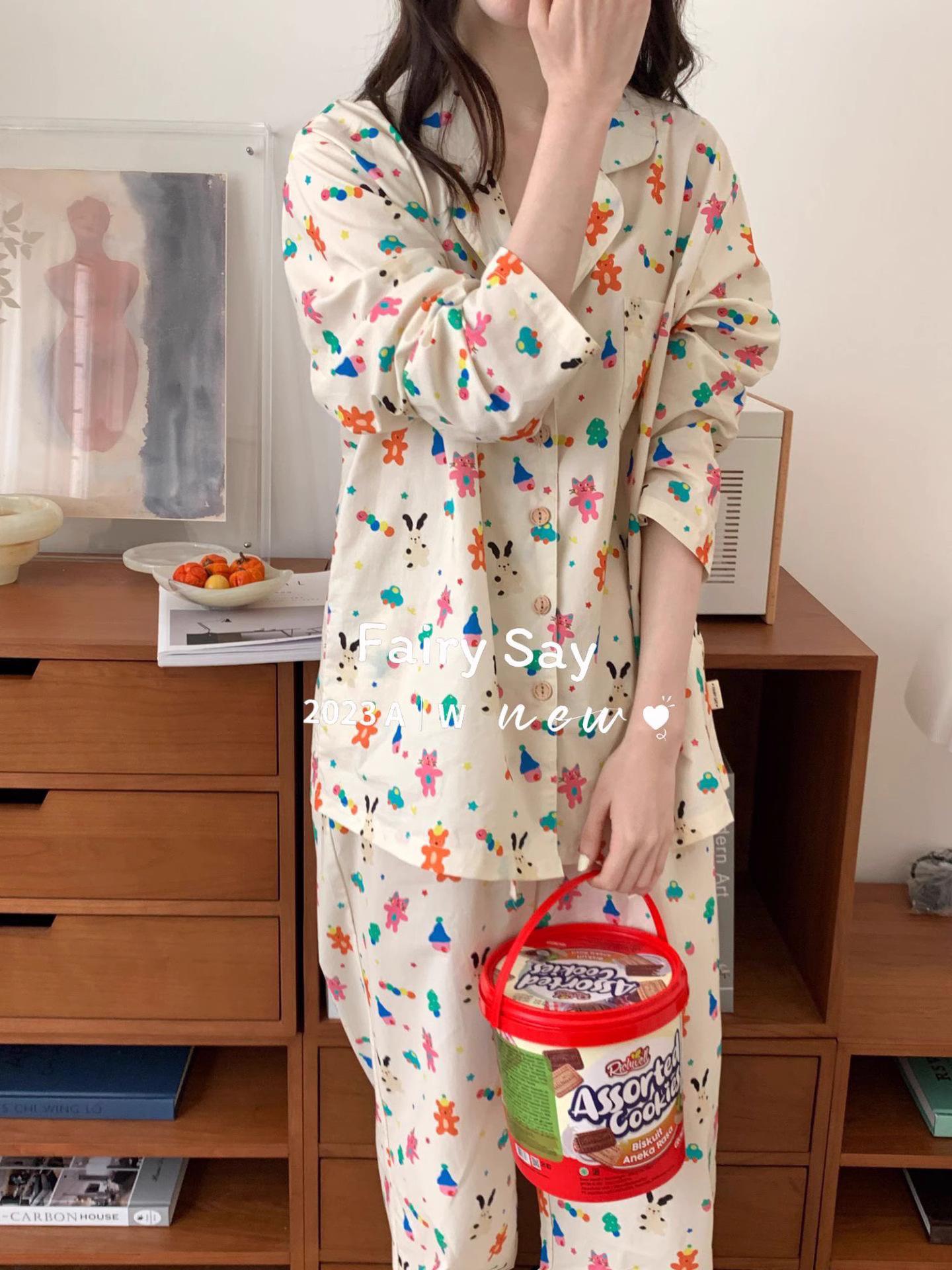 Pijamas de algodón con diseño de nubes para mujer, ropa informal de estilo japonés con dibujos animados, estilo coreano, para el hogar, de principios de otoño, transfronterizos