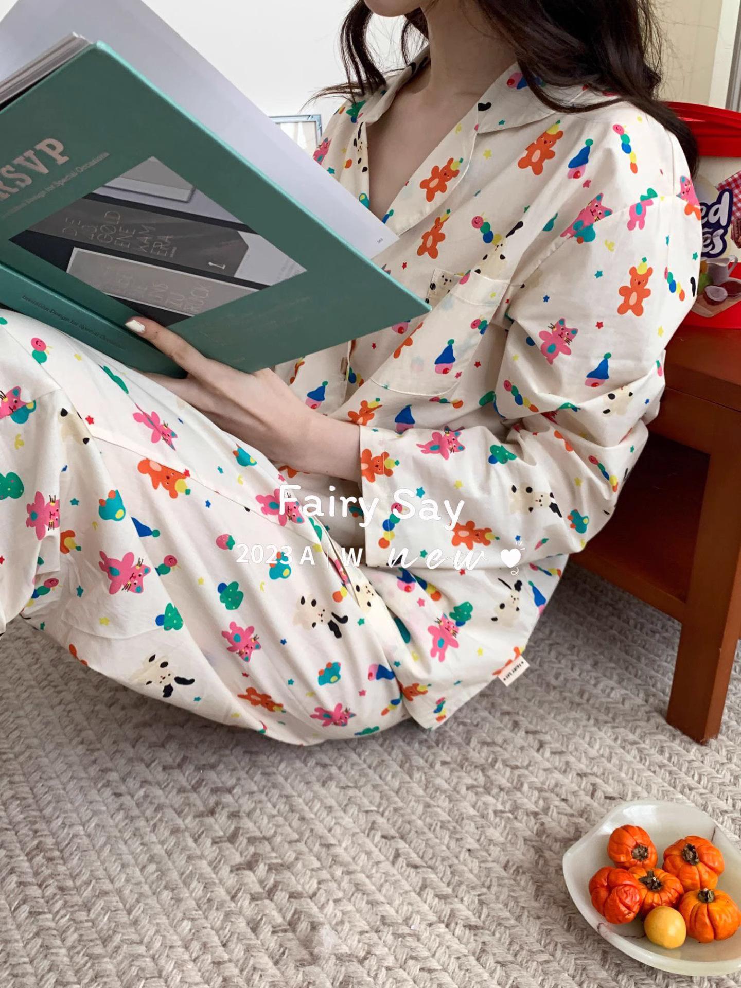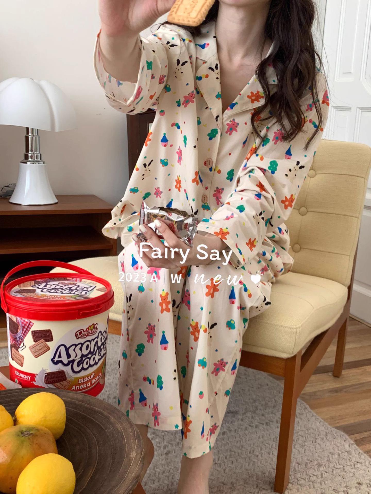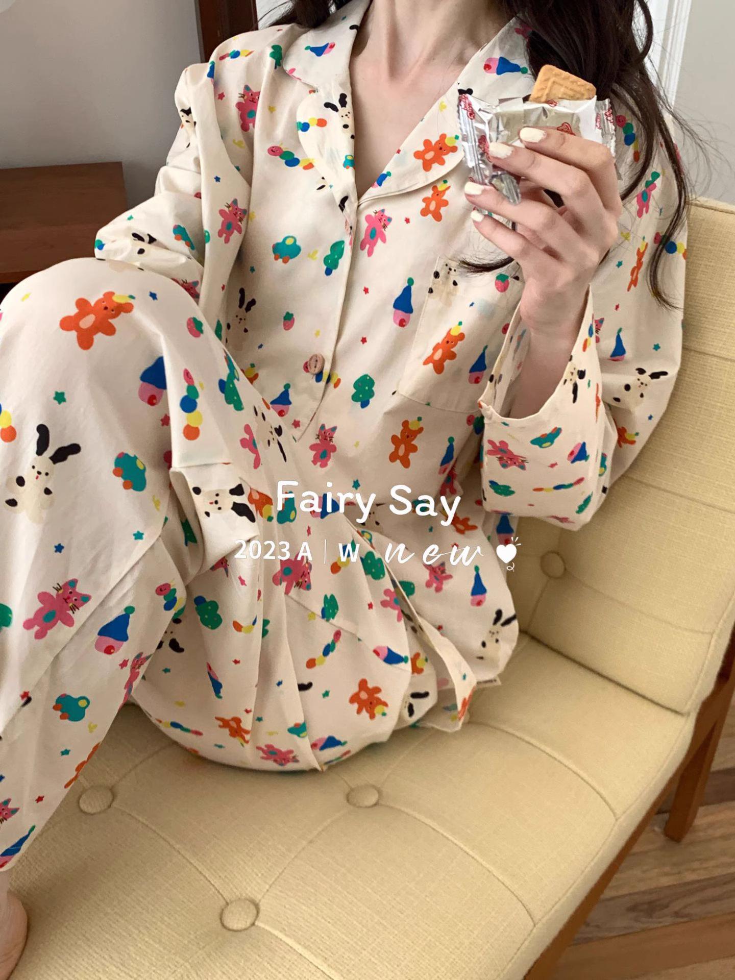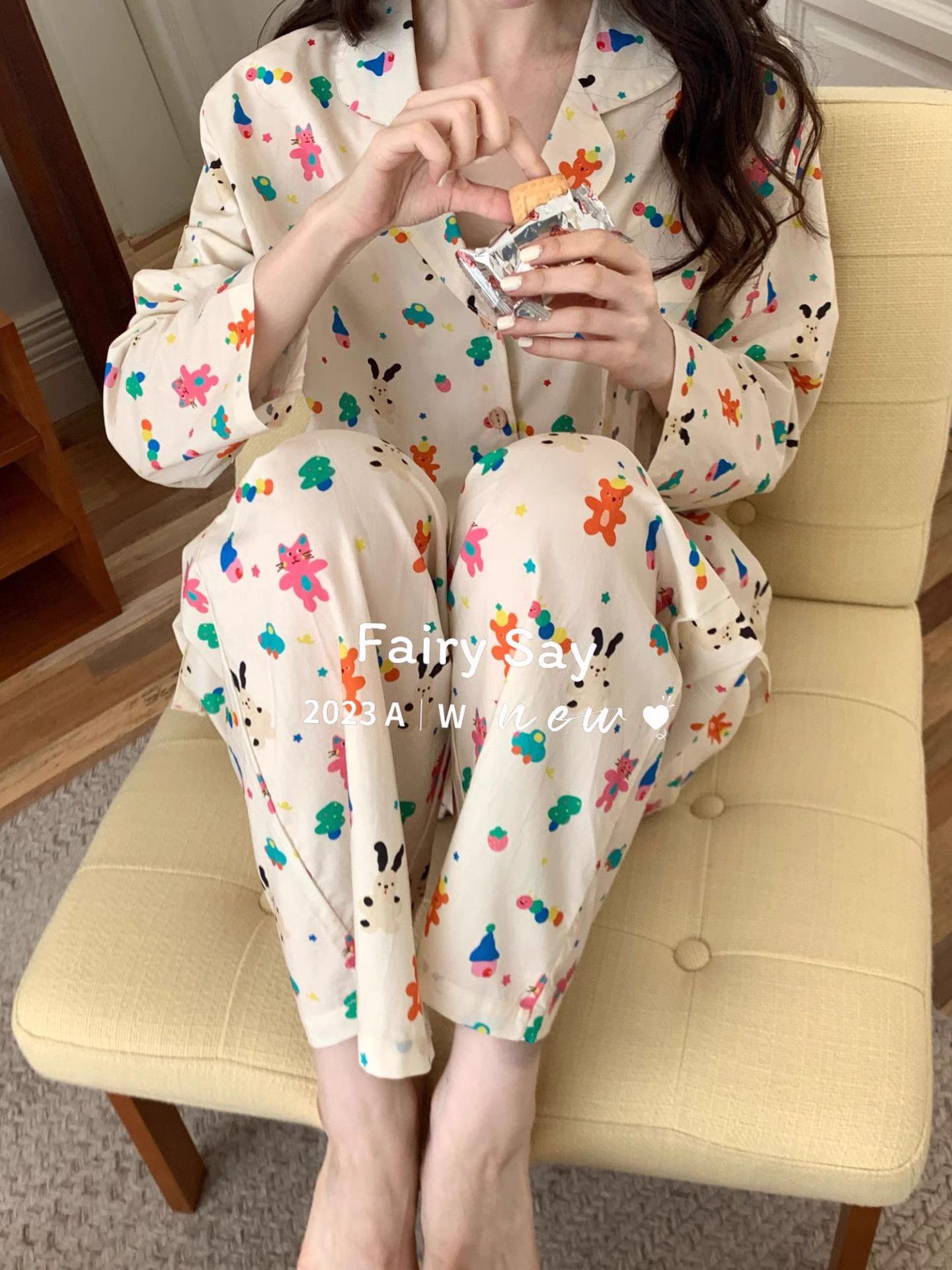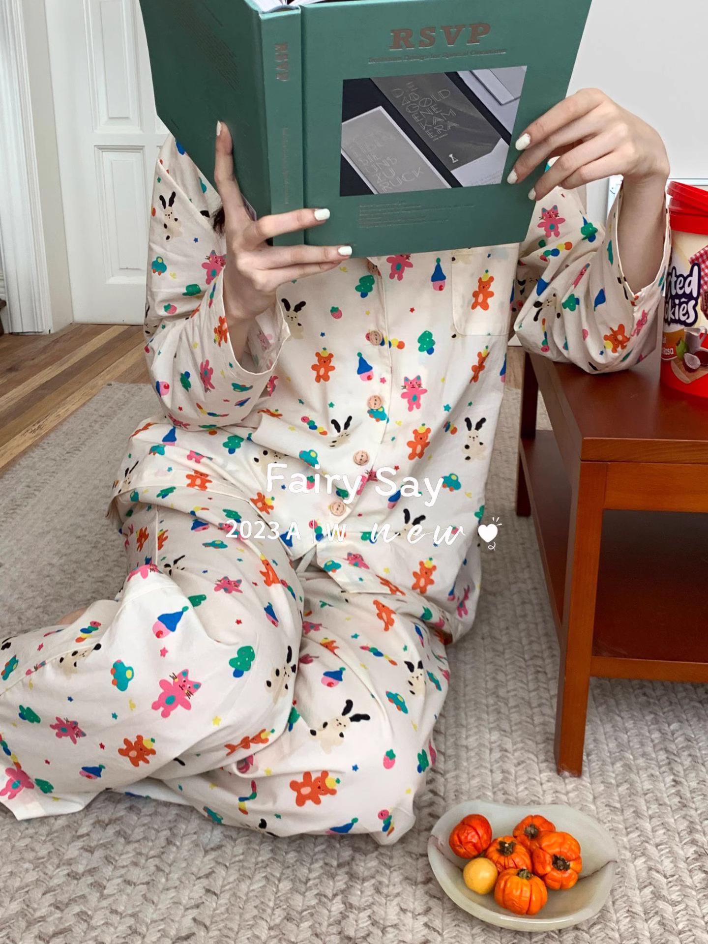 Pijamas de algodón con diseño de nubes para mujer, ropa informal de estilo japonés con dibujos animados, estilo coreano, para el hogar, de principios de otoño, transfronterizos