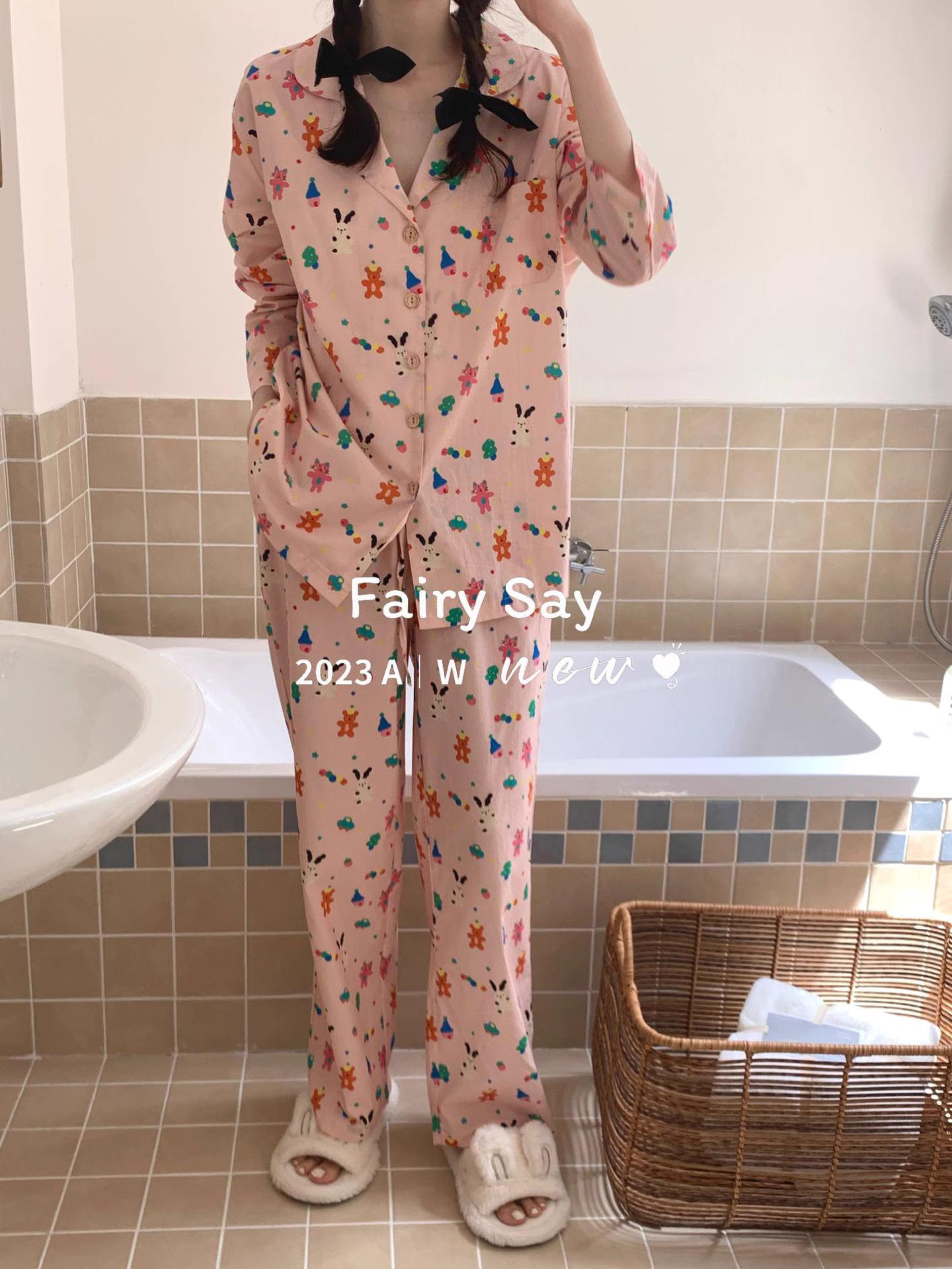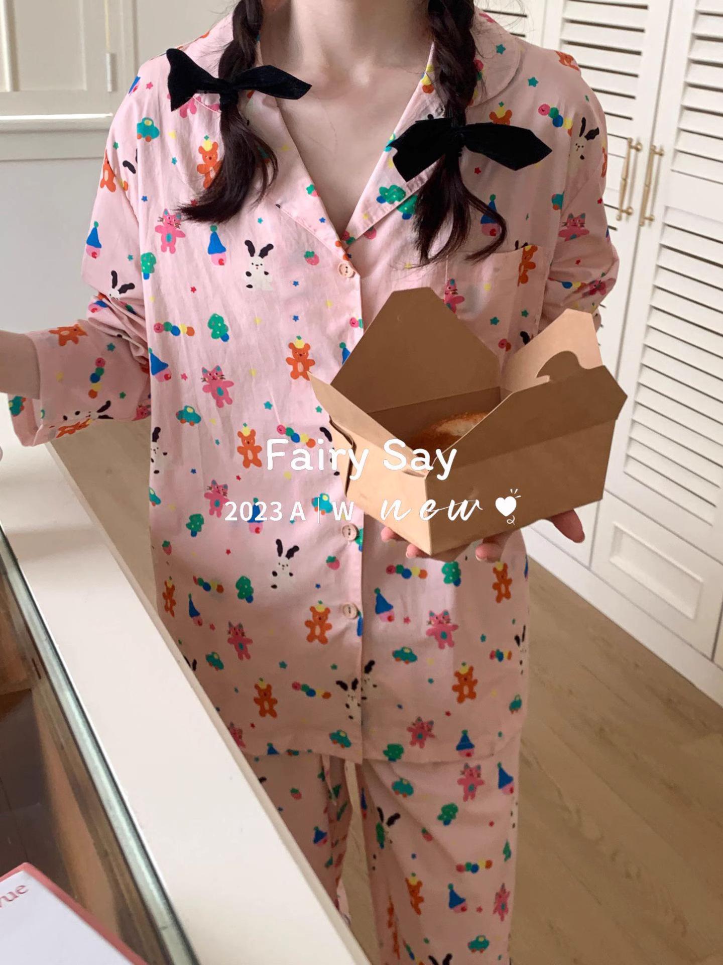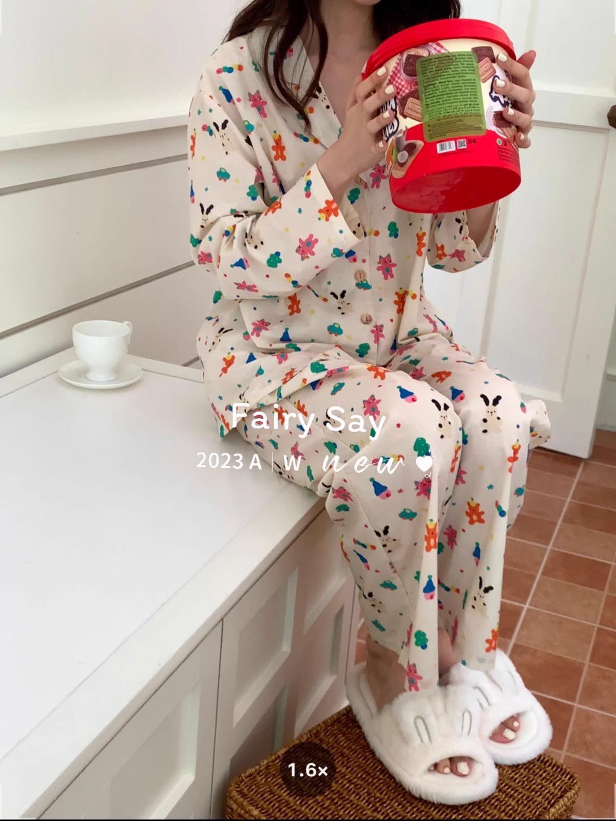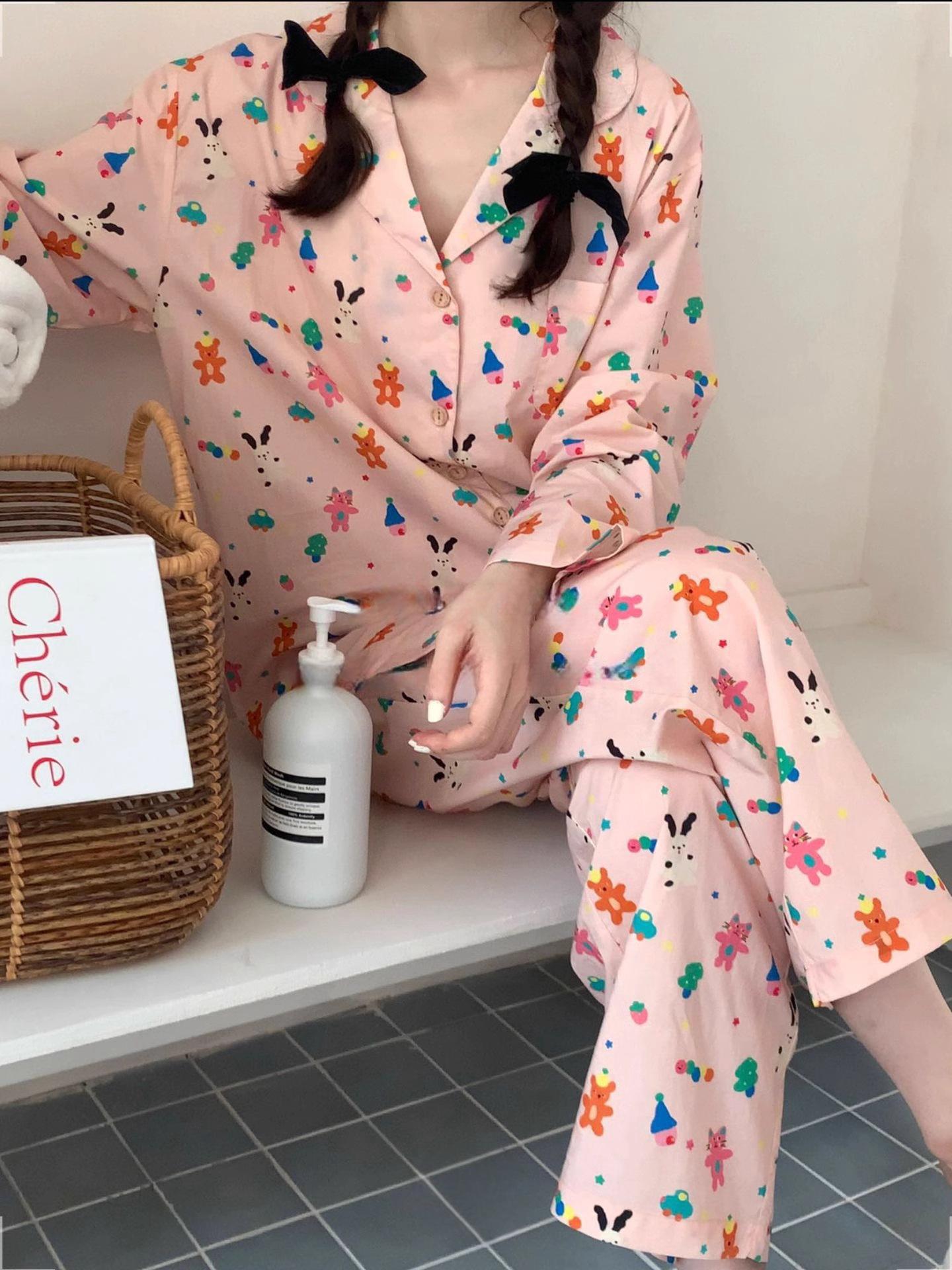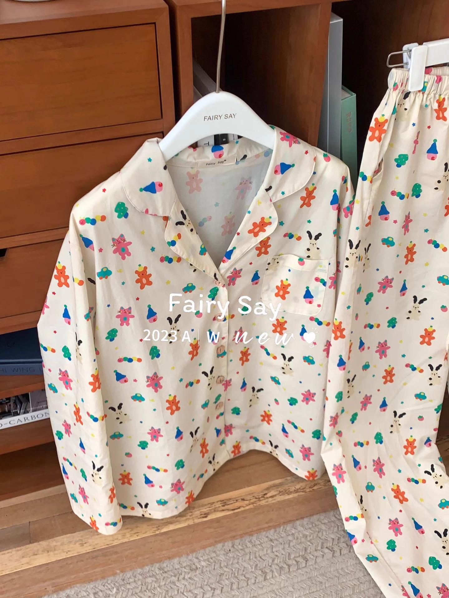 Pijamas de algodón con diseño de nubes para mujer, ropa informal de estilo japonés con dibujos animados, estilo coreano, para el hogar, de principios de otoño, transfronterizos