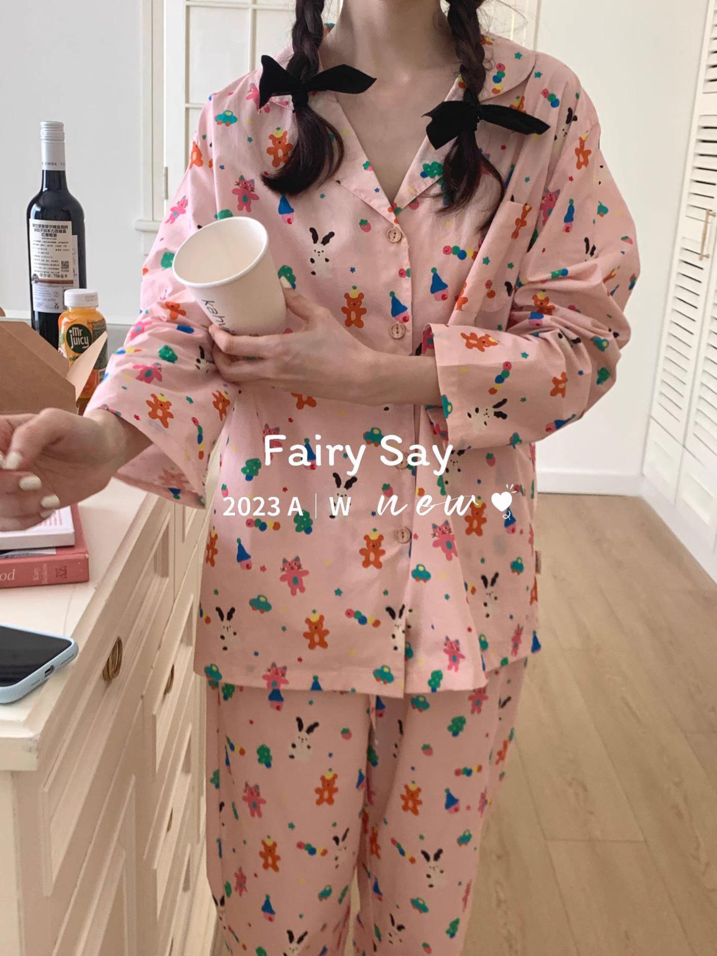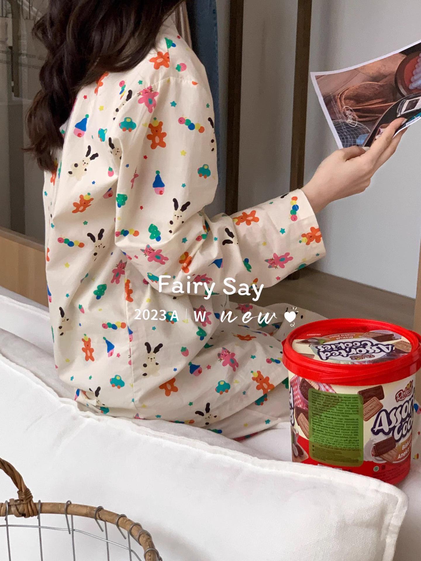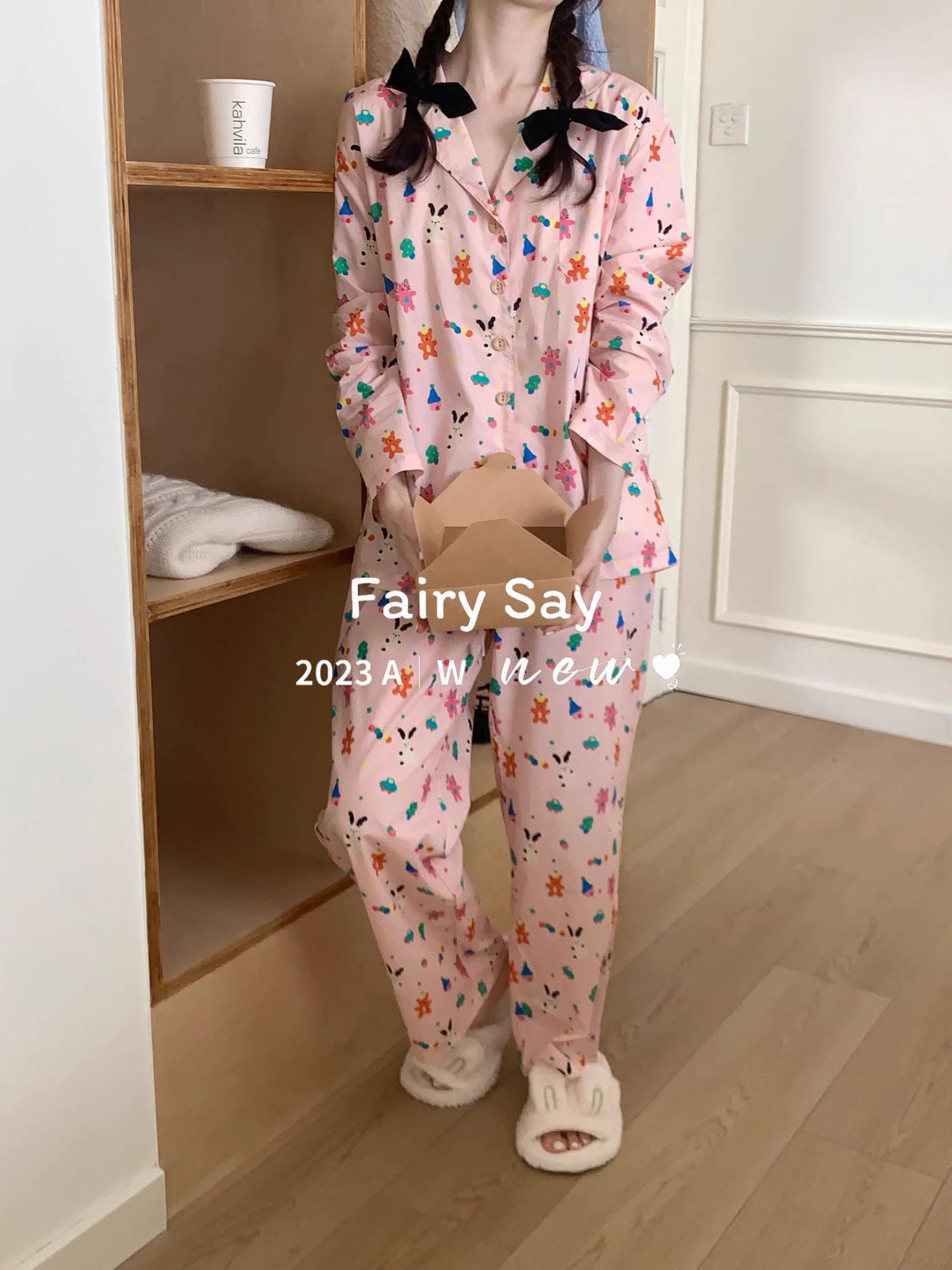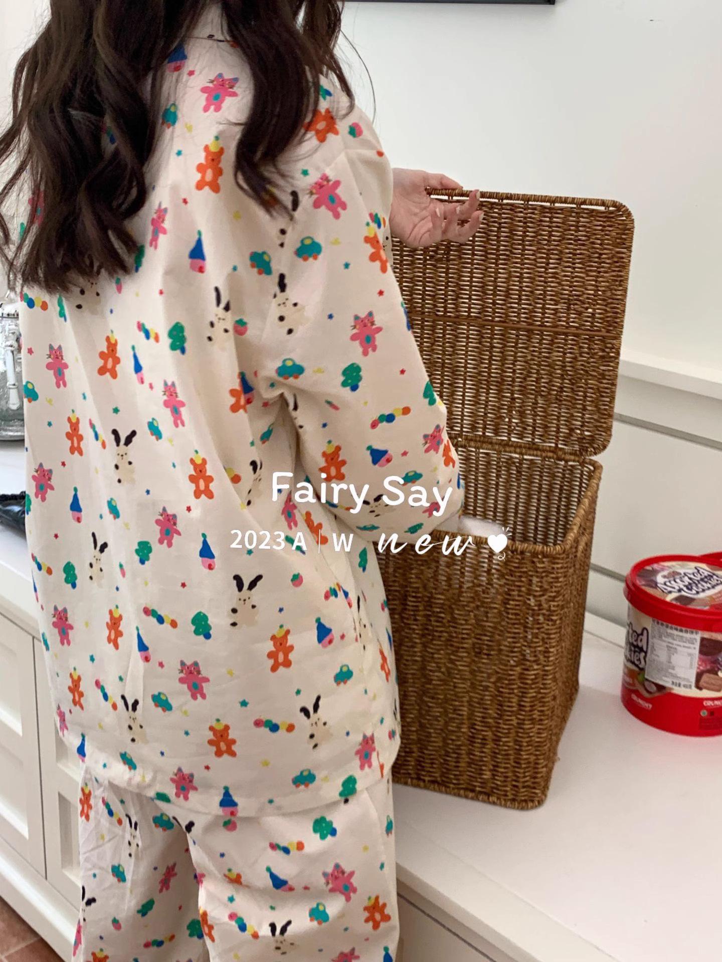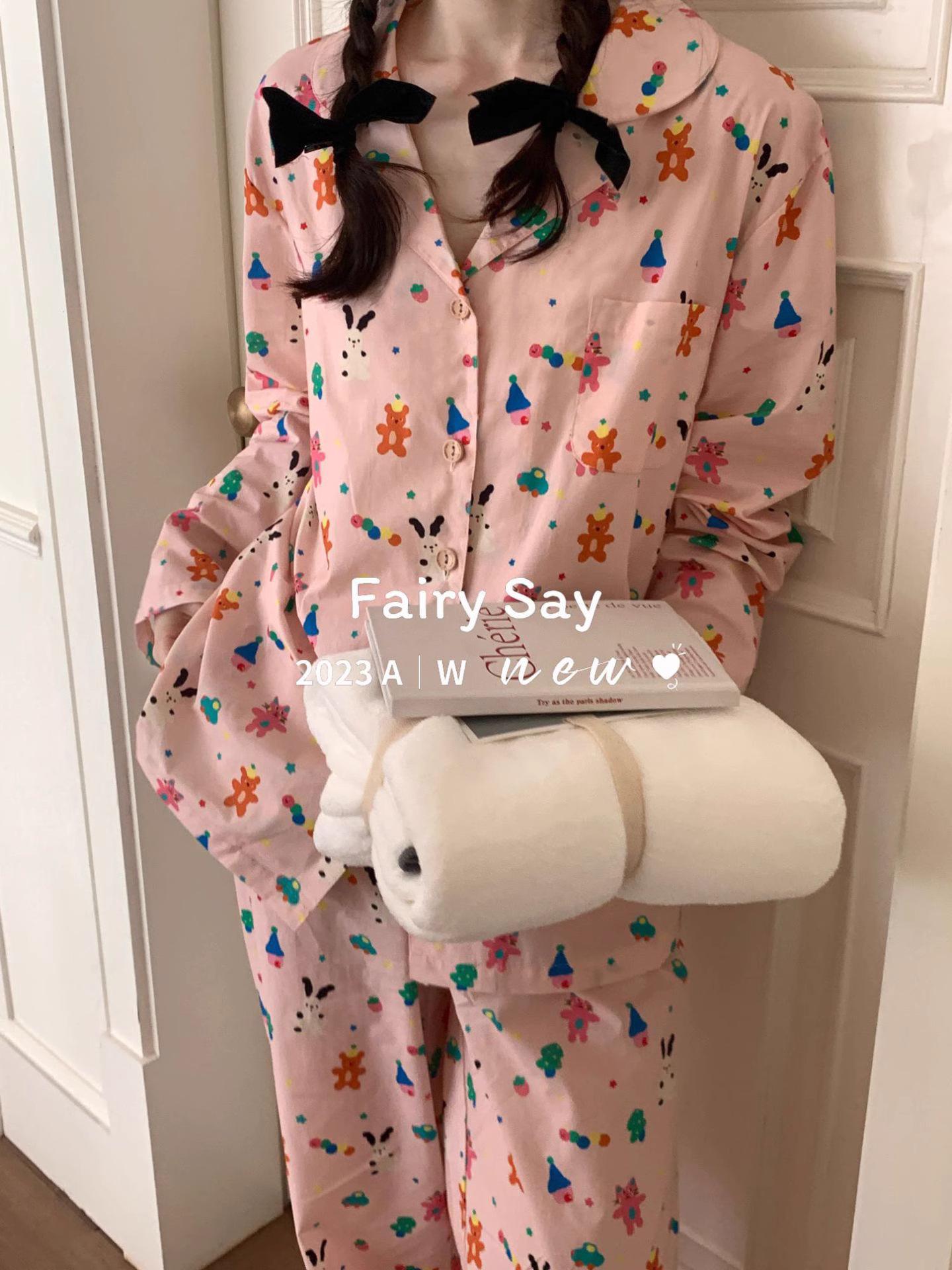 Pijamas de algodón con diseño de nubes para mujer, ropa informal de estilo japonés con dibujos animados, estilo coreano, para el hogar, de principios de otoño, transfronterizos