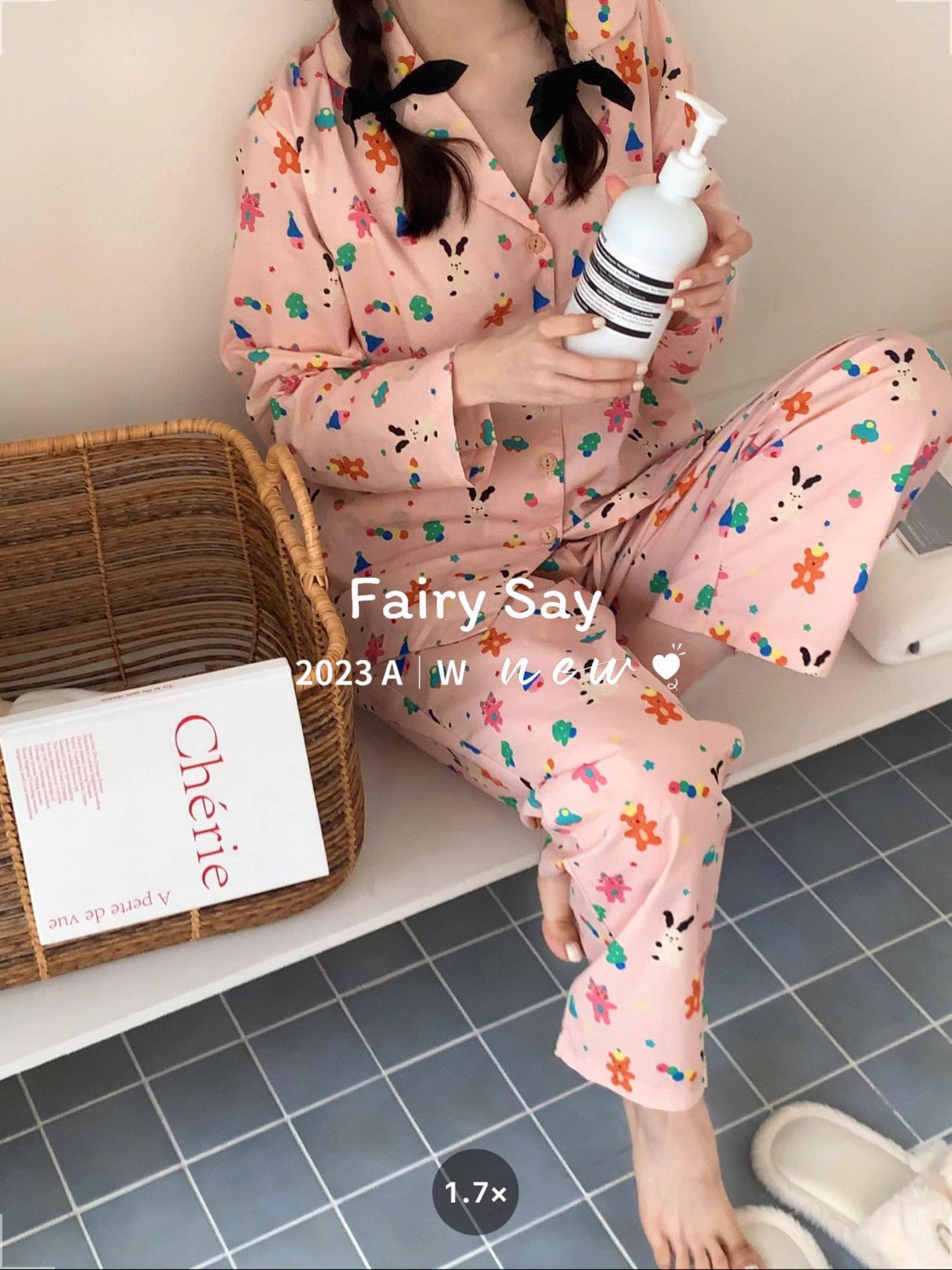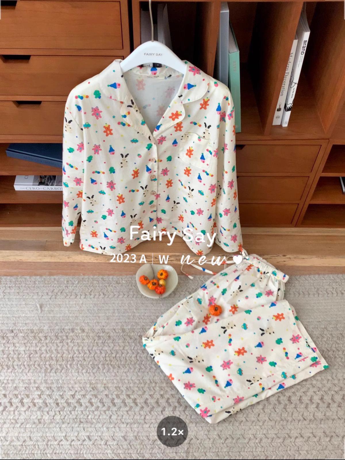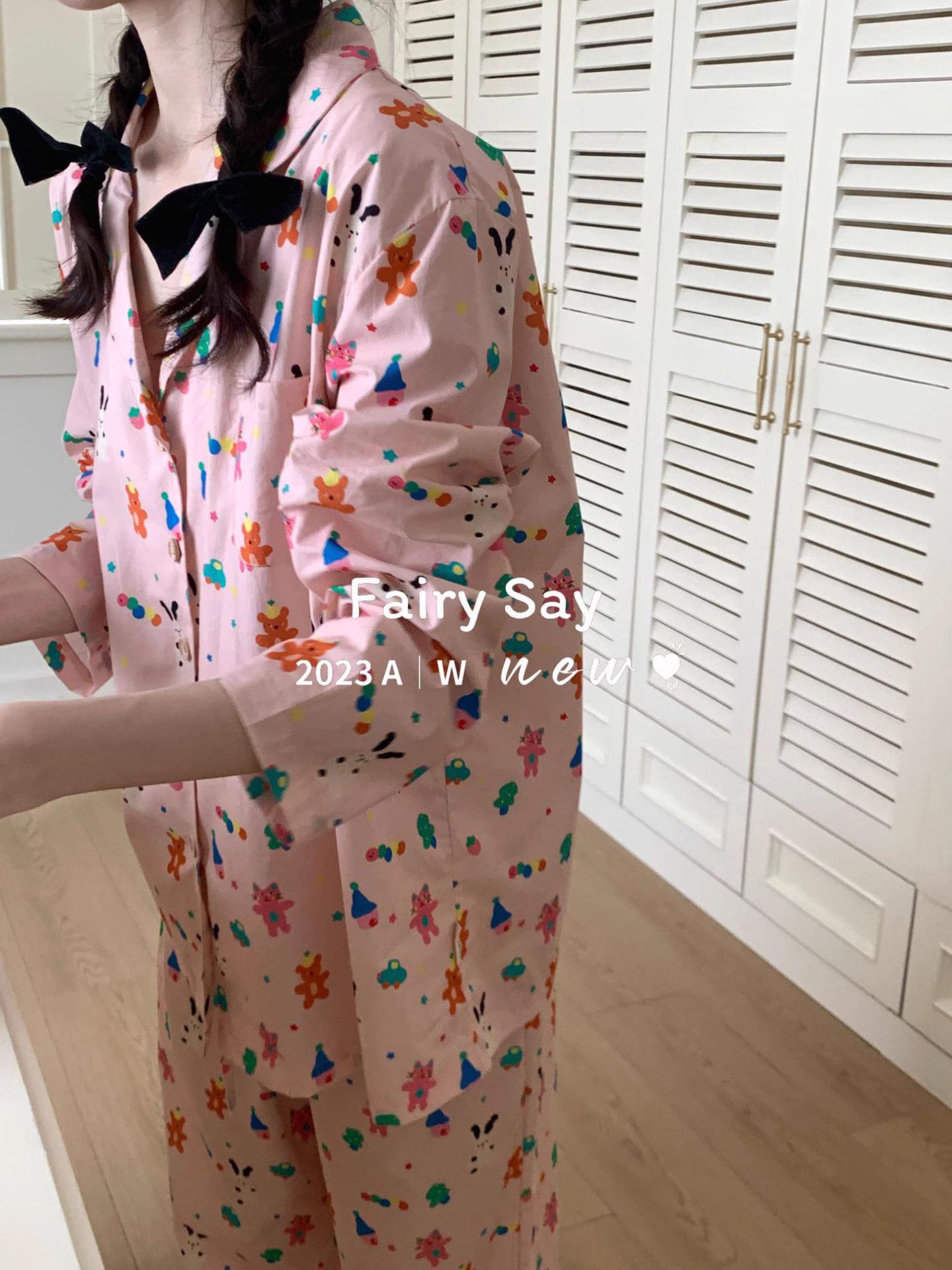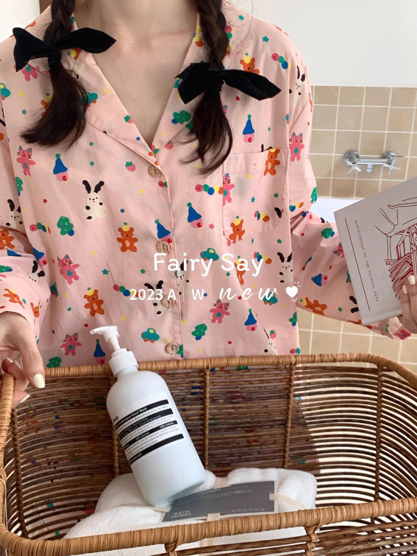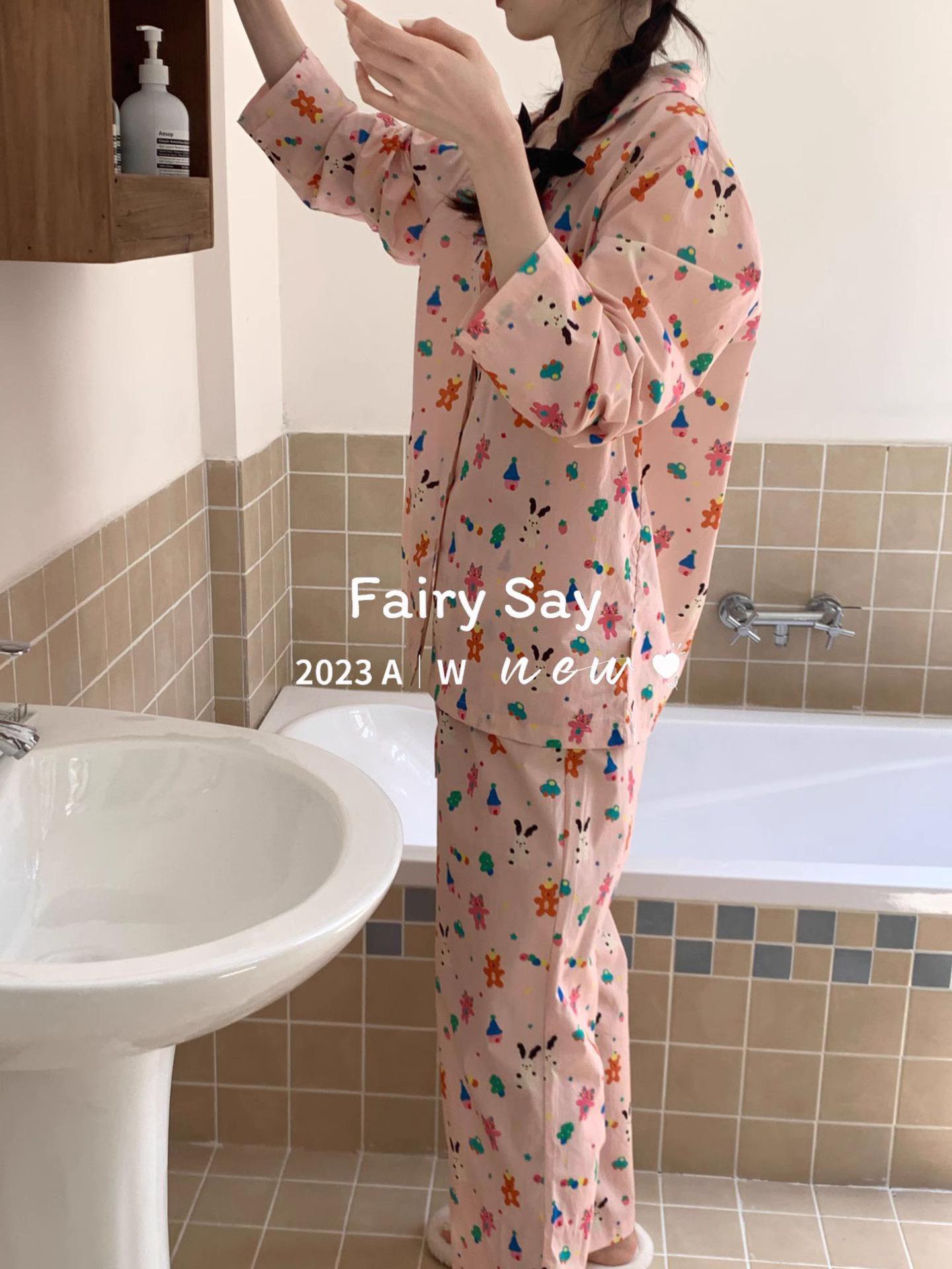 Pijamas de algodón con diseño de nubes para mujer, ropa informal de estilo japonés con dibujos animados, estilo coreano, para el hogar, de principios de otoño, transfronterizos