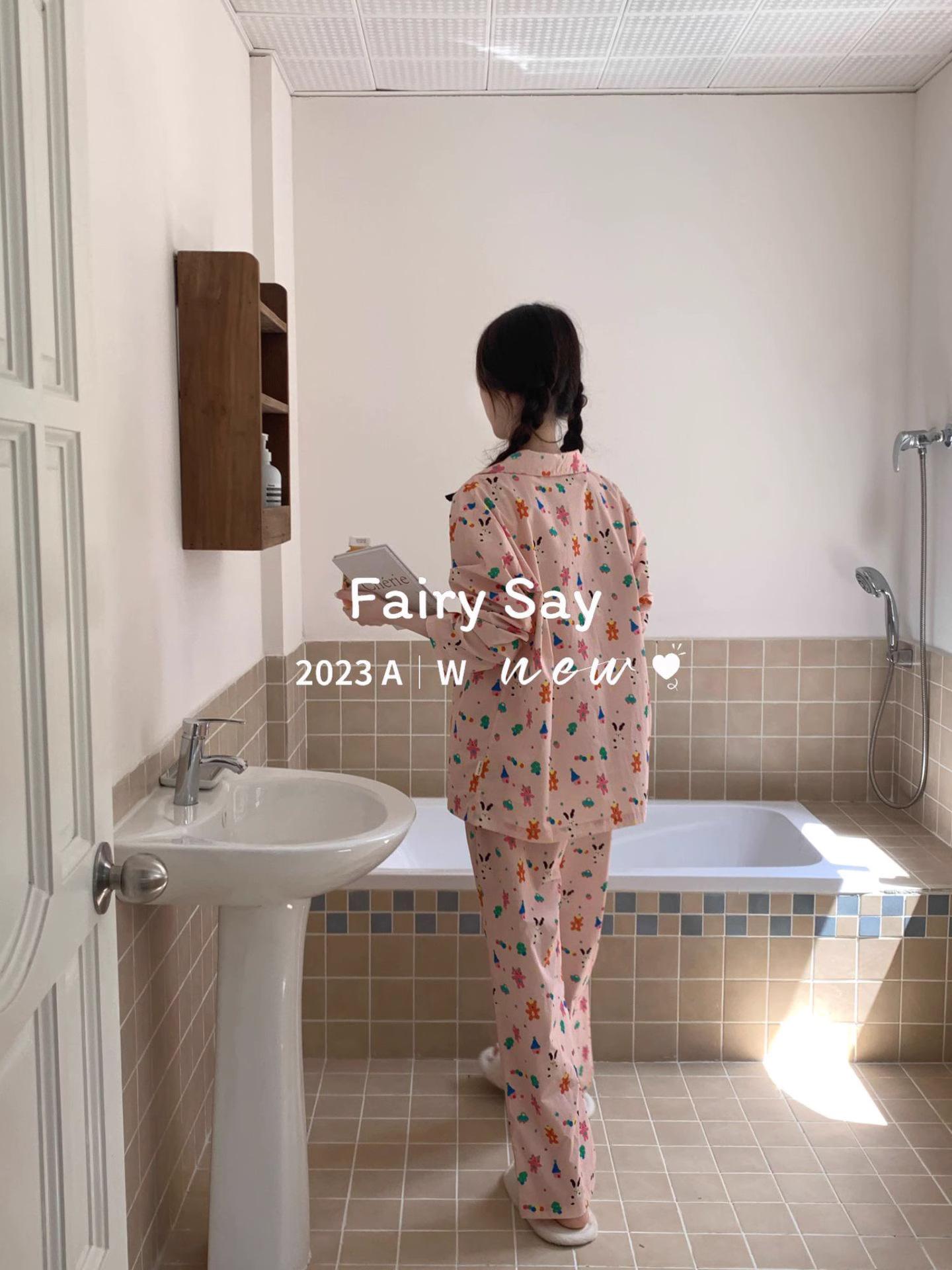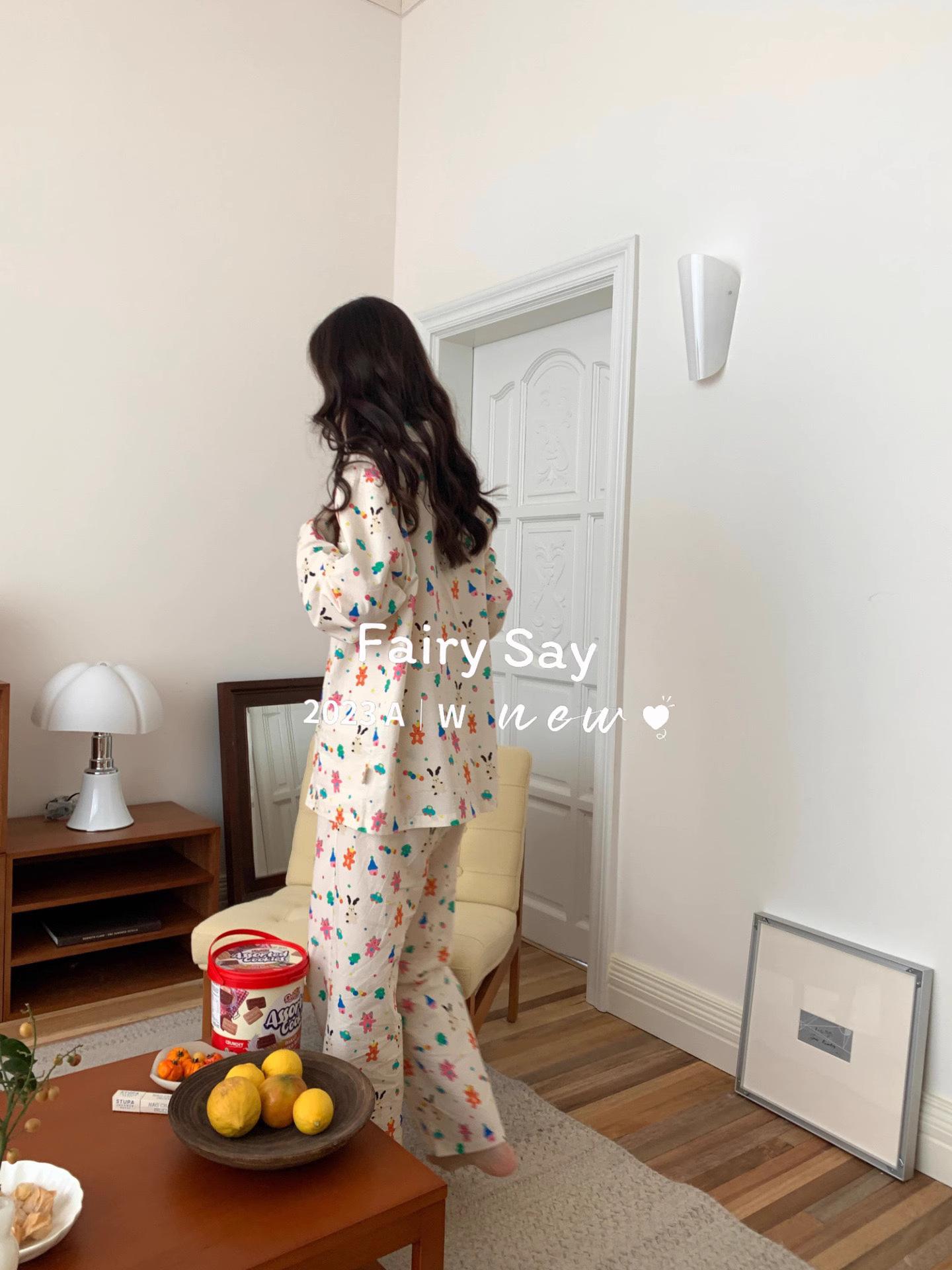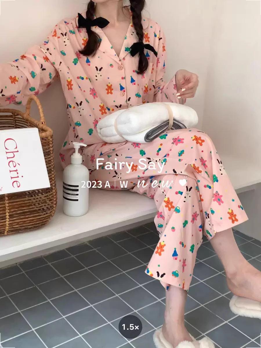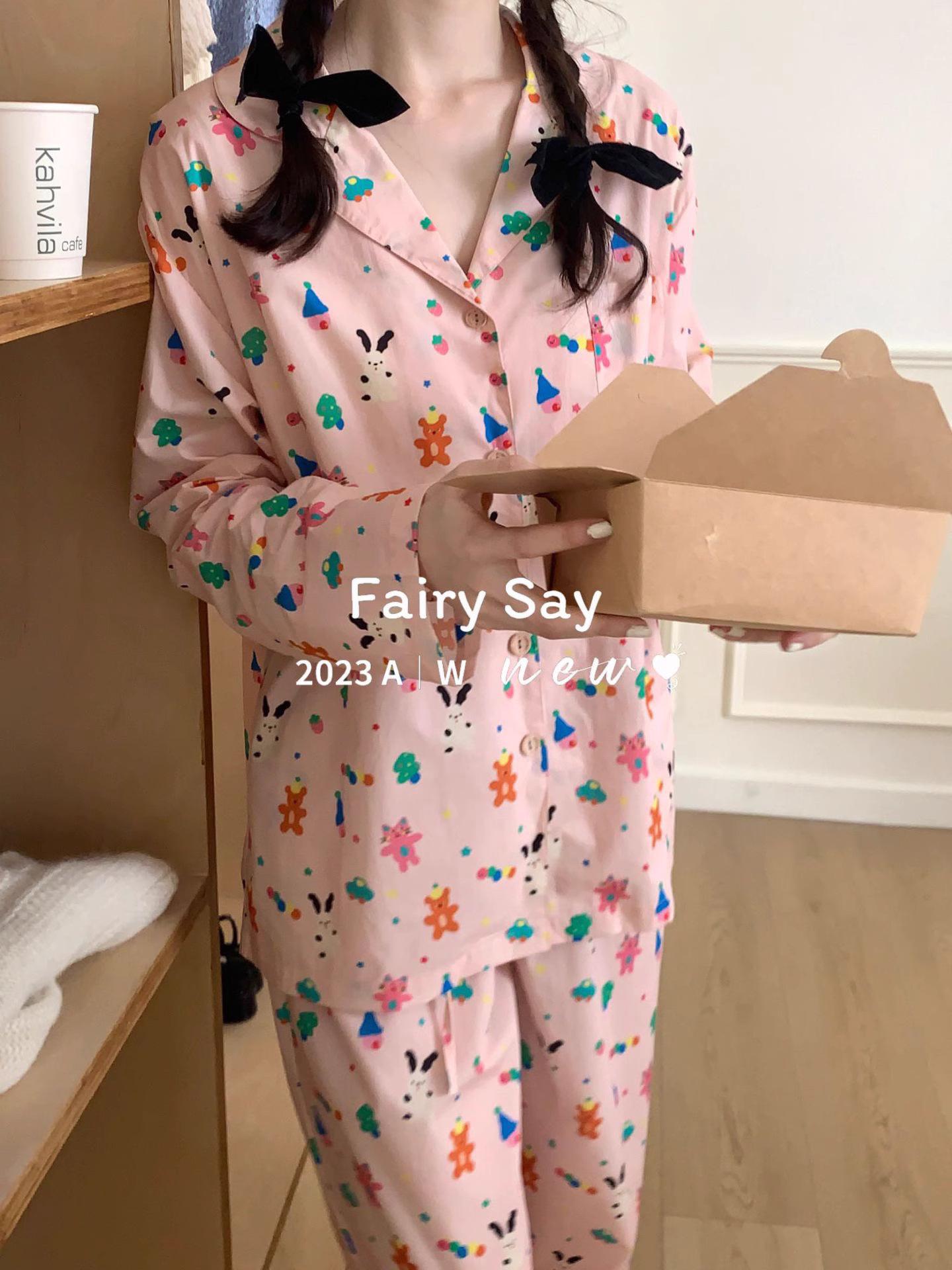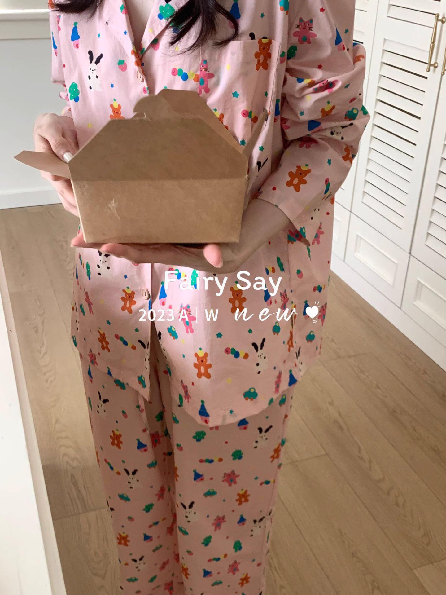 Pijamas de algodón con diseño de nubes para mujer, ropa informal de estilo japonés con dibujos animados, estilo coreano, para el hogar, de principios de otoño, transfronterizos