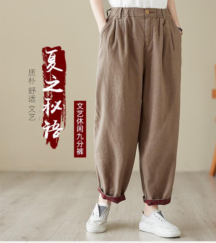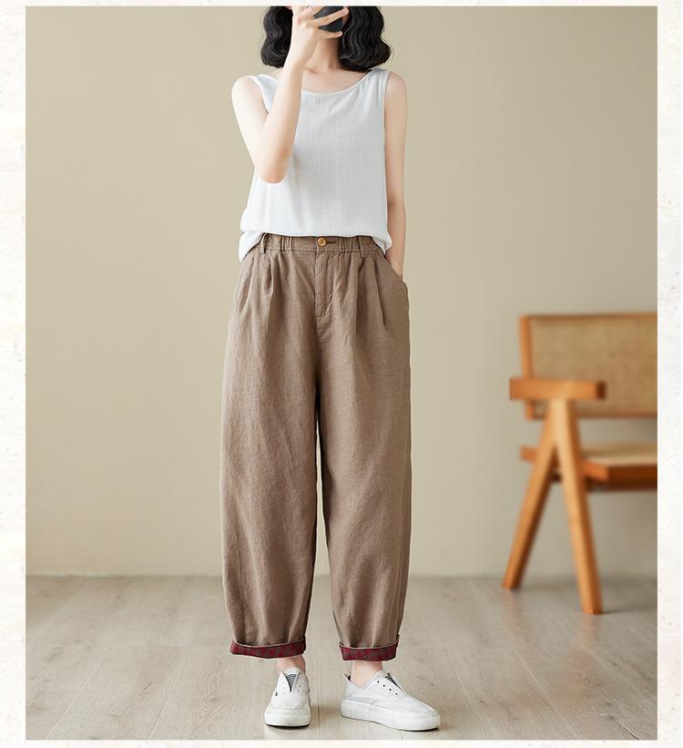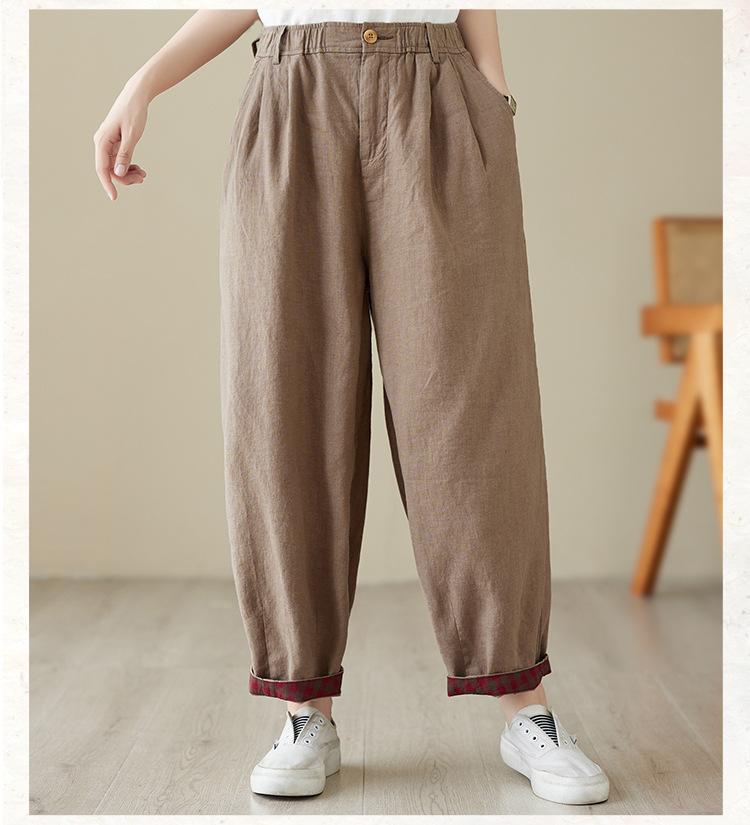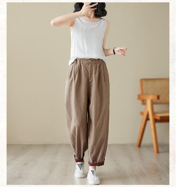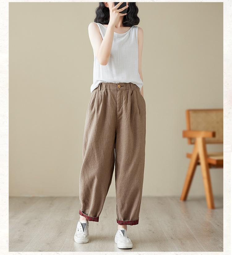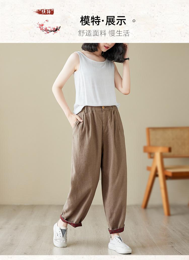 Exportación toma real 2024 nuevo sentido vertical tubo recto algodón y lino pantalones casuales cintura alta holgados combinables slim contraste pantalones anchos de pierna