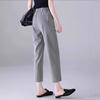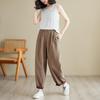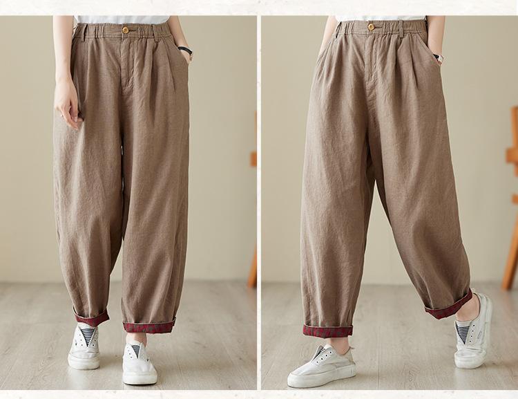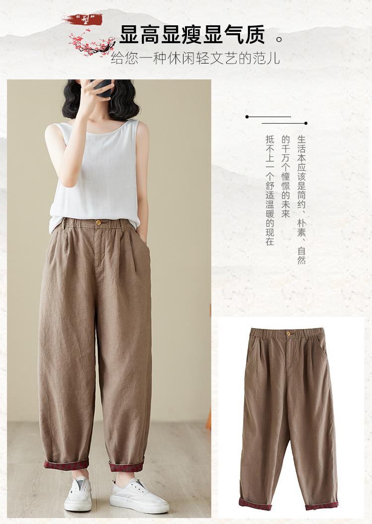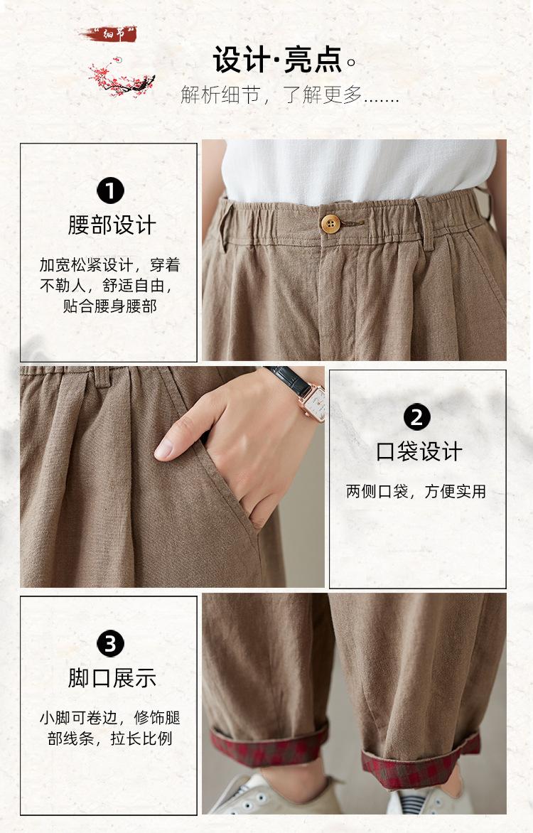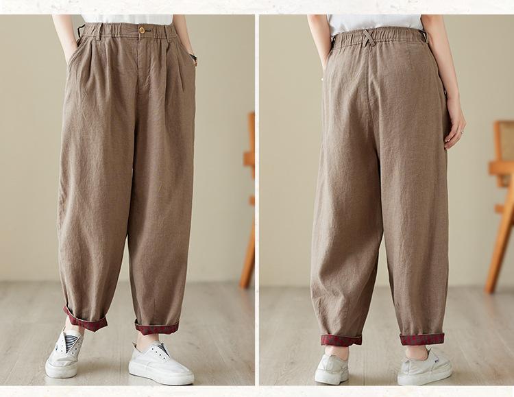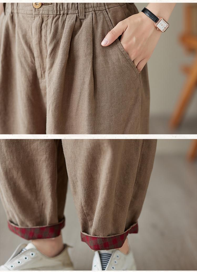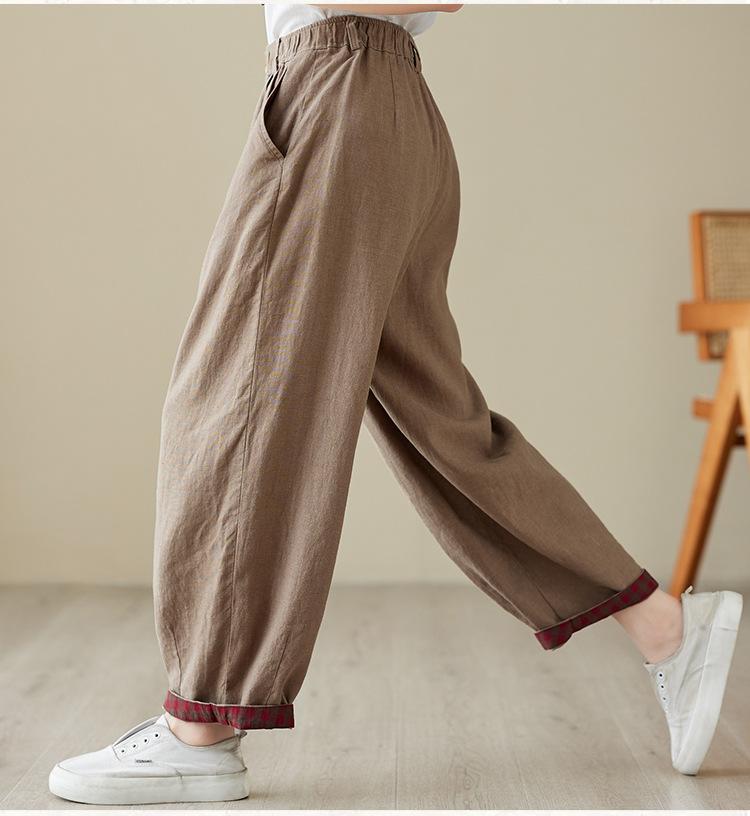 Exportación toma real 2024 nuevo sentido vertical tubo recto algodón y lino pantalones casuales cintura alta holgados combinables slim contraste pantalones anchos de pierna