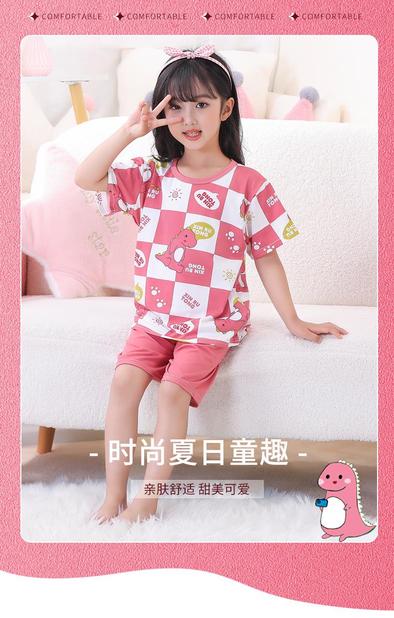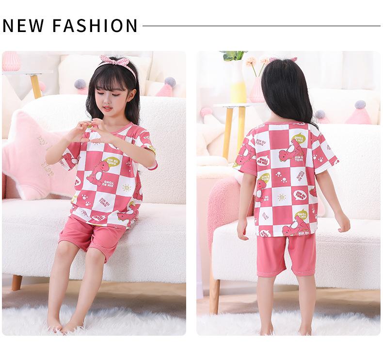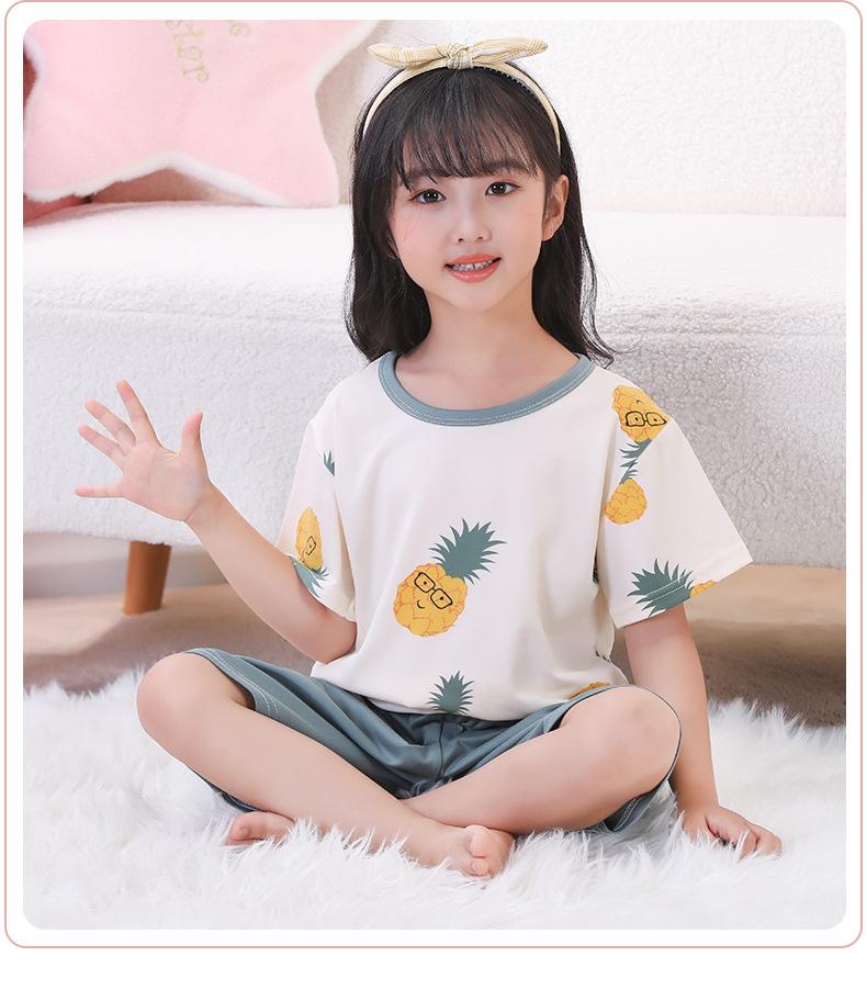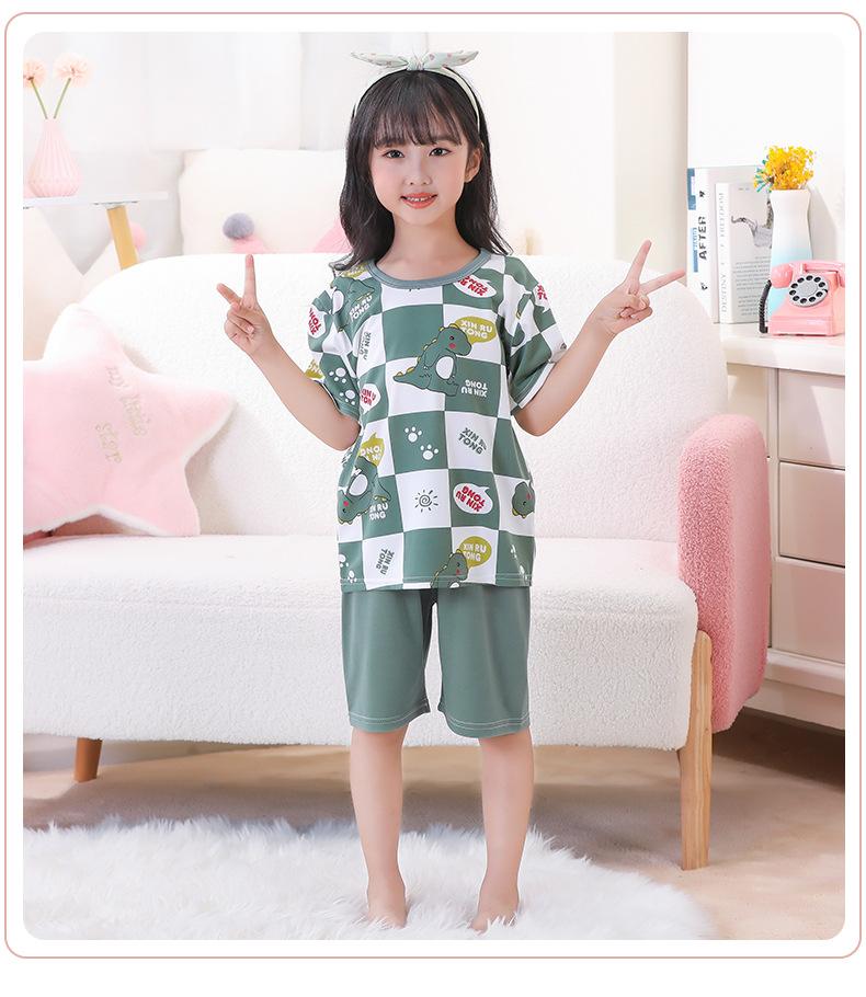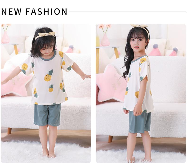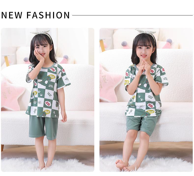 Pijamas de verano para niños, finos, de cuello redondo y manga corta, de estilo occidental con dibujos animados, para niños de talla mediana y grande.