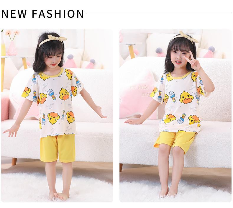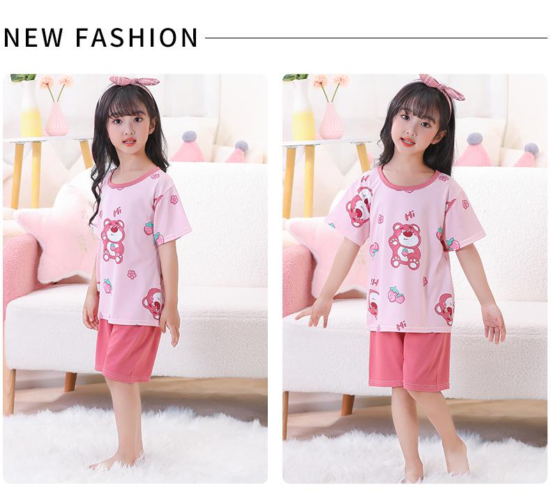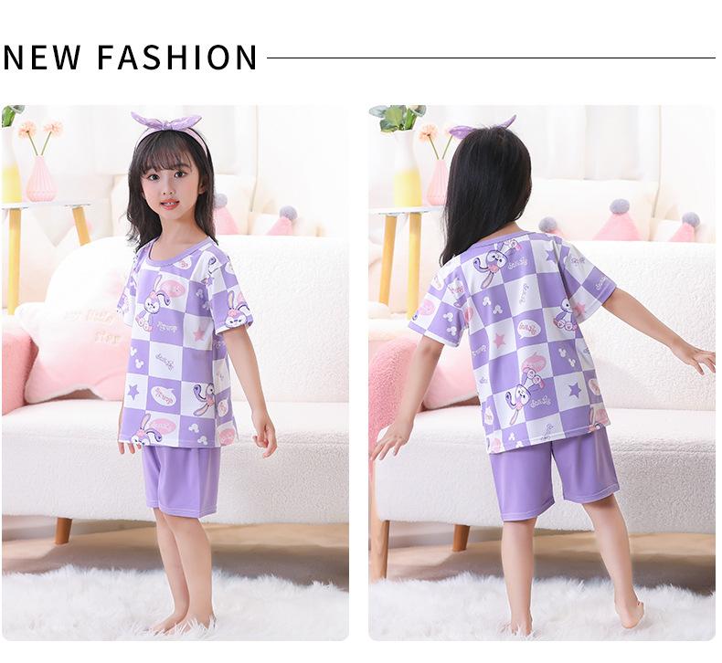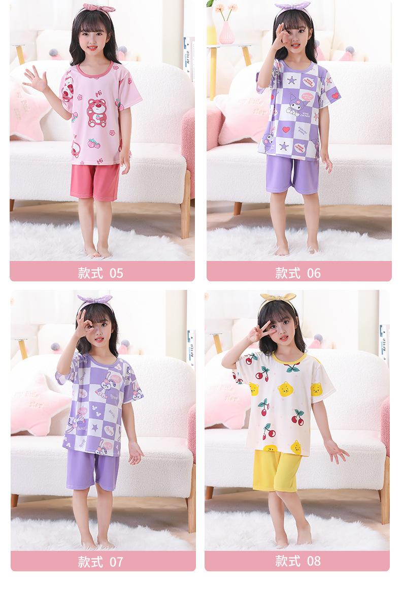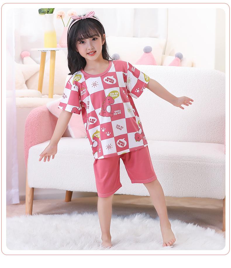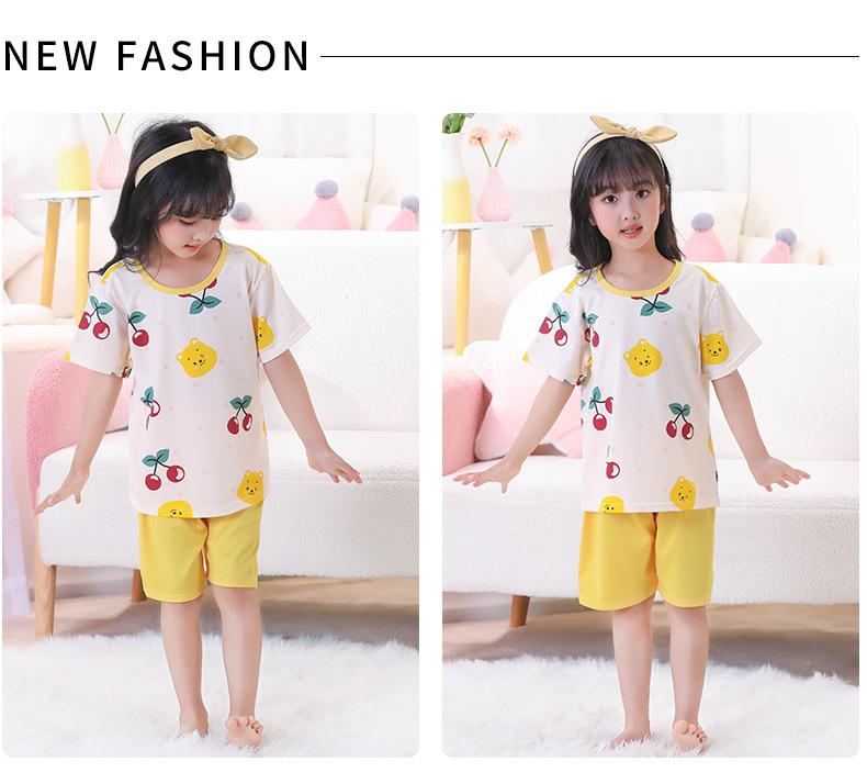 Pijamas de verano para niños, finos, de cuello redondo y manga corta, de estilo occidental con dibujos animados, para niños de talla mediana y grande.