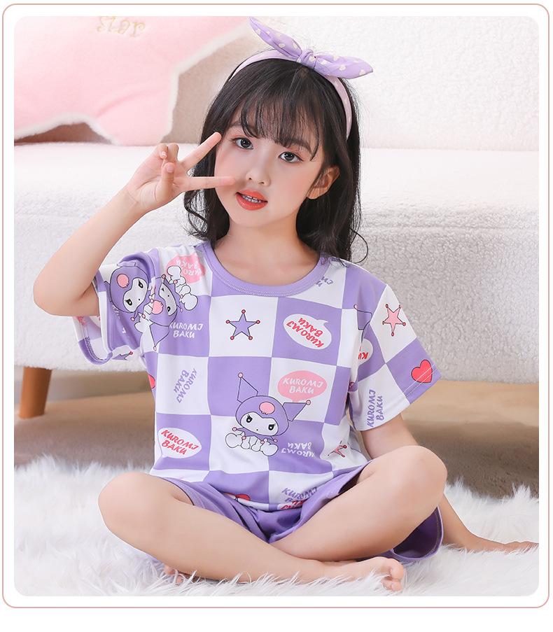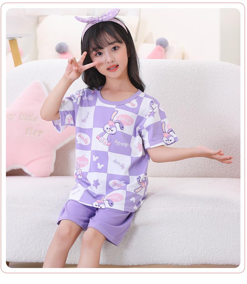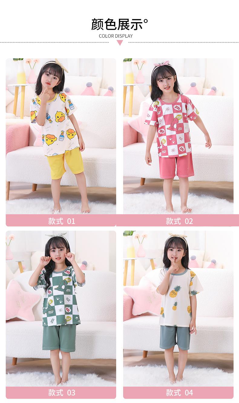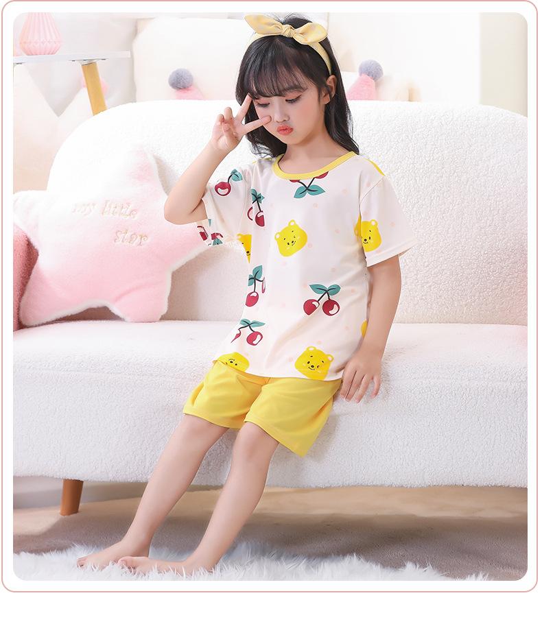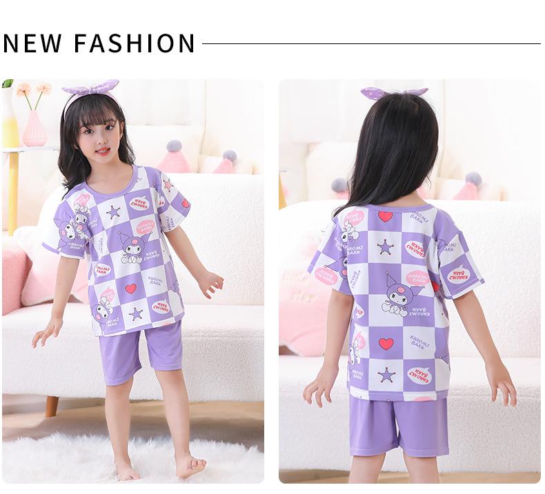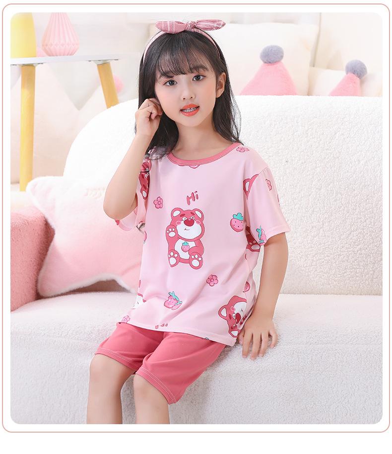 Pijamas de verano para niños, finos, de cuello redondo y manga corta, de estilo occidental con dibujos animados, para niños de talla mediana y grande.