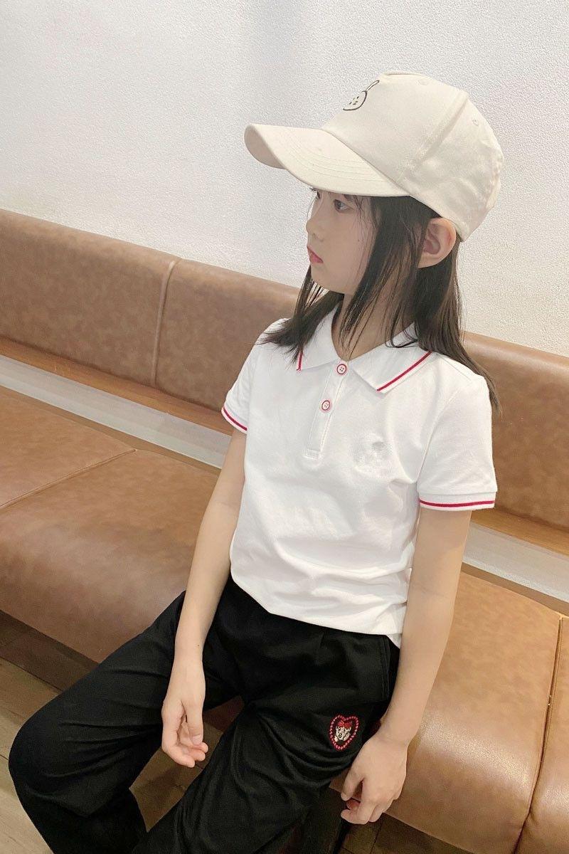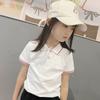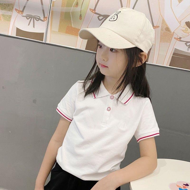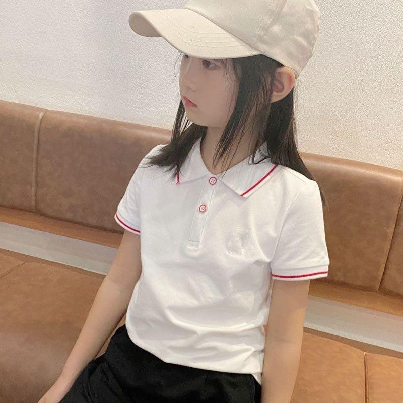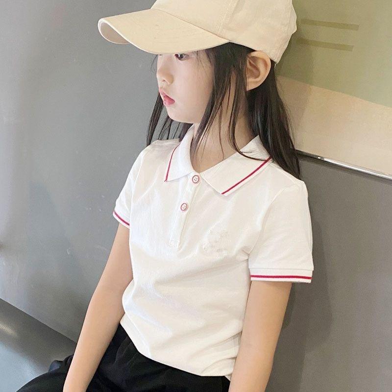 Polo de Niña Manga Corta Ropa de Verano 2023 Nuevo Verano para Niños Camiseta de Algodón Acolchado con Solapa para Niña Top Blanco
