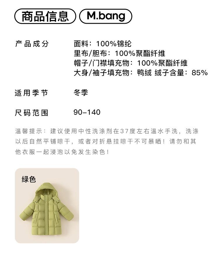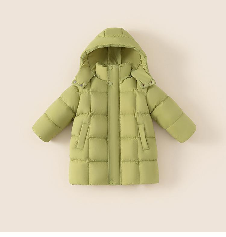 Ropa infantil Yu Bao chaqueta de plumón para niños larga 2024 nueva abrigo con capucha para niñas gruesa cálida ropa de invierno para niños