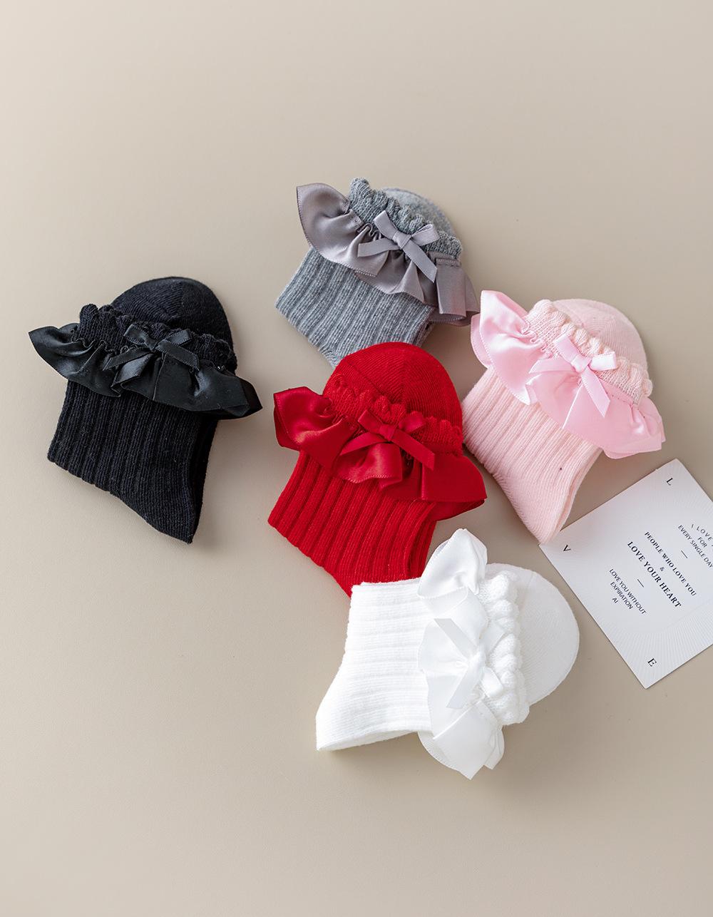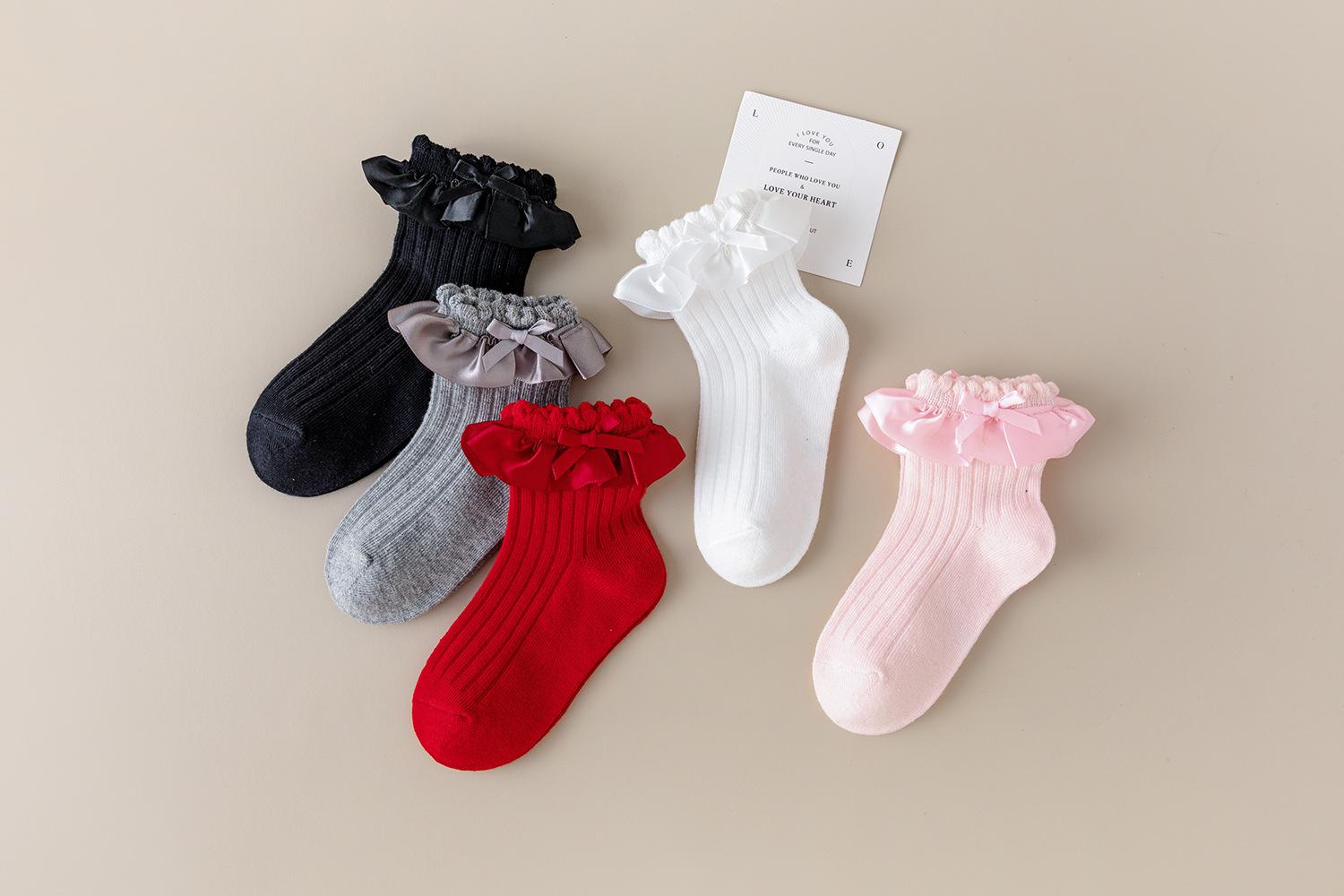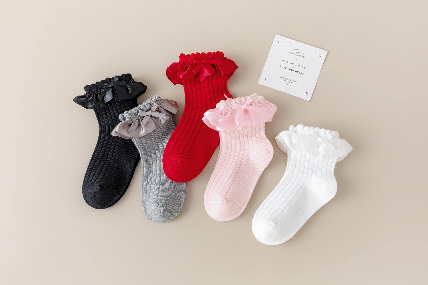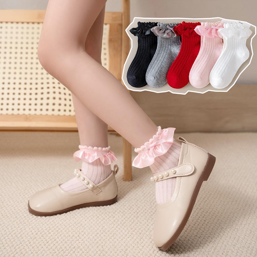 Calcetines infantiles transfronterizos calcetines de tubo lazo encaje lindos calcetines para bebés niñas primavera y otoño