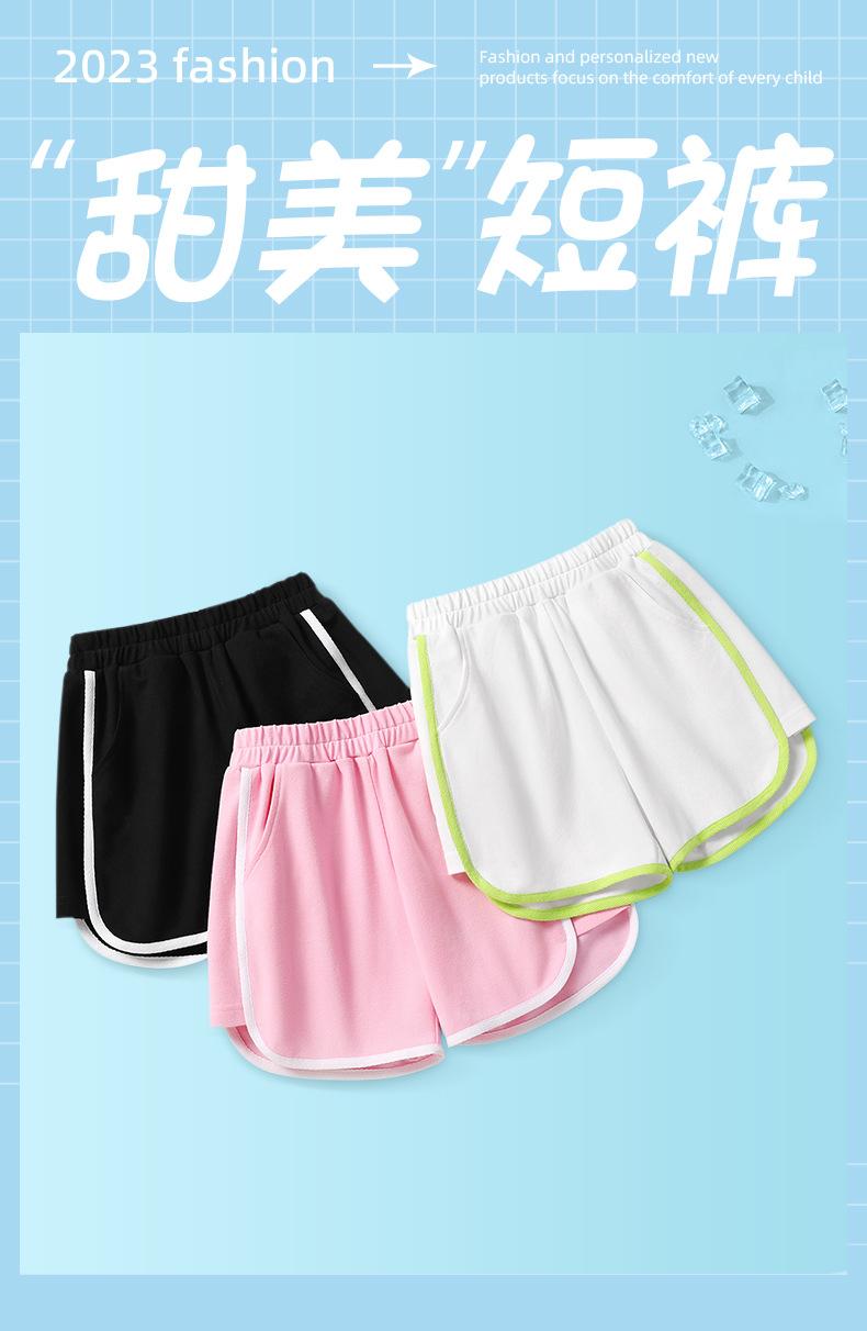 Shorts para Niñas Medianos y Grandes Pantalones de Cinta de Color en Contraste para Niñas 2025 Pantalones Casuales Delgados de Verano para Niños Ventas Directas de Fábrica